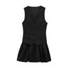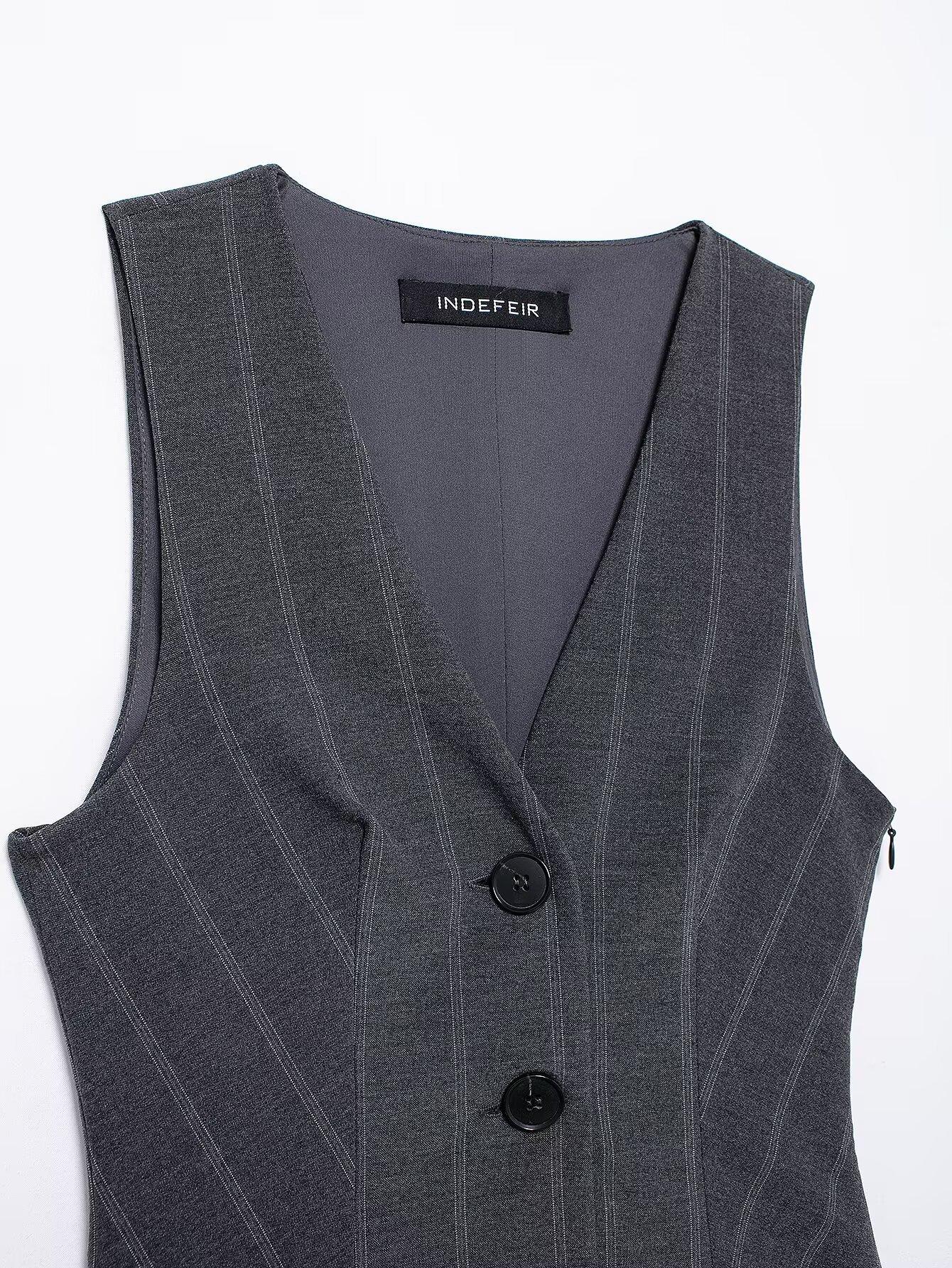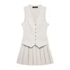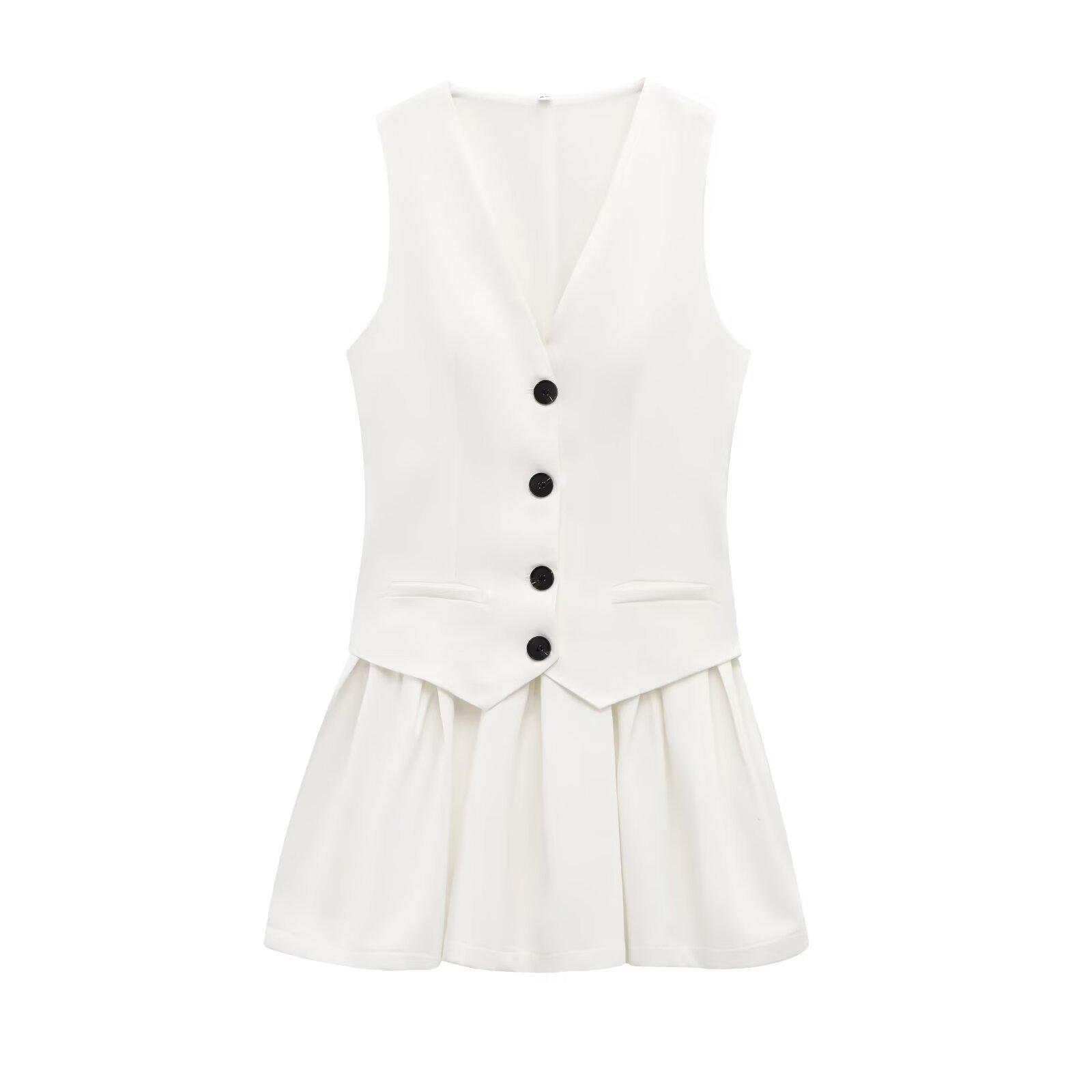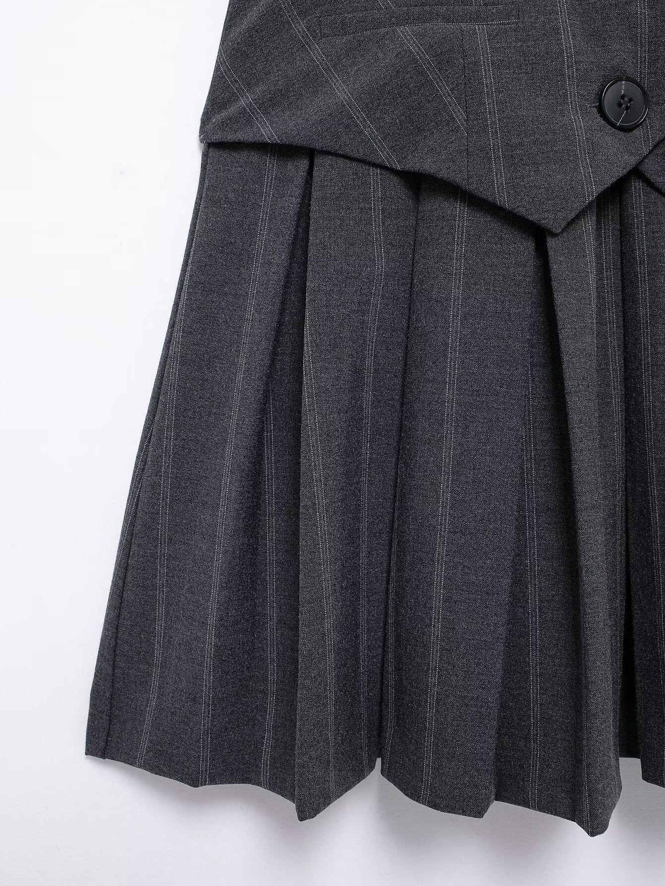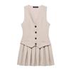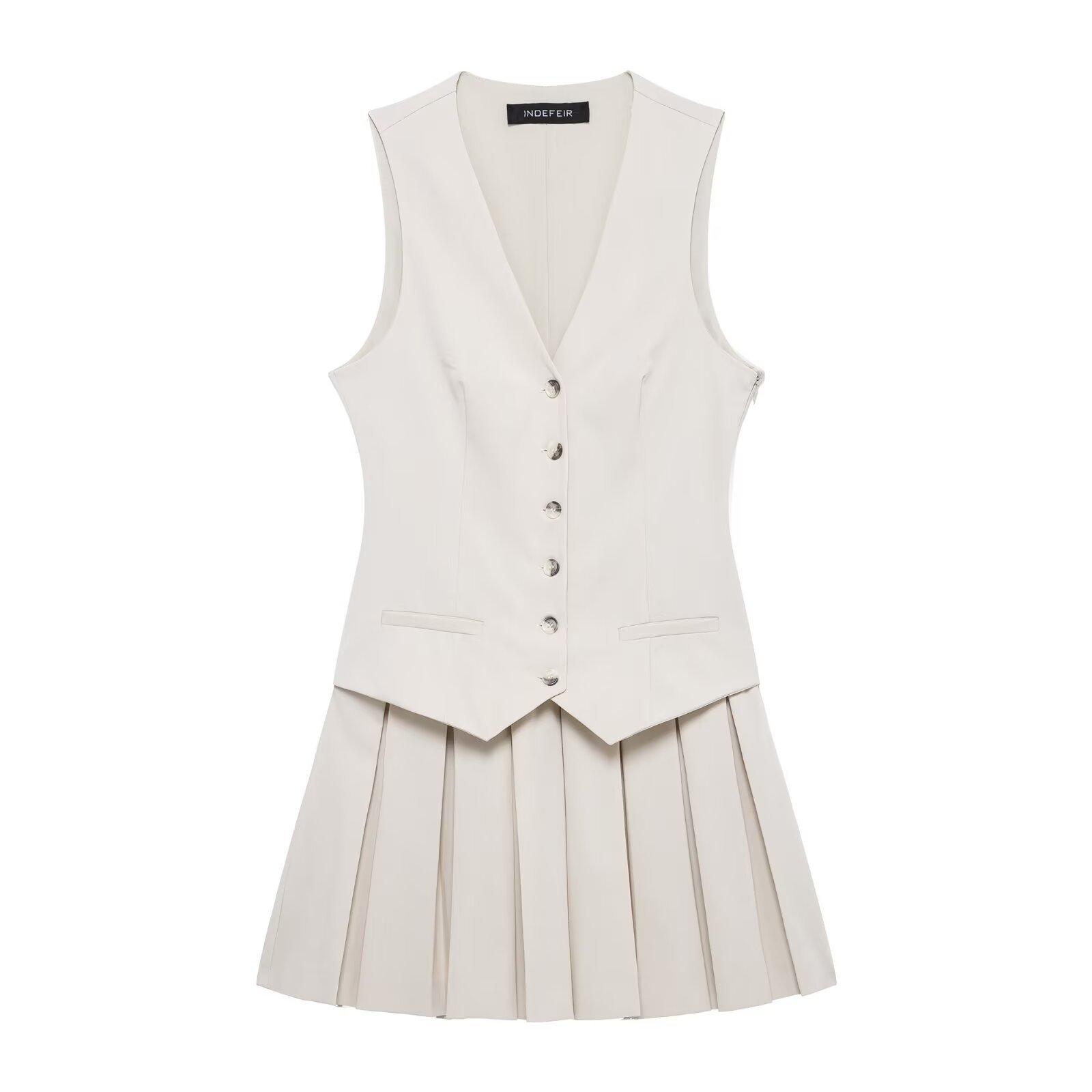 Transfronterizo 2025 Verano Nuevo Estilo Europeo y Americano Moda Vestido Tipo Chaleco Ancho con Cintura Ajustada y Plisado a Rayas para Mujer Falda Corta