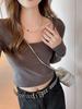 Camiseta Interior de Algodón Puro con Cuello Francés para Mujer en Otoño e Invierno, Camiseta de Manga Larga Simple y Versátil con Hombro Derecho que se Puede Usar por Fuera