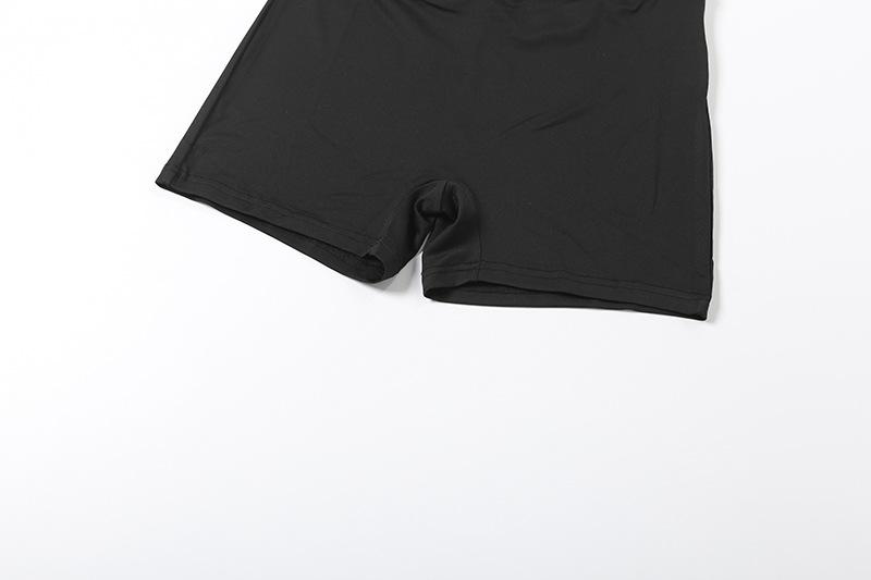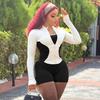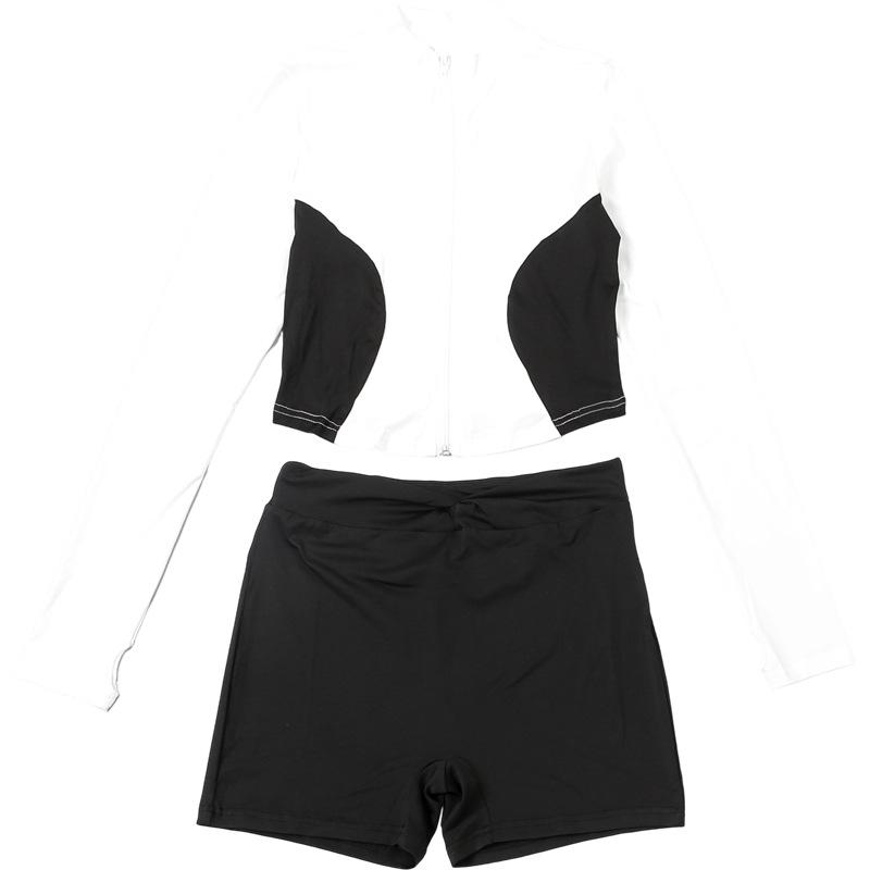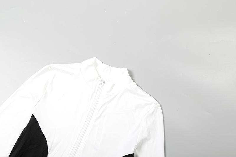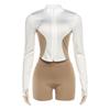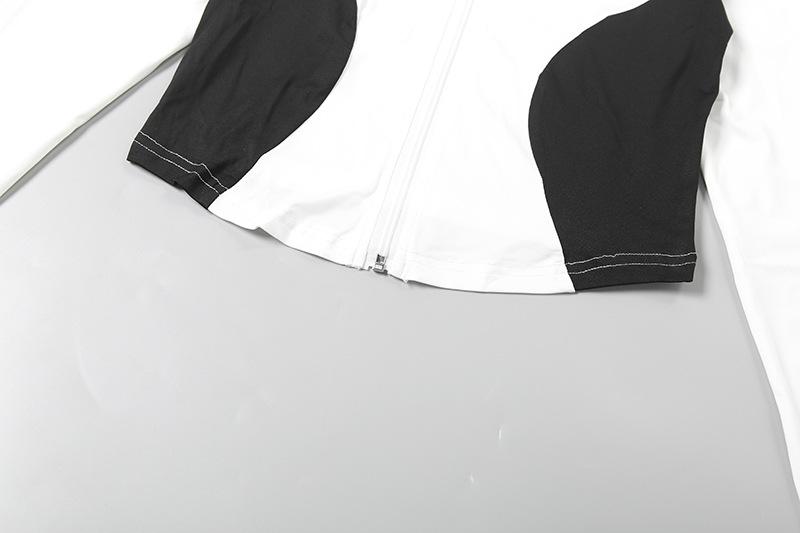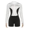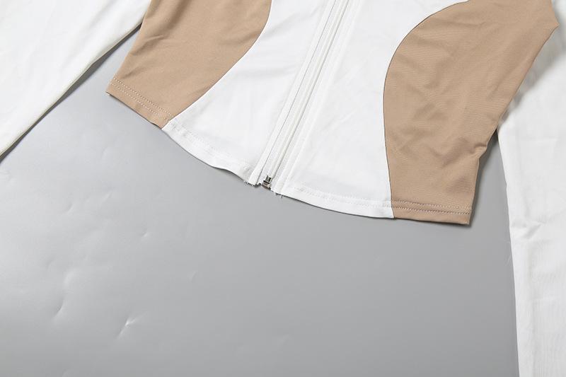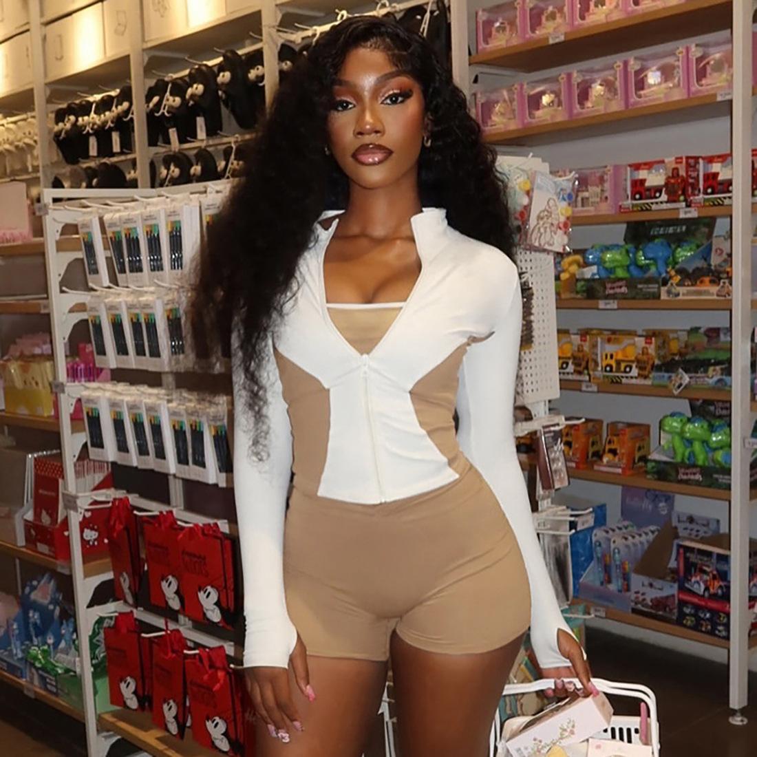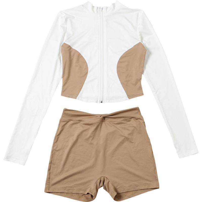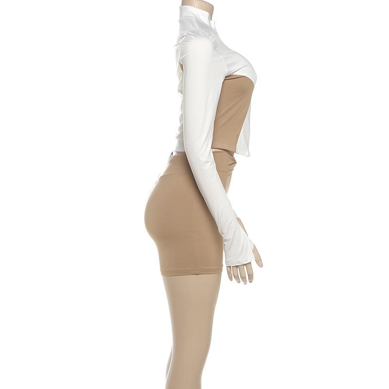 Comercio Exterior Europeo y Americano 2025 Nuevo Top de Mujer con Cuello Alto y Manga Set-in con Cremallera, Bloque de Color, Conjunto de Shorts Deportivos de Moda