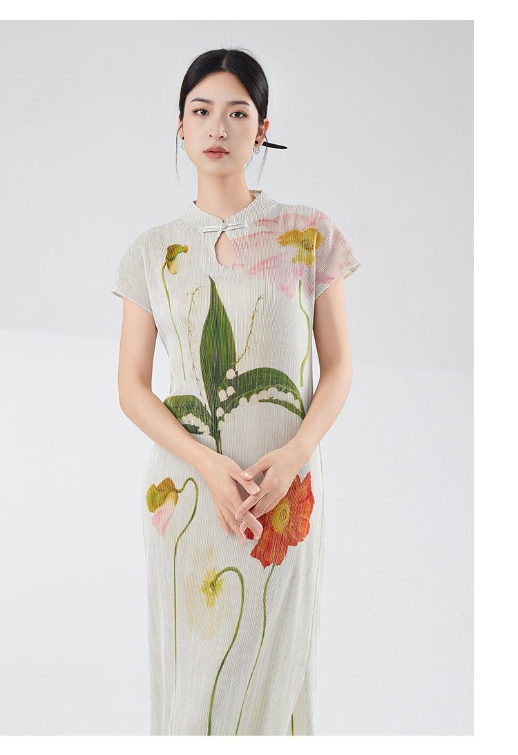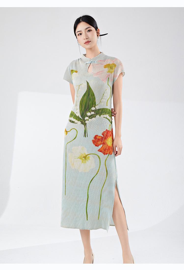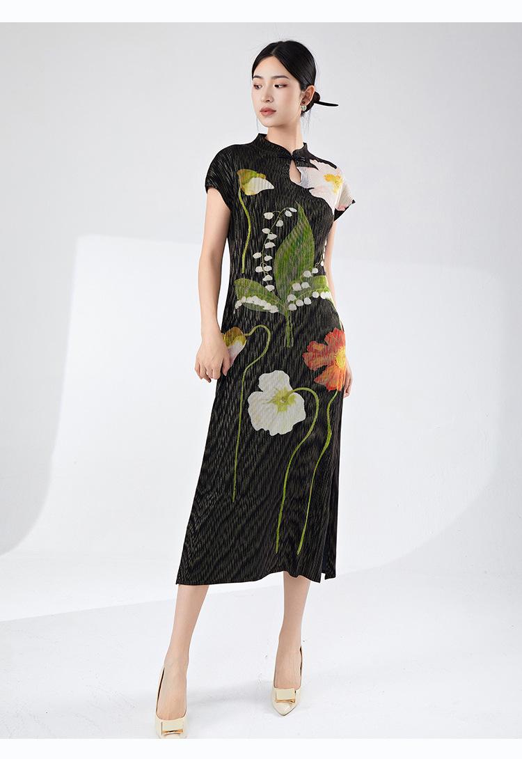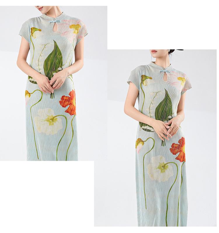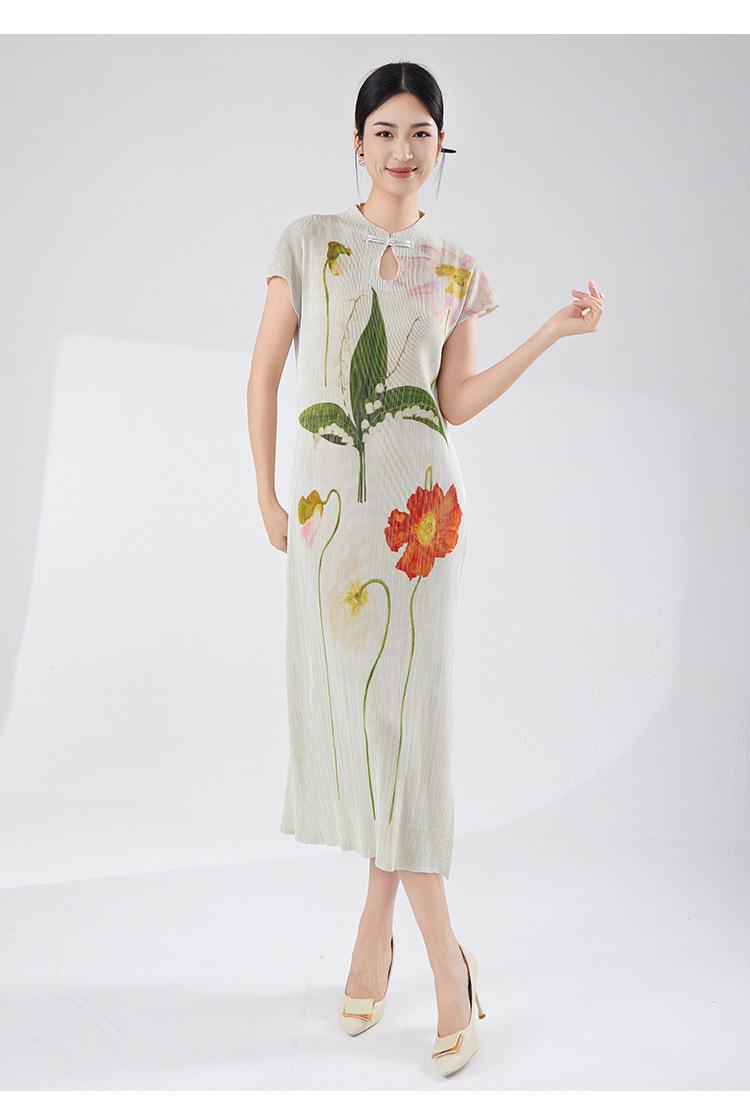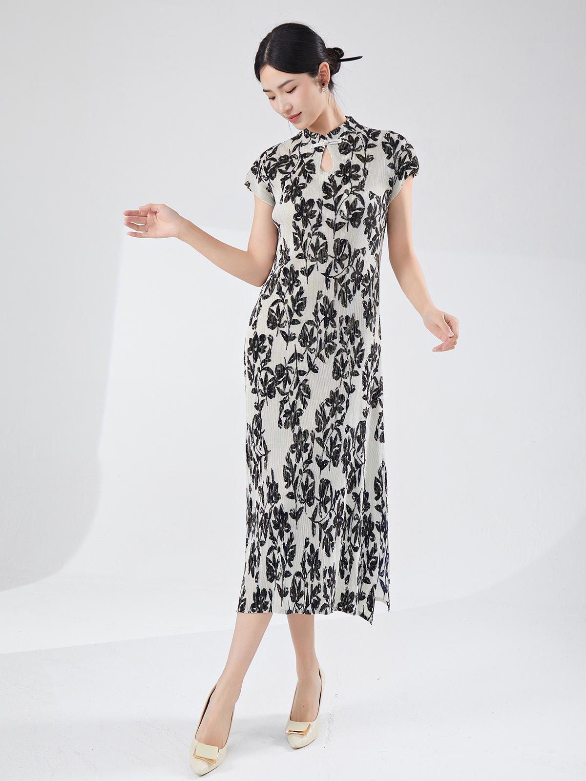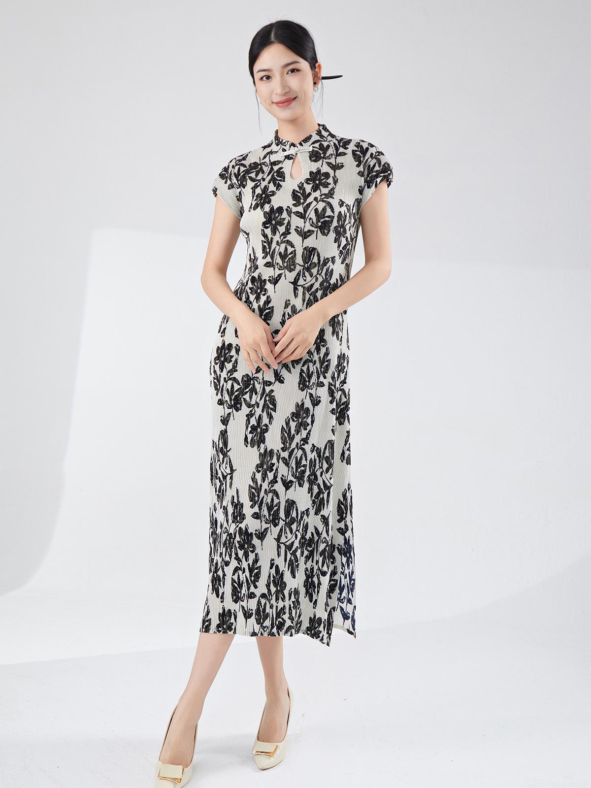 Cheongsam Mejorado Que Se Puede Usar Diariamente, Nuevo Estilo Chino Retro Estampado con Abertura, Elegante Vestido Midi Plisado para Mujer