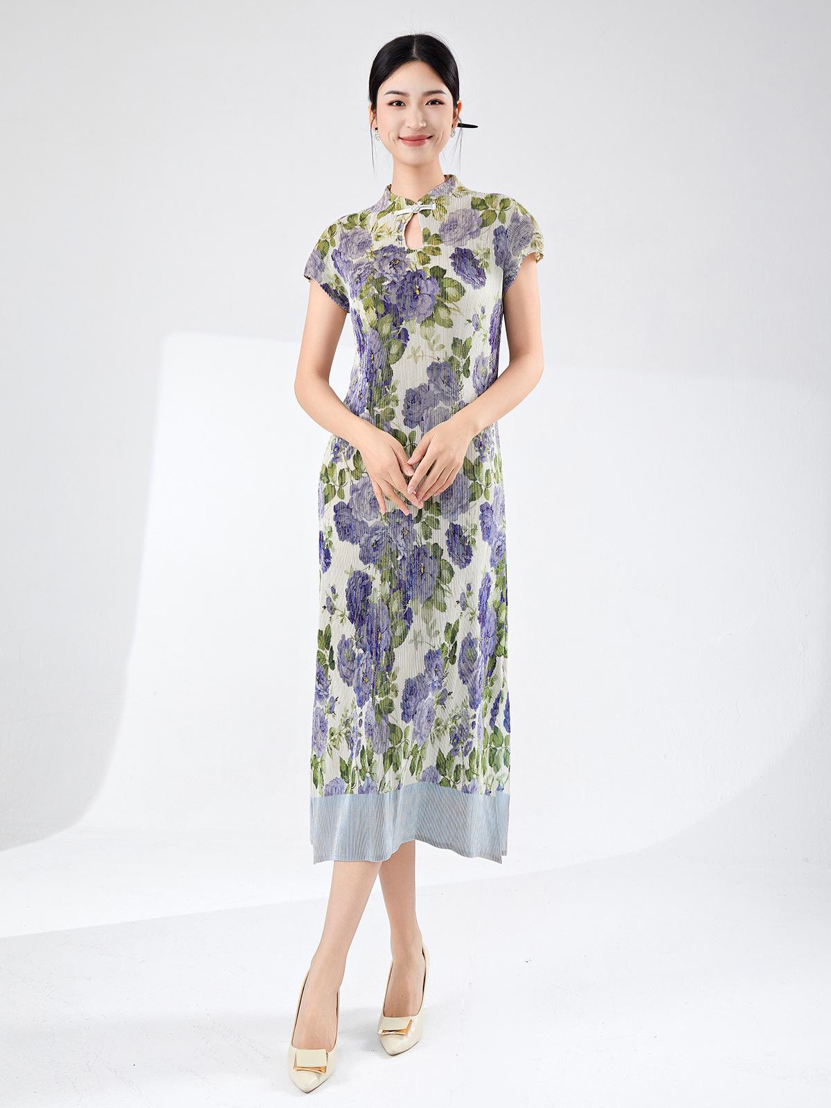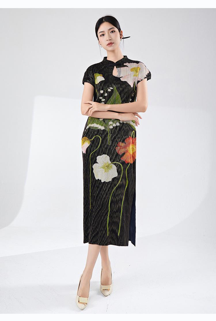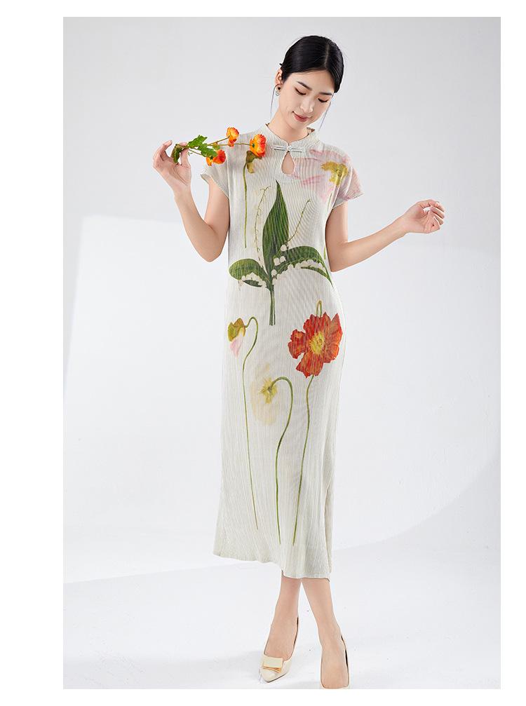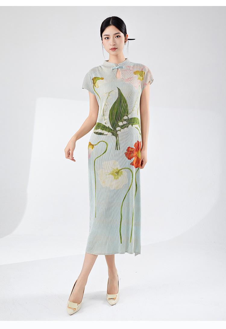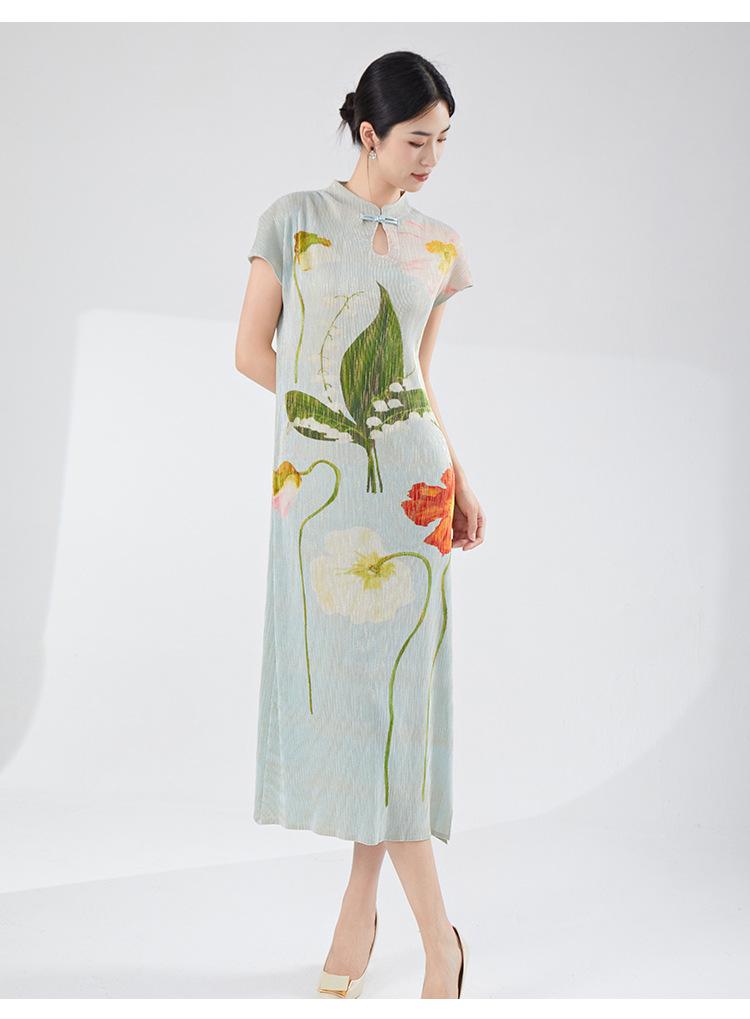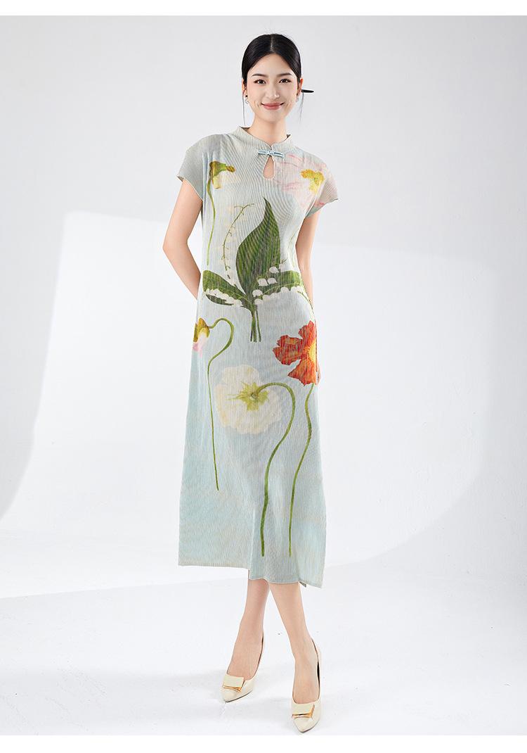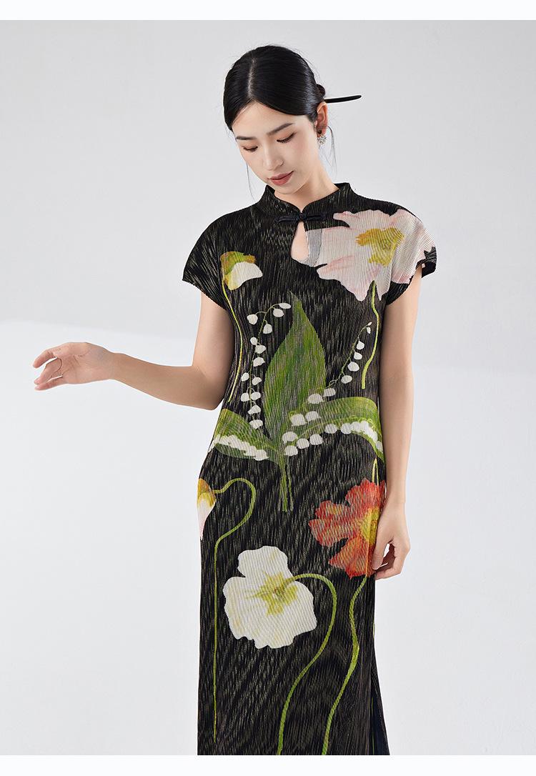 Cheongsam Mejorado Que Se Puede Usar Diariamente, Nuevo Estilo Chino Retro Estampado con Abertura, Elegante Vestido Midi Plisado para Mujer