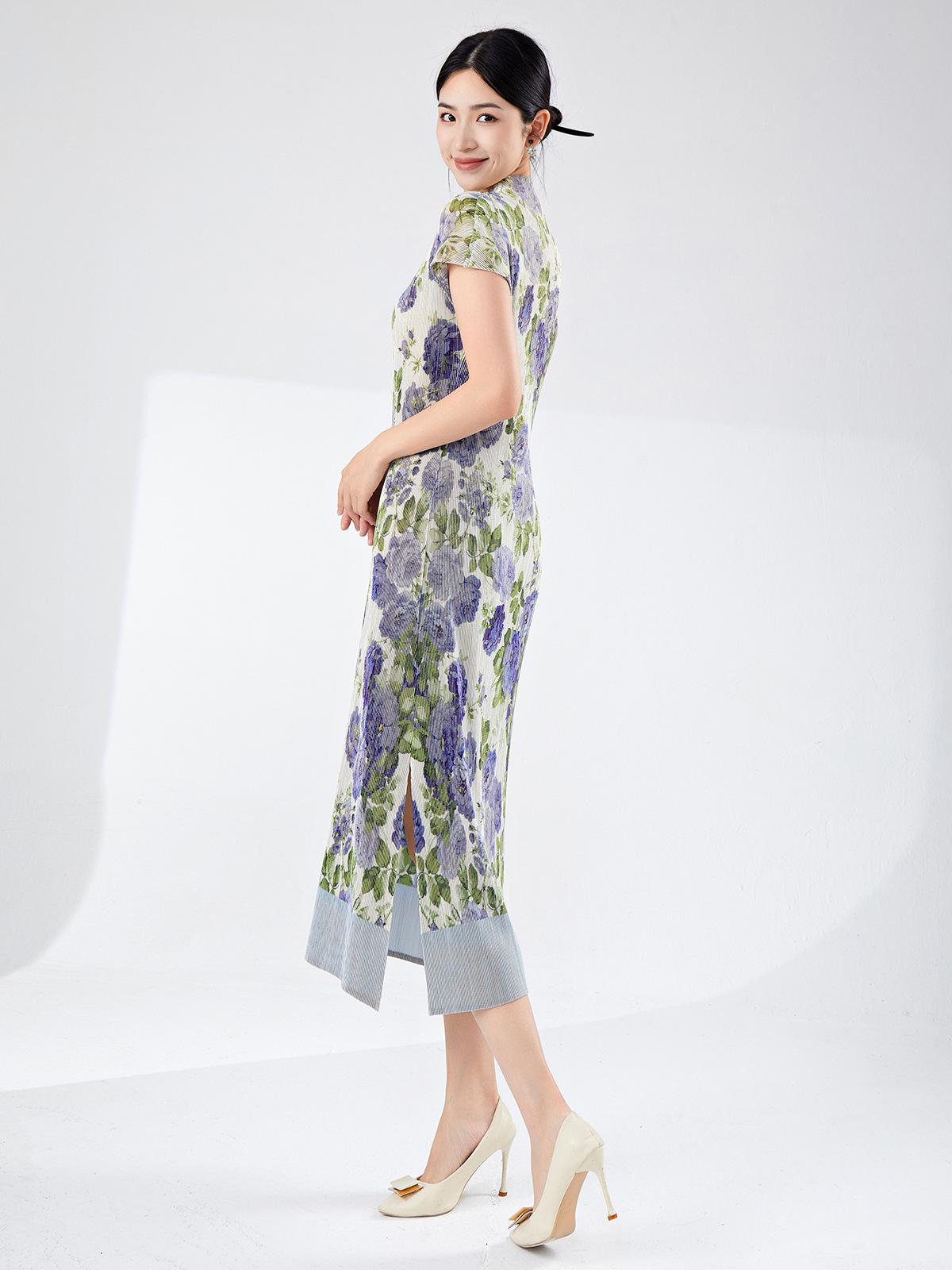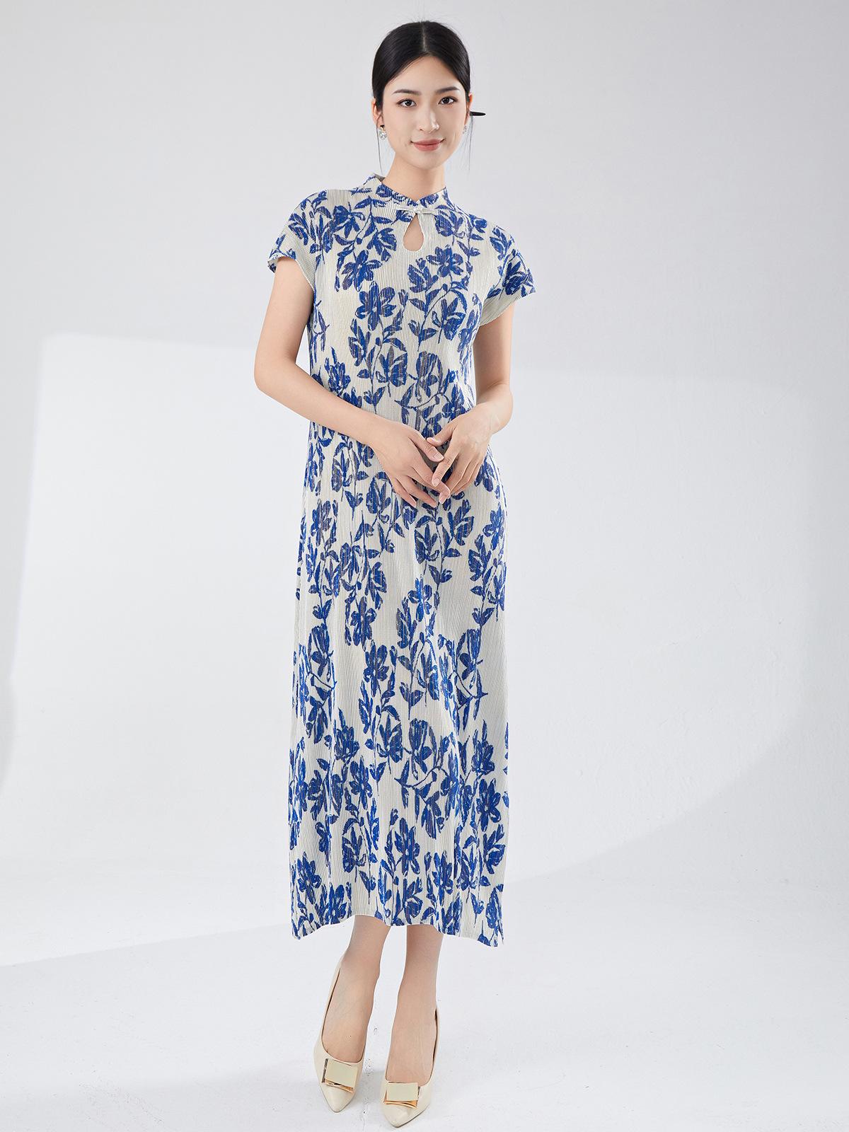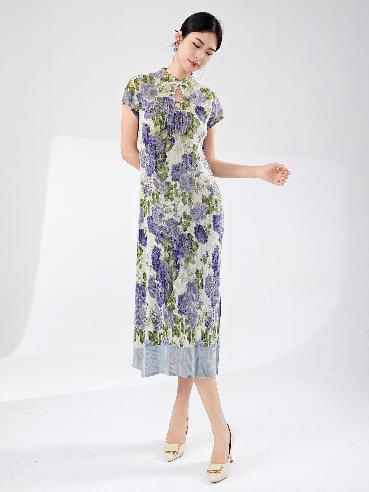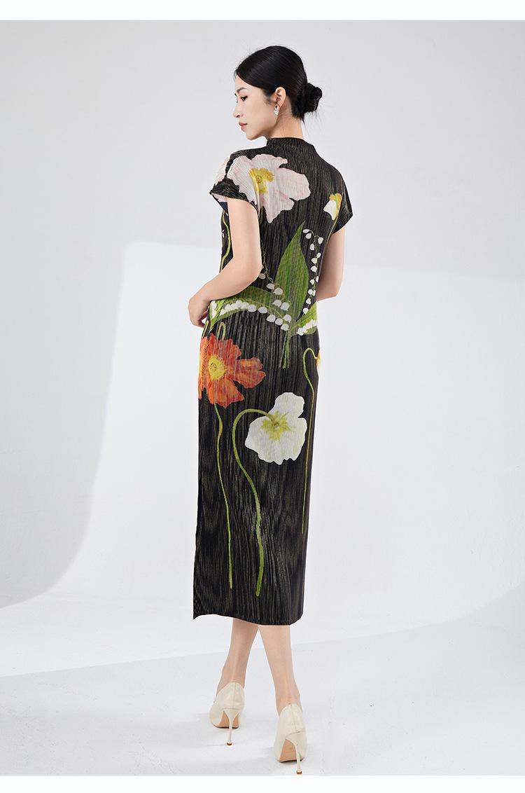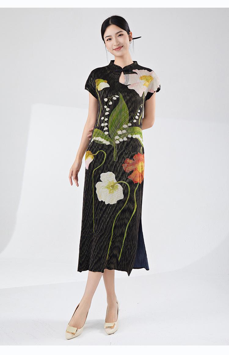 Cheongsam Mejorado Que Se Puede Usar Diariamente, Nuevo Estilo Chino Retro Estampado con Abertura, Elegante Vestido Midi Plisado para Mujer