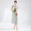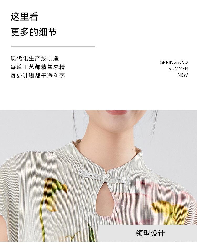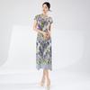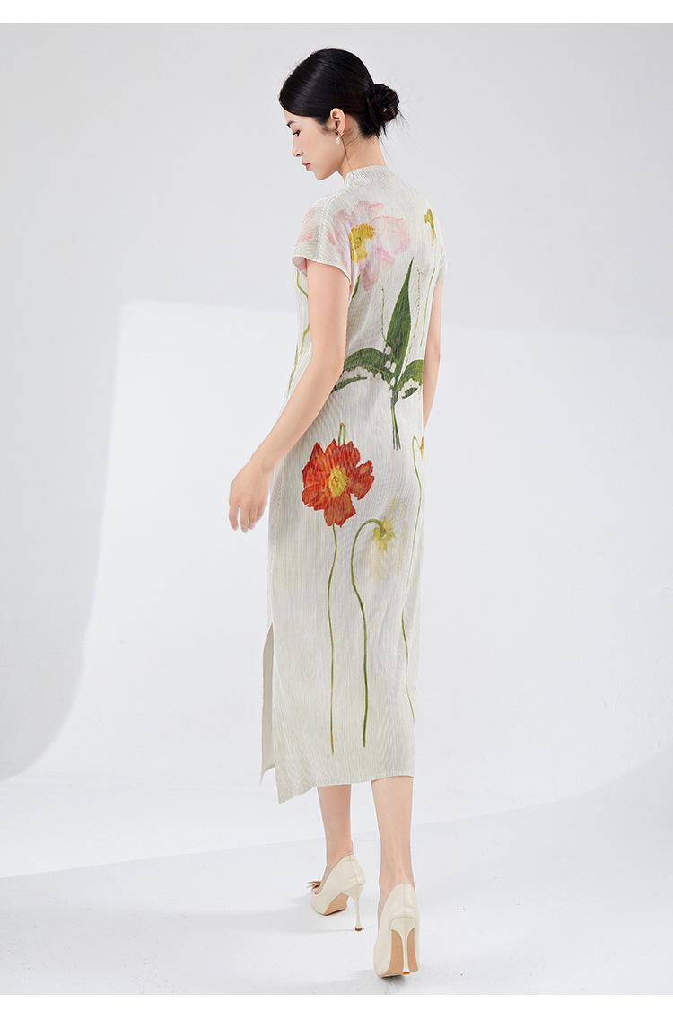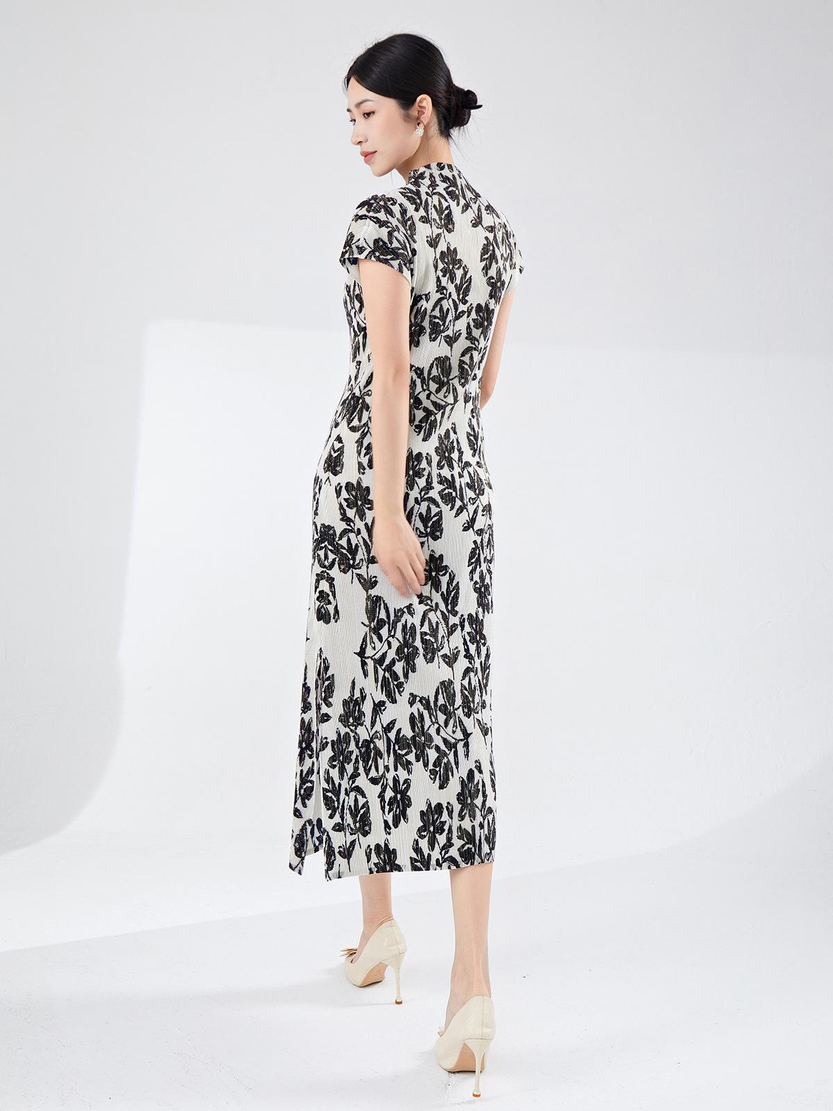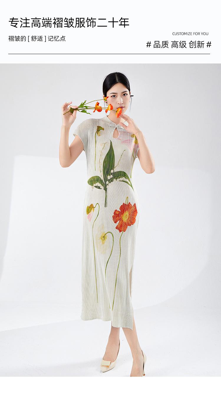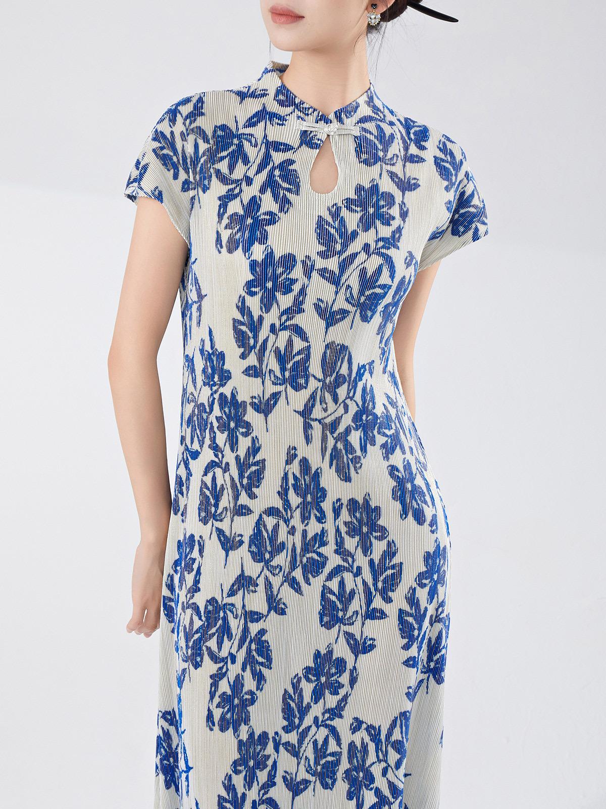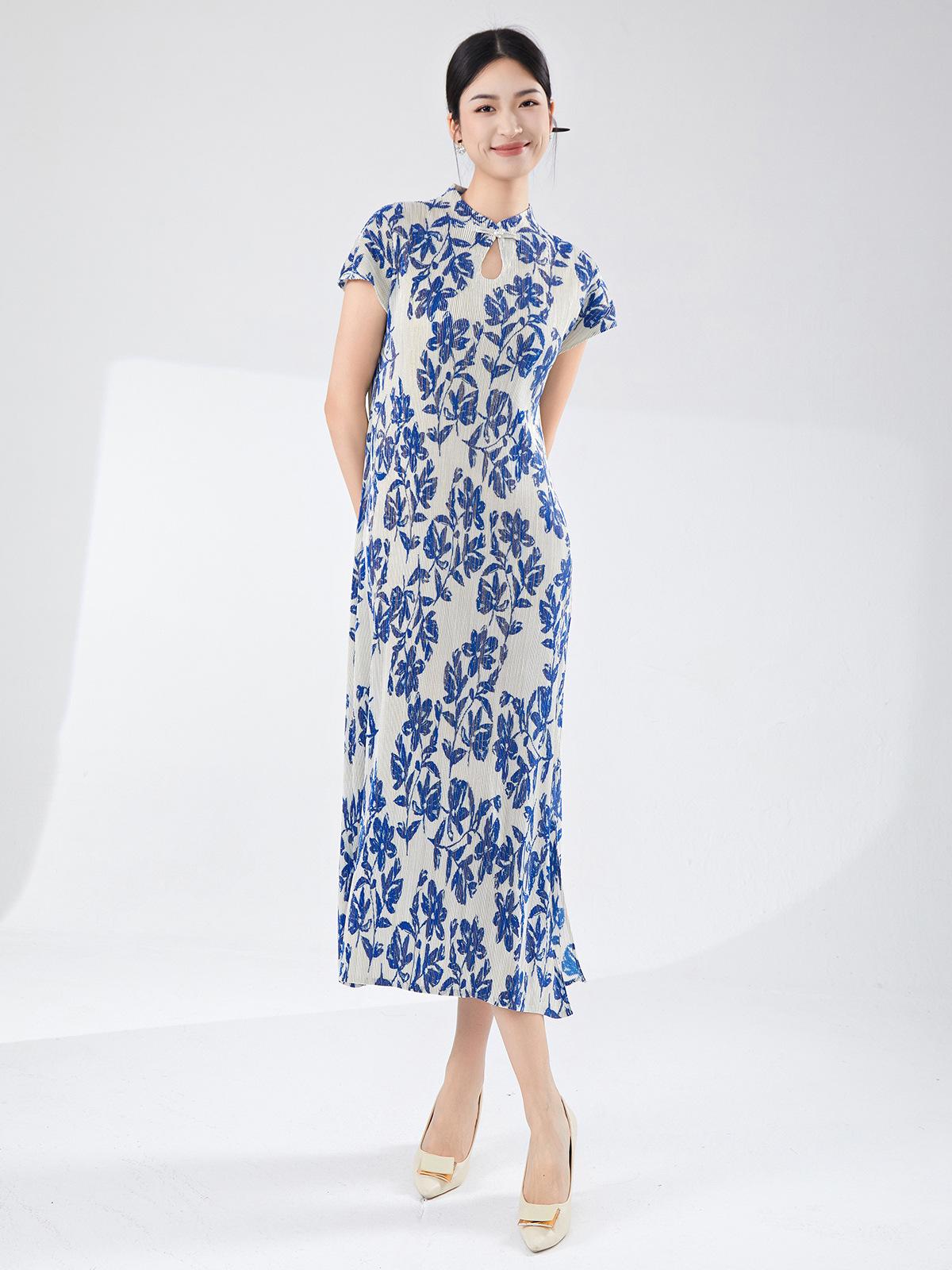 Cheongsam Mejorado Que Se Puede Usar Diariamente, Nuevo Estilo Chino Retro Estampado con Abertura, Elegante Vestido Midi Plisado para Mujer