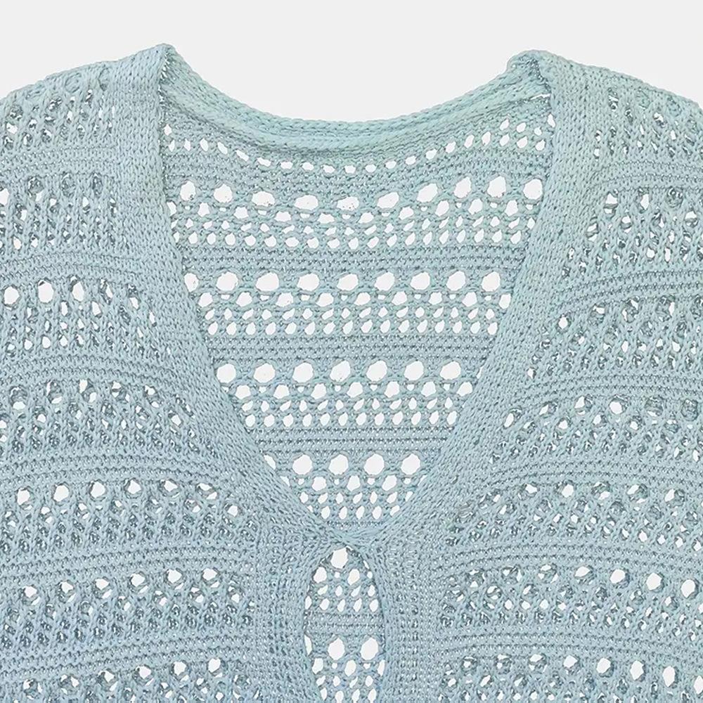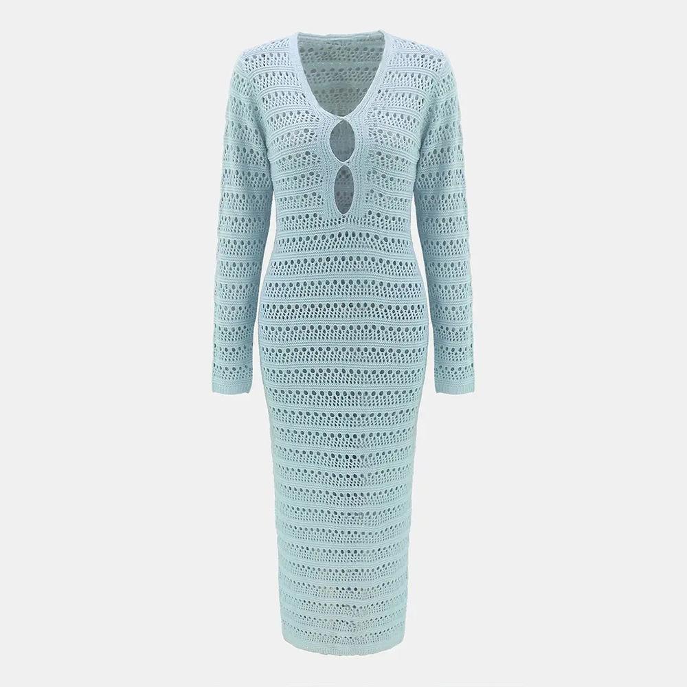 Vestido de Playa Sexy de Deseo Puro Calado de Ocio Vacaciones Junto al Mar Vestido de Mujer de Punto de Manga Larga Transfronterizo