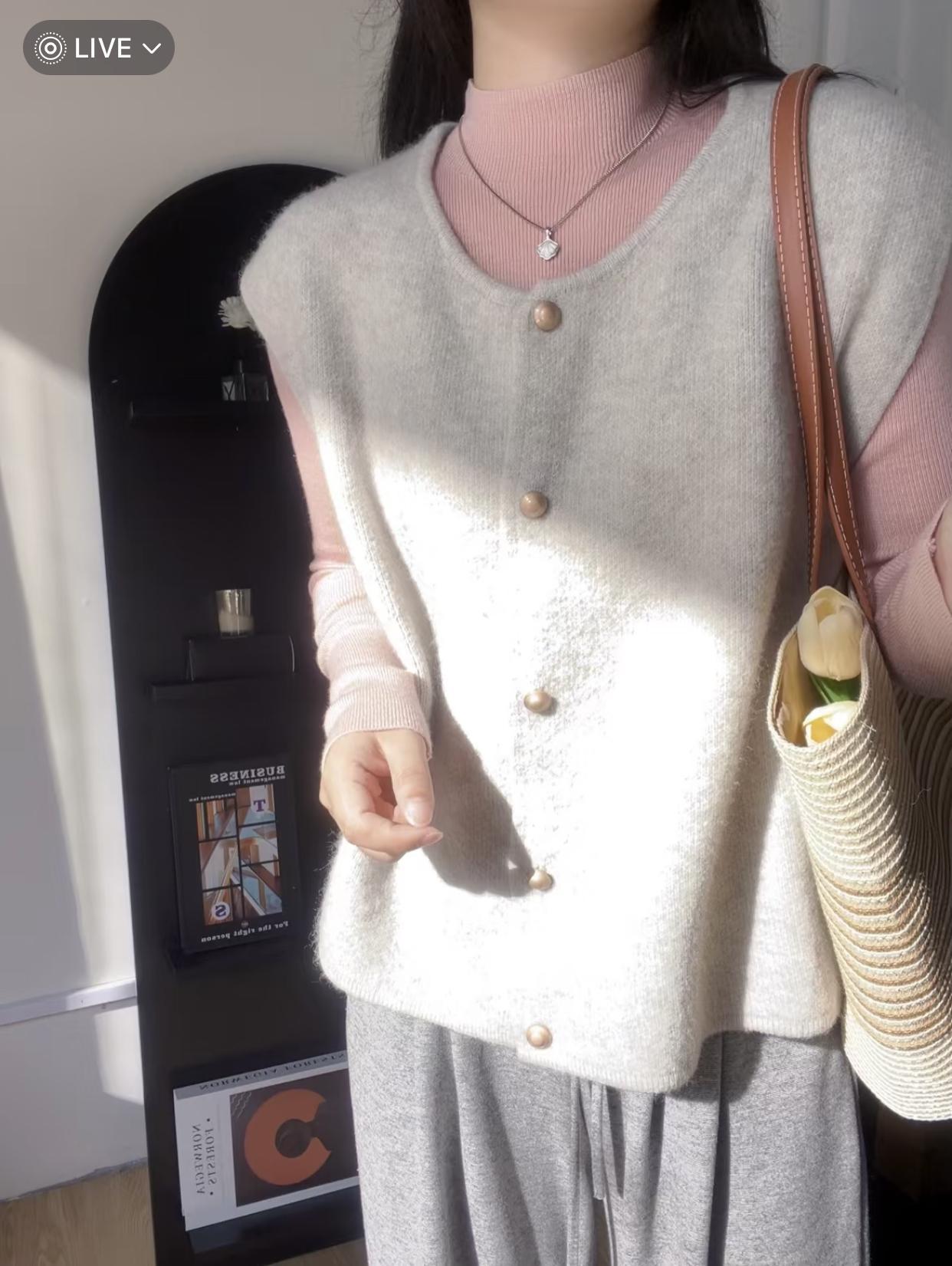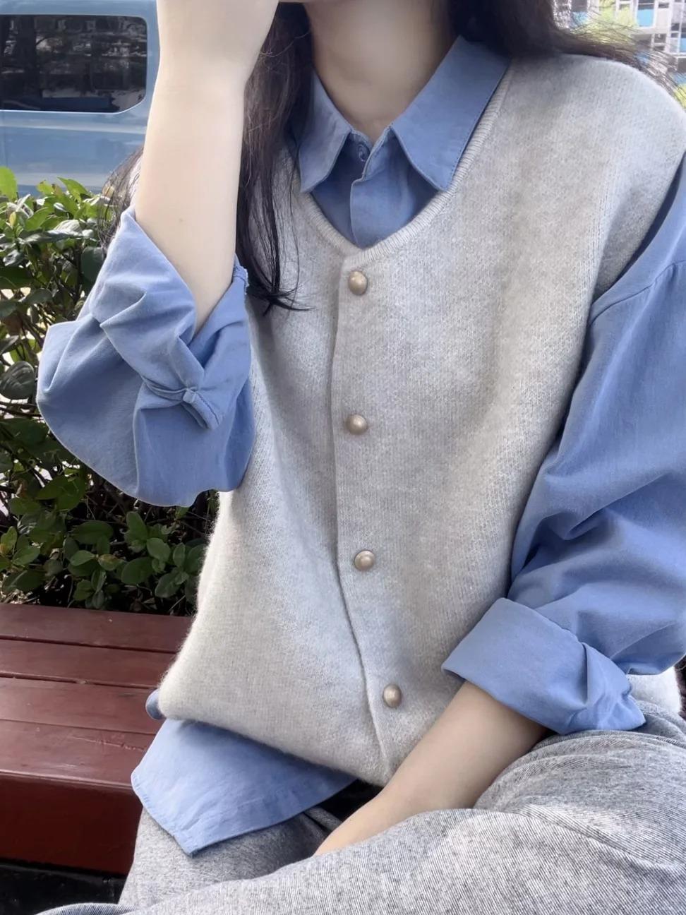 Chaleco Casual Suave Ceroso de Punto para Mujer 2025 Primavera Chaleco con Capas Top de un Solo Botón Suéter Elegante Cárdigan Versátil