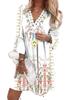 Vestido casual de vacaciones estilo bohemio con encaje estampado y escote en V cruzado para primavera 2022 europeo y americano