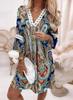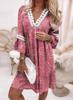 Vestido bohemio informal de estilo festivo con cuello en V y costuras de encaje estampado, estilo europeo y americano, primavera 2022