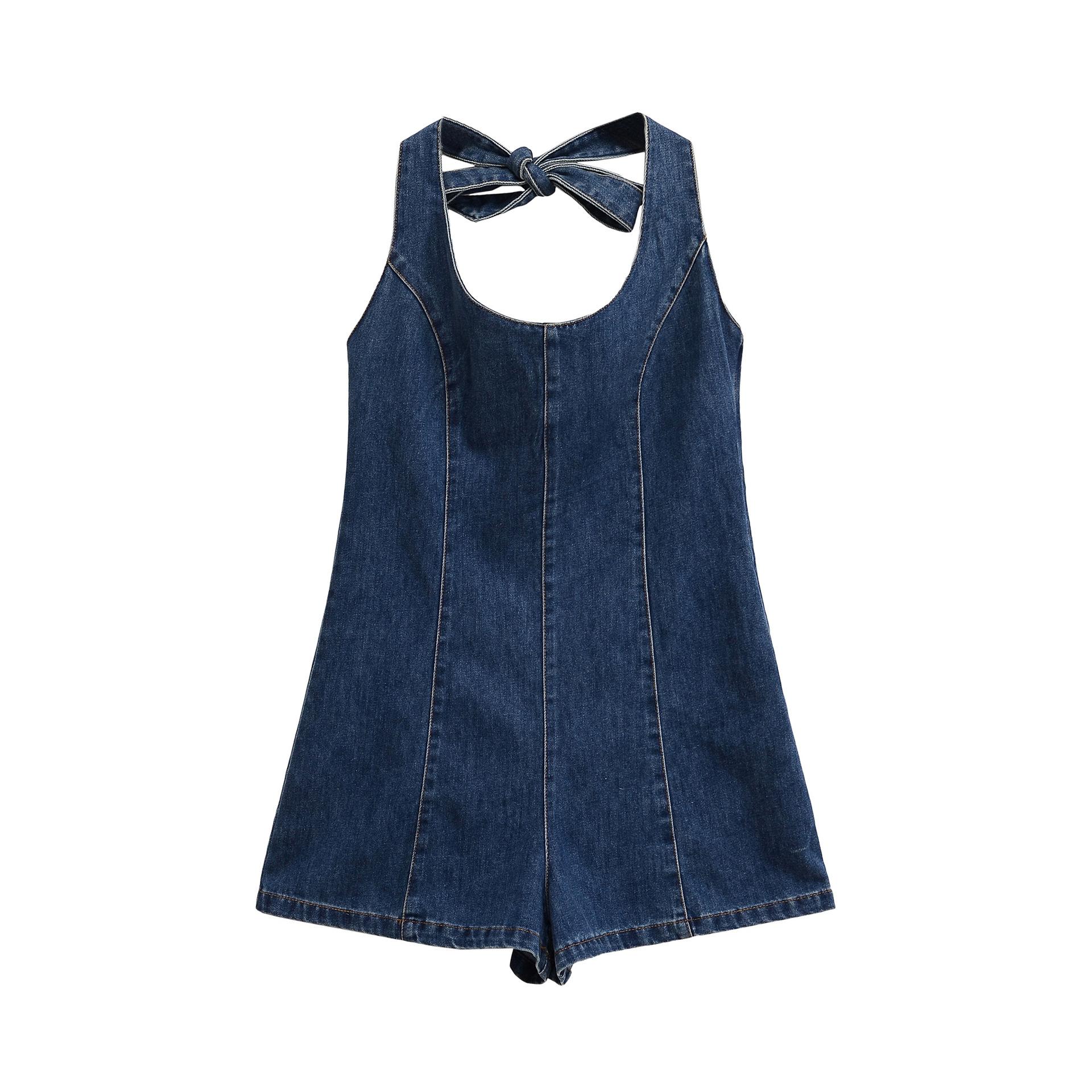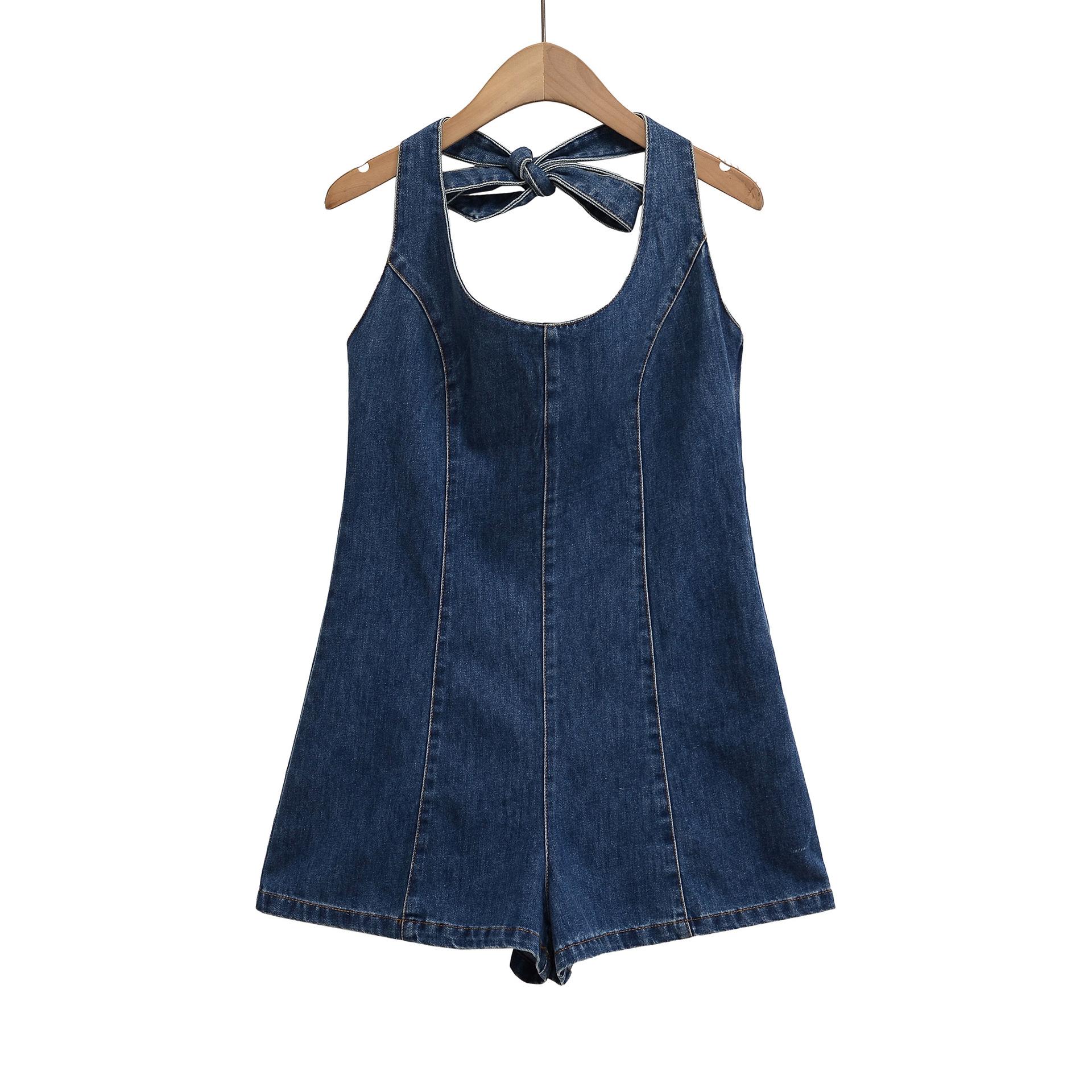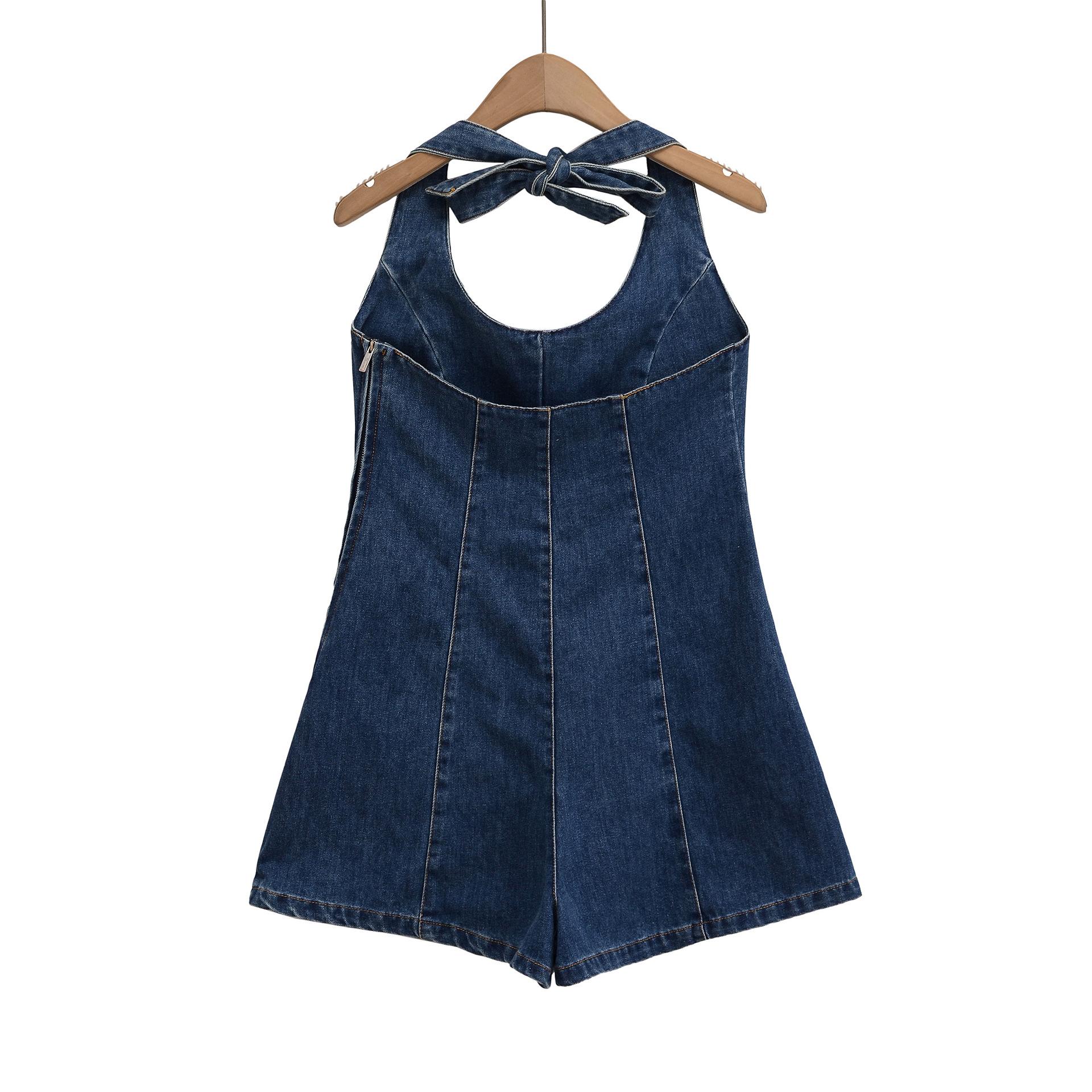 Ventas Directas de Fábrica Ropa Europea y Americana 2025 Nuevo Verano Moda Urbana Cuello Halter Mono Corto de Mezclilla