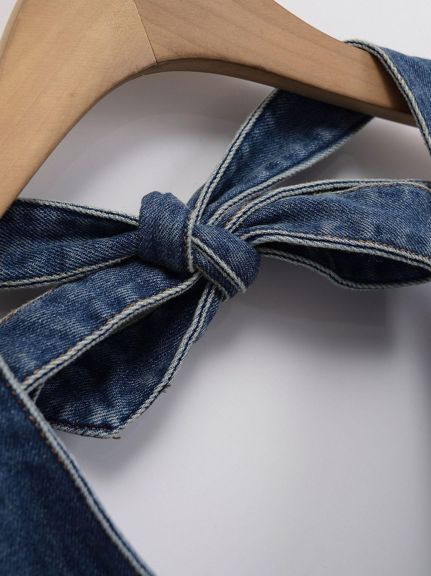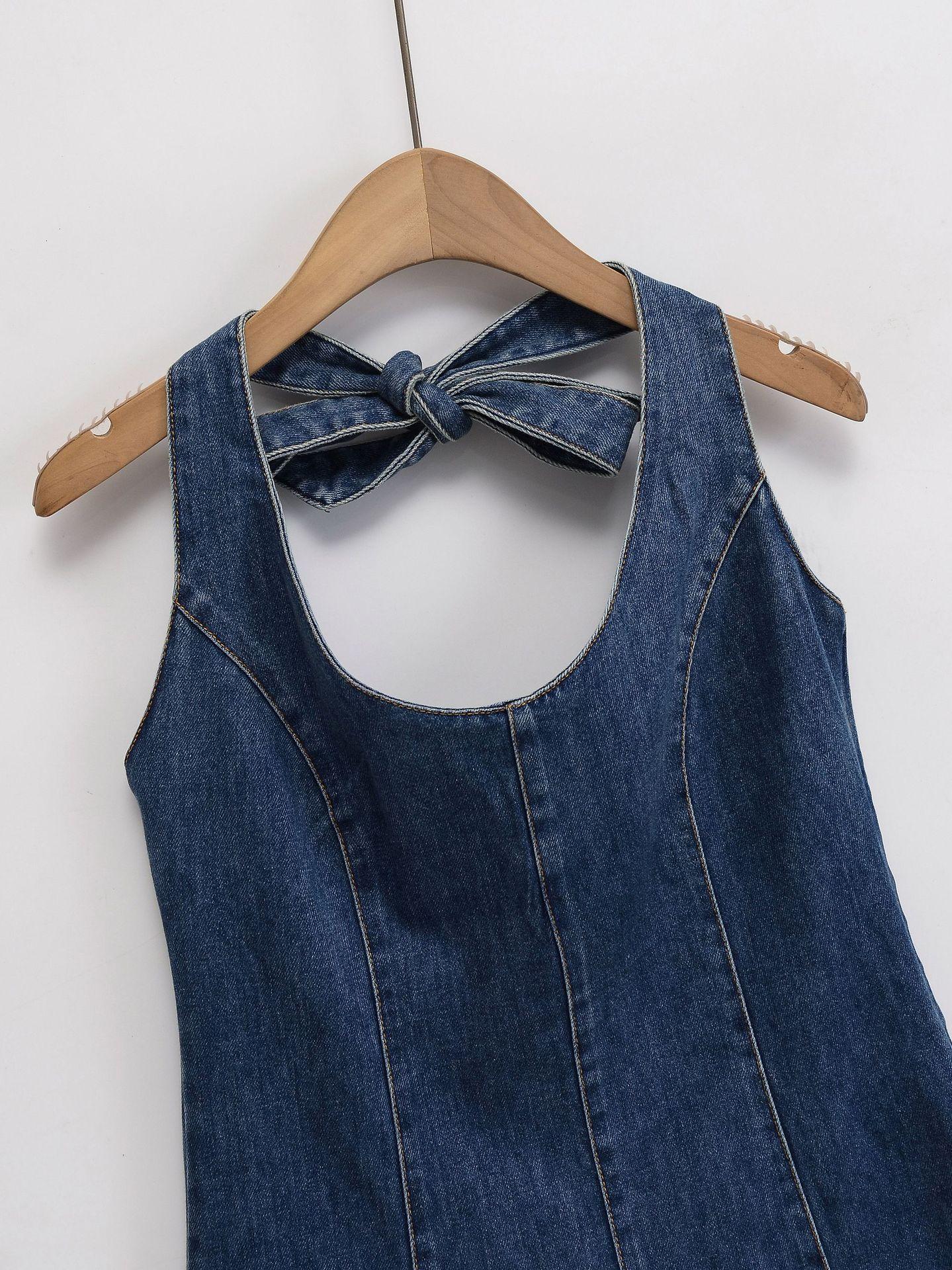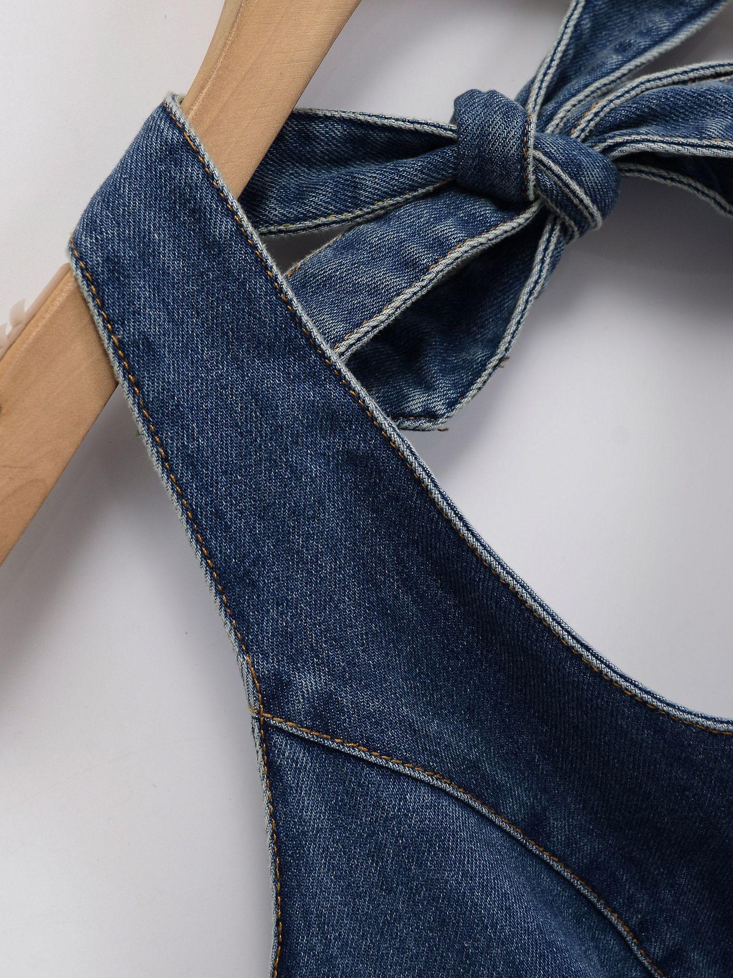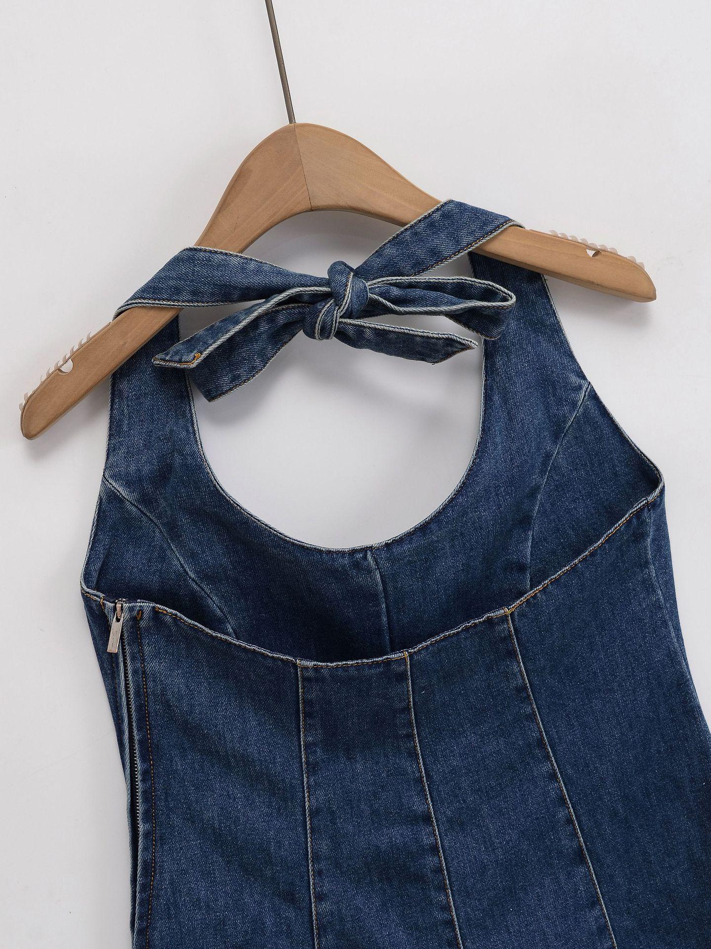 Ventas Directas de Fábrica Ropa Europea y Americana 2025 Nuevo Verano Moda Urbana Cuello Halter Mono Corto de Mezclilla
