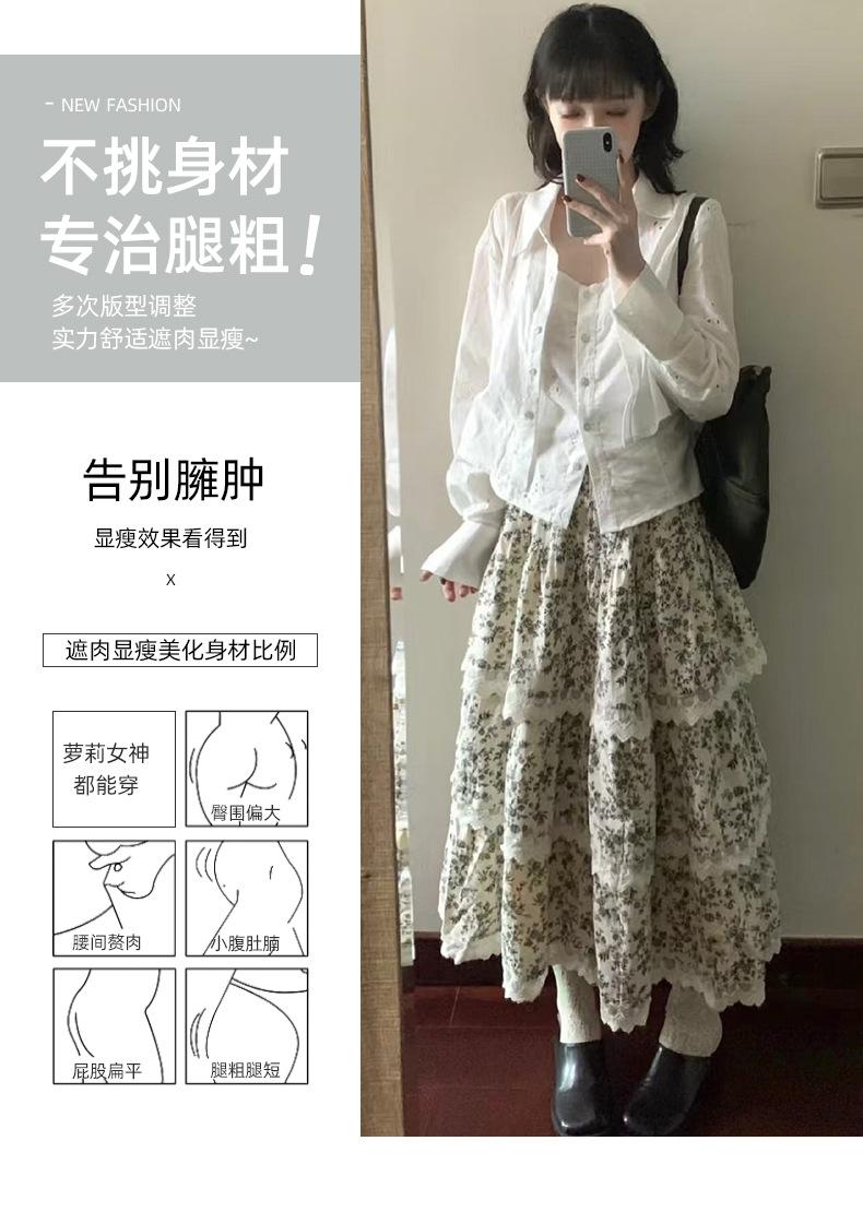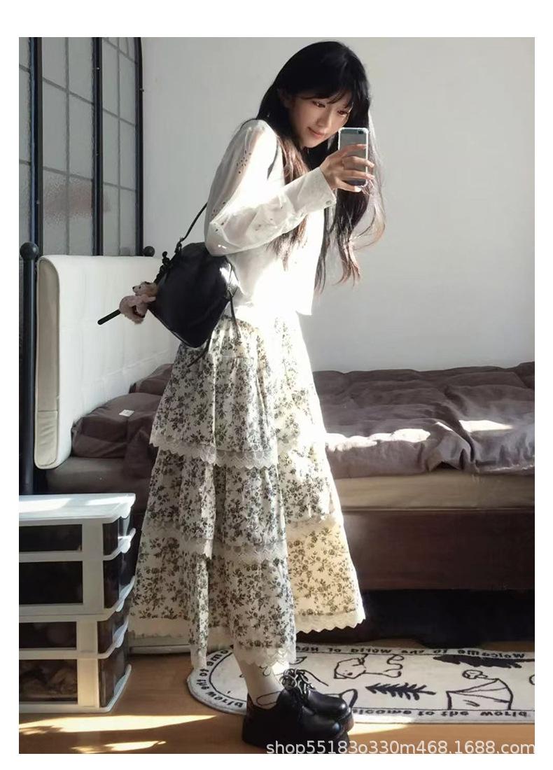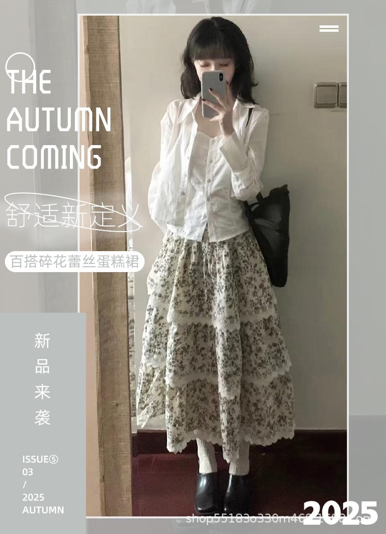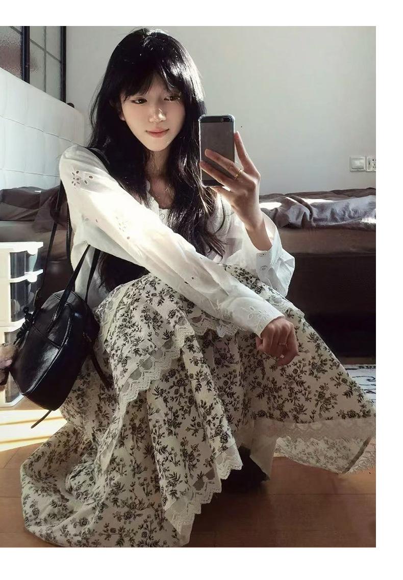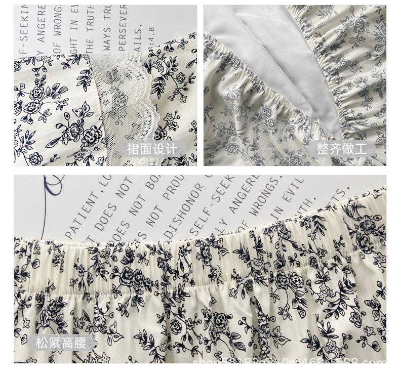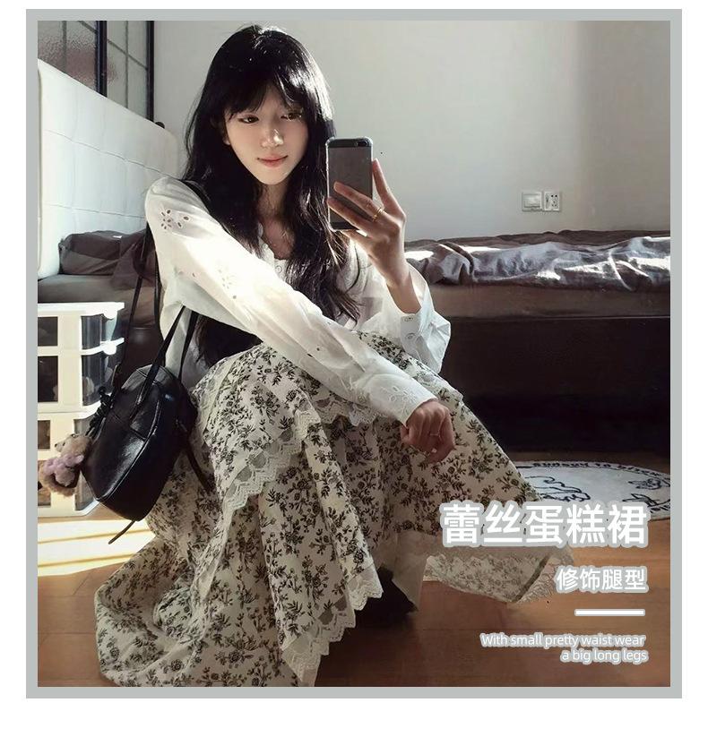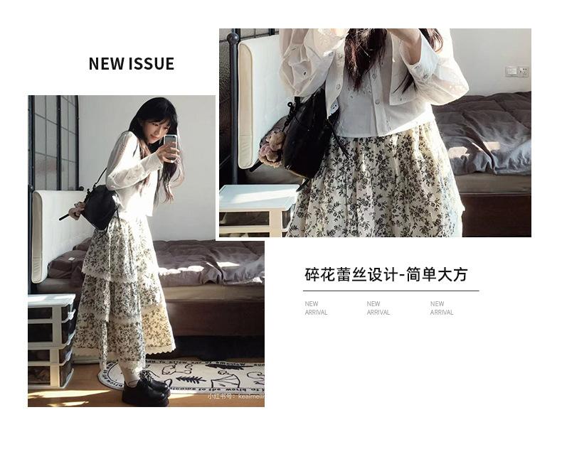 Falda Floral Estilo Francés para Mujer Primavera y Verano 2025 Nueva Cintura Alta Adelgazante Línea A Encaje Puntadas Estilo Retro Falda Pastel