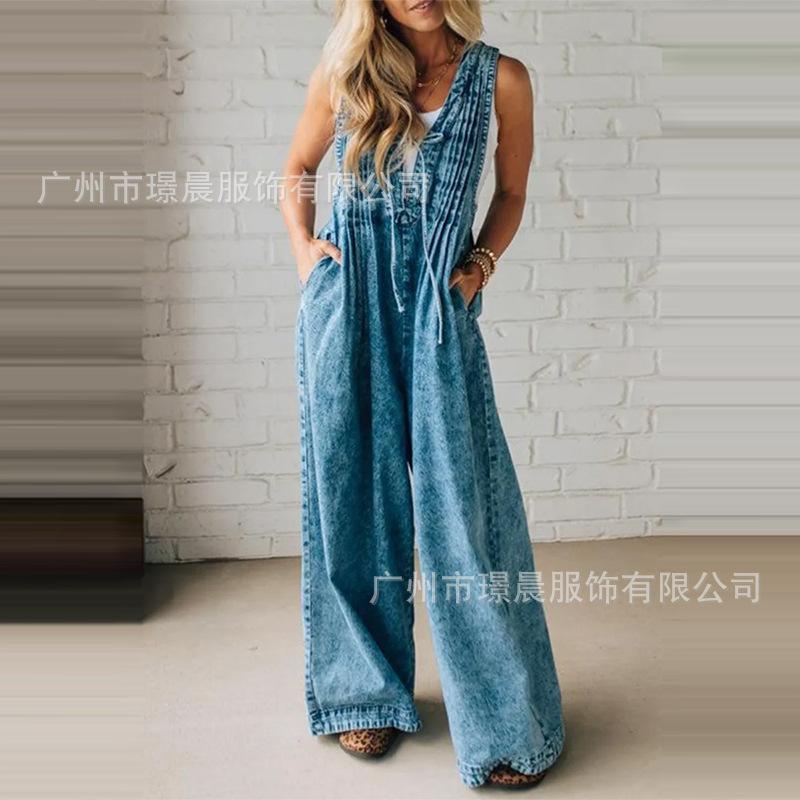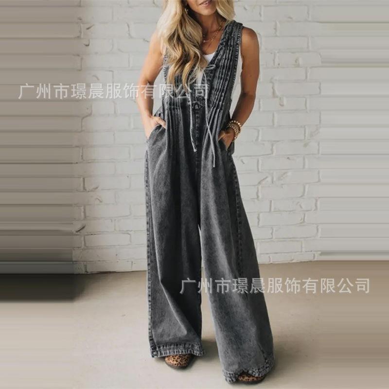 Amazon Transfronterizo 2025 Verano Exportación Europea y Americana Nueva Moda Femenina Casual Suelto Mono sin Mangas para Mujer