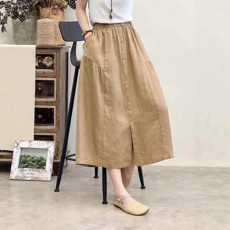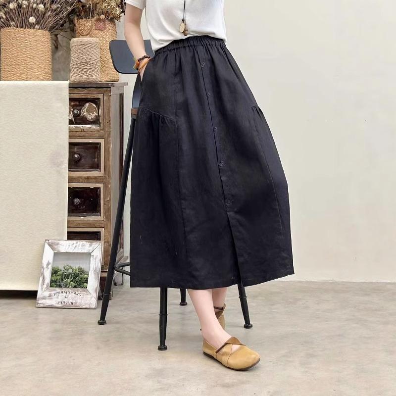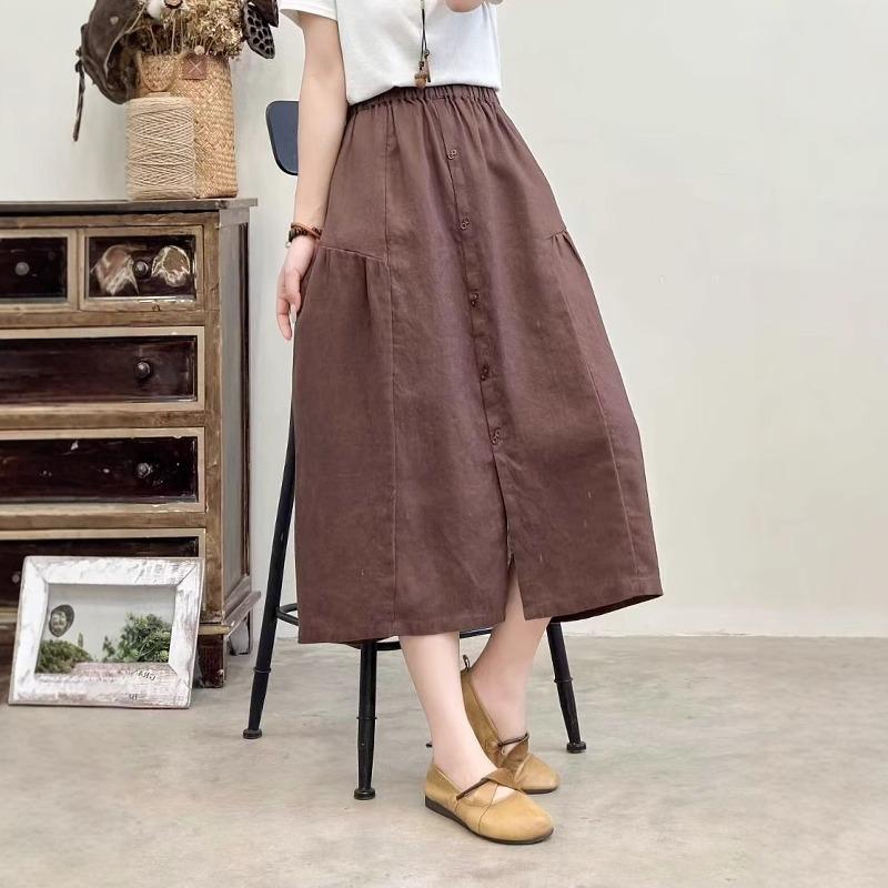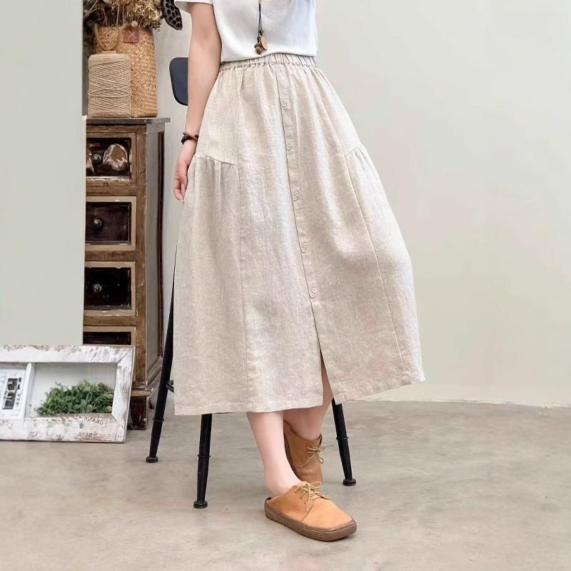 Sitio Web Oficial 2025 Nueva Falda de Moda de Verano para Mujer Corte Holgado Adelgazante Versátil Versión Línea A Falda Sencilla de Largo Medio