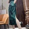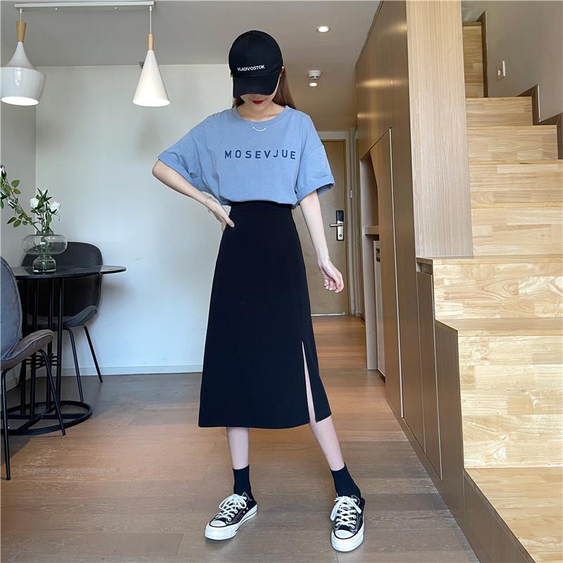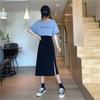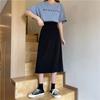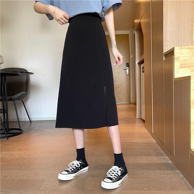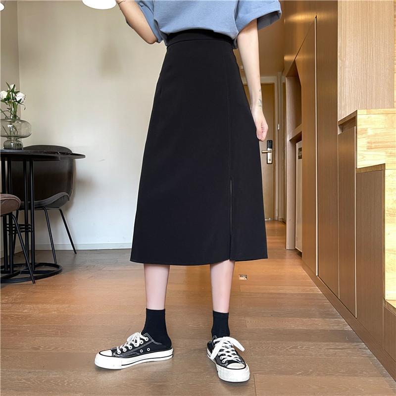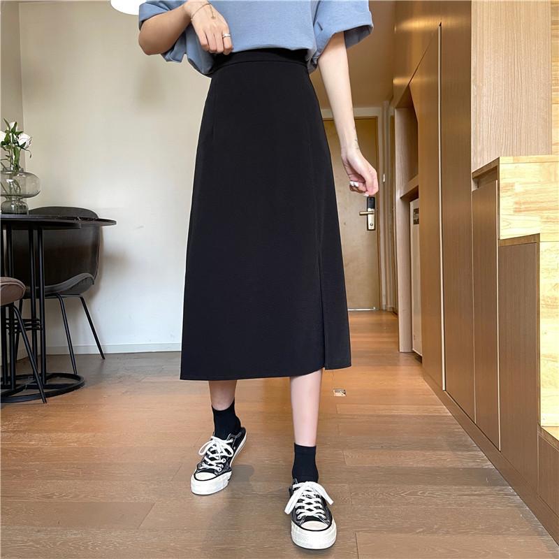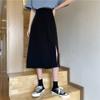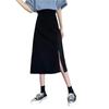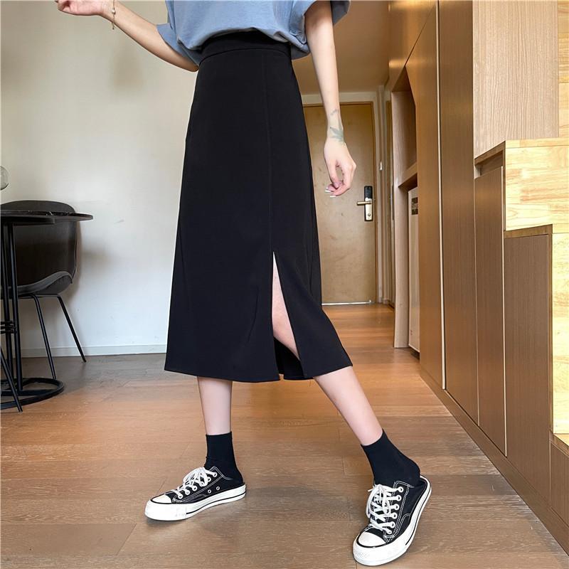 2025 nueva falda midi de verano para mujer de un paso versátil de cintura alta con abertura negra línea A petite bodycon