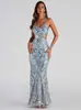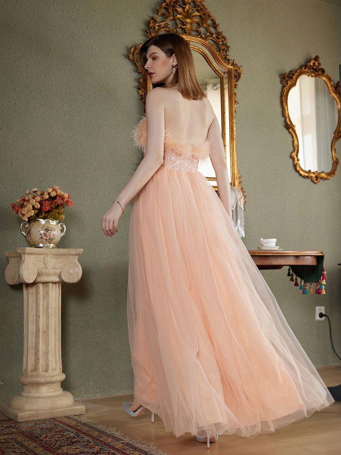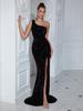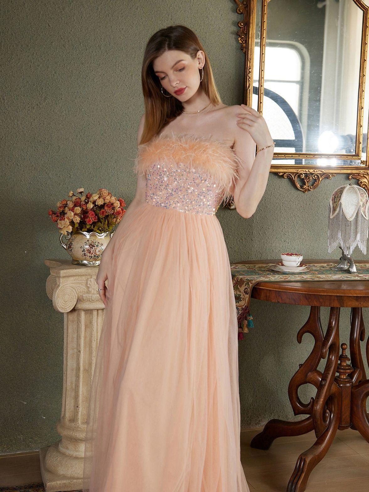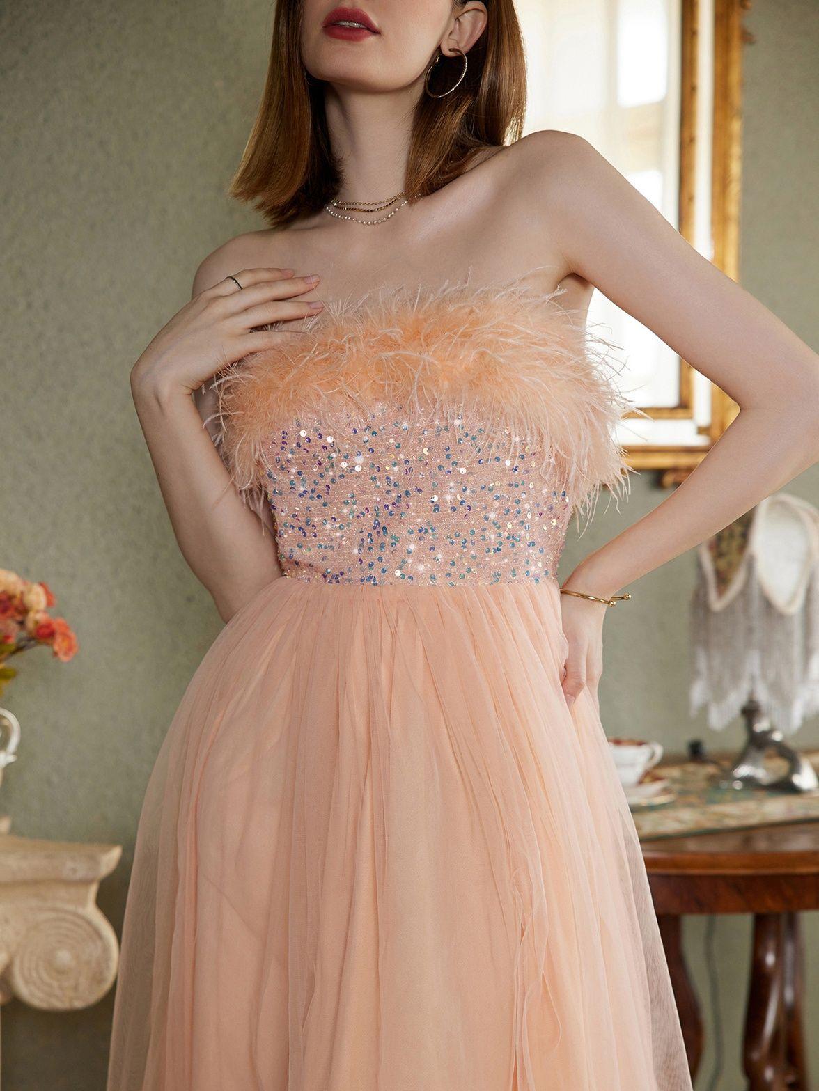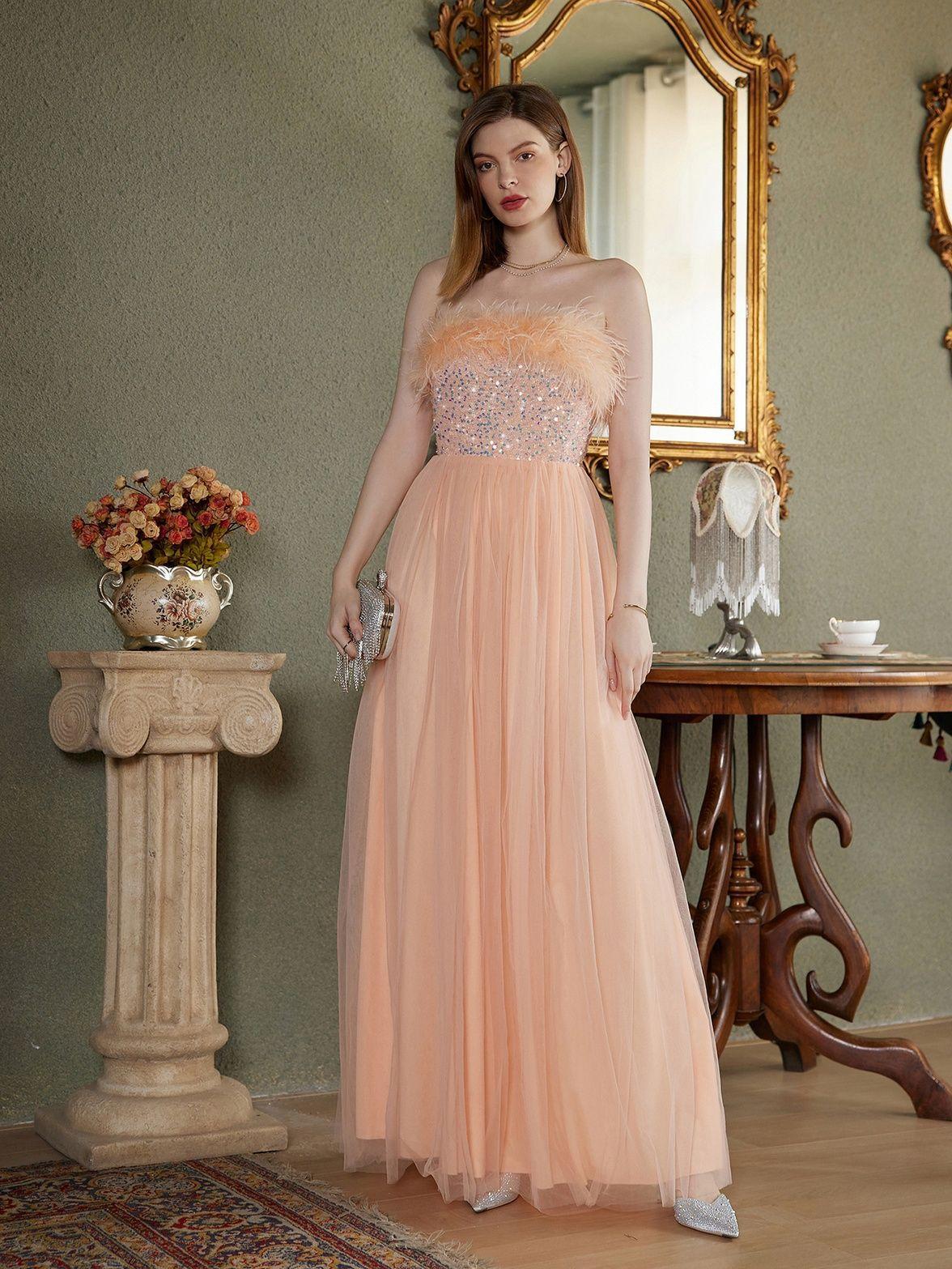 Nuevo Europeo y Americano Transfronterizo Color Sólido Elegante Strapless Lujo Ligero Amazon Verano Lentejuelas Banquete Fiesta Vestido de Noche