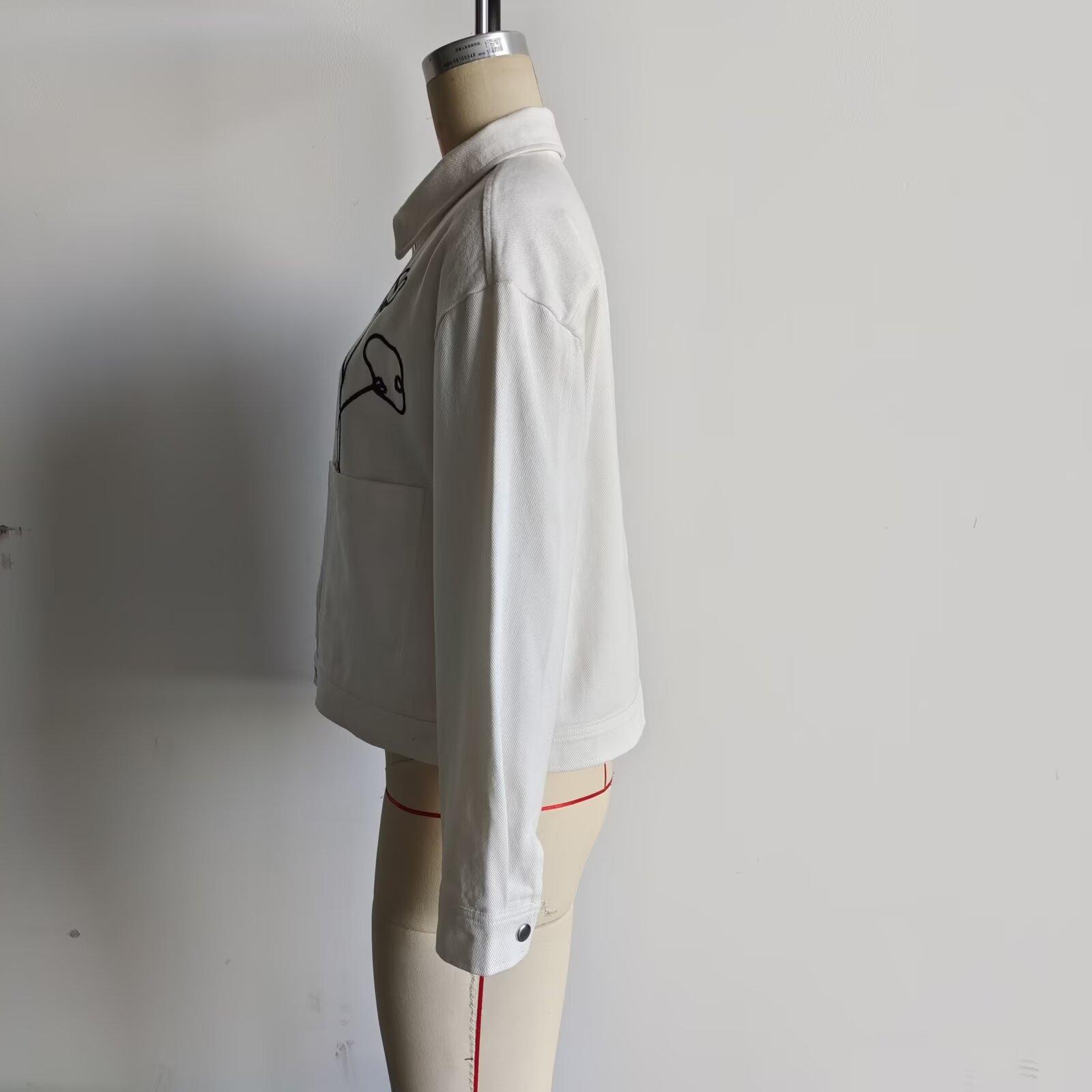 Estilo Europeo y Americano Moda Casual Sencillo Combinable Bordado Manga Larga Chaqueta Abrigo para Mujer Otoño Nuevo Top Cruzado para Venta al Mayoreo