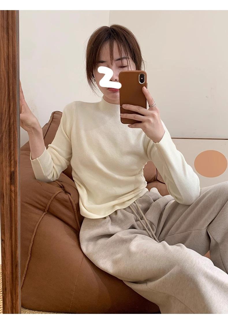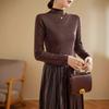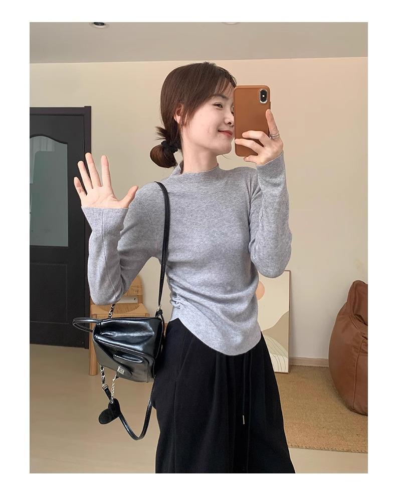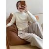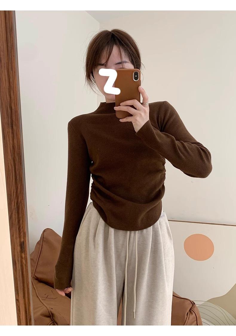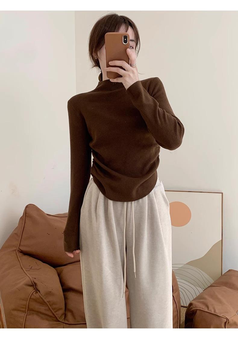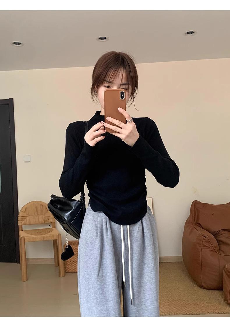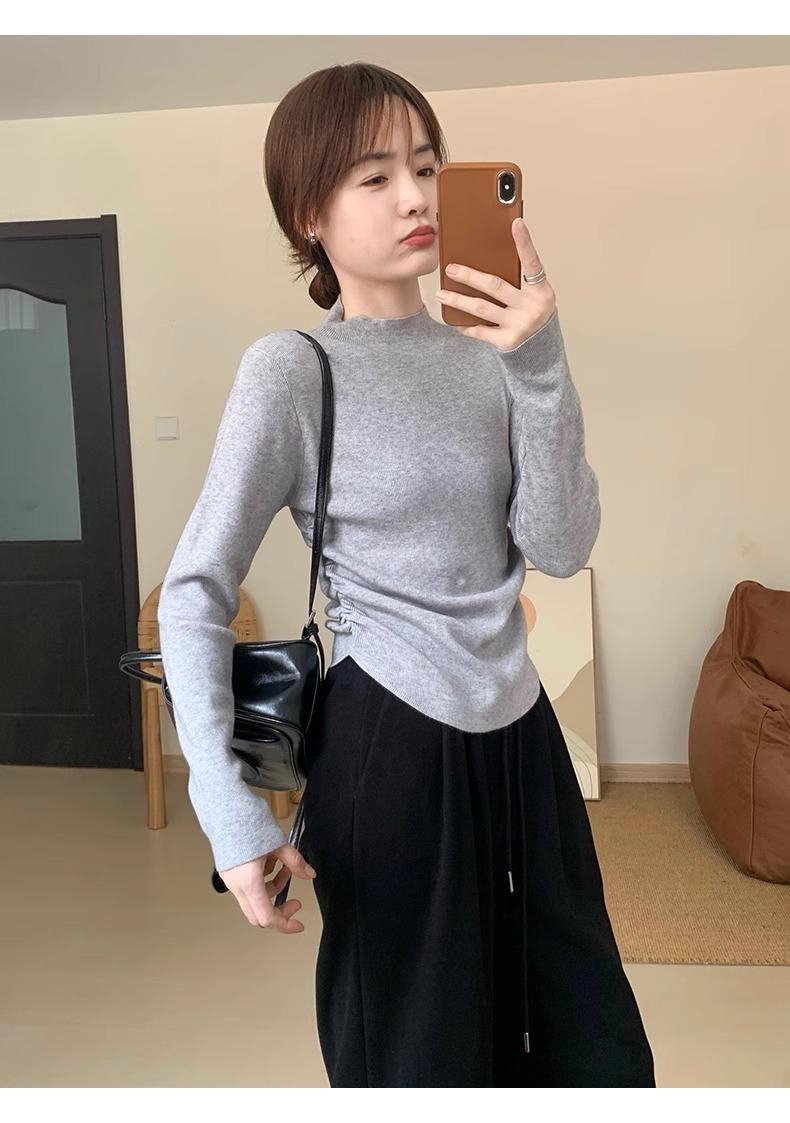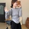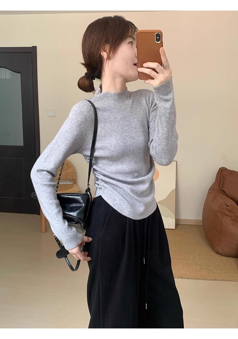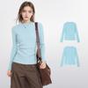 Suéter de Punto de Cuello Medio de Alta Calidad para Mujer Primavera 2025 Camisa Base Plisada Irregular Top de Manga Larga con Cuello Medio Alto