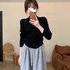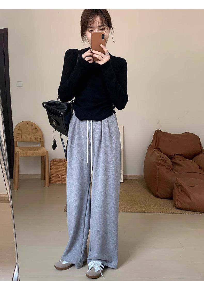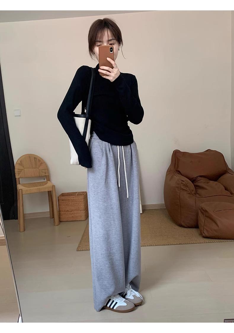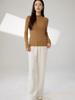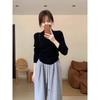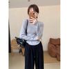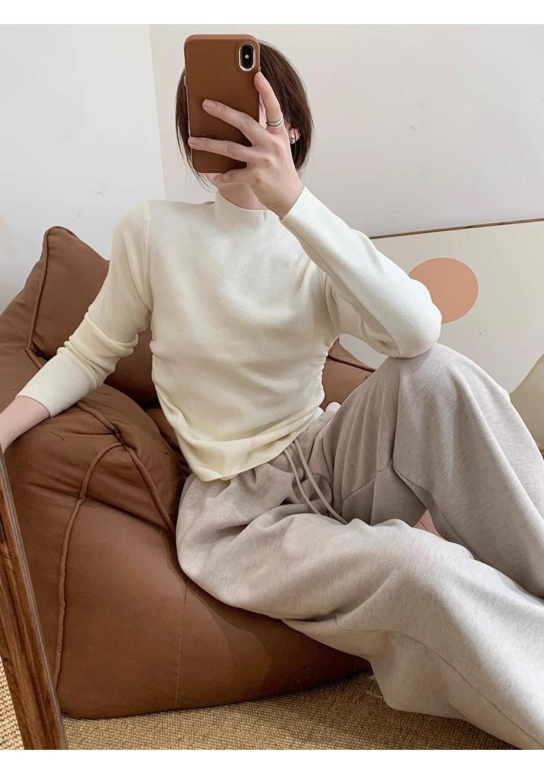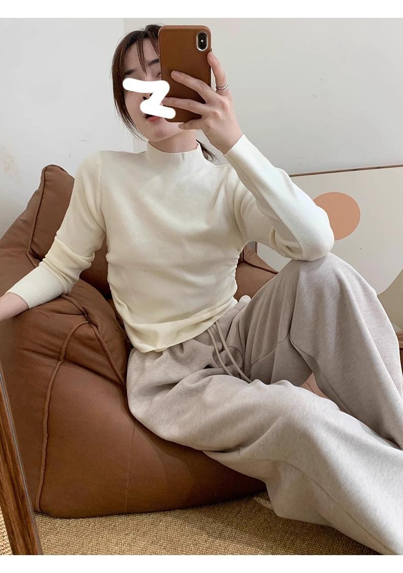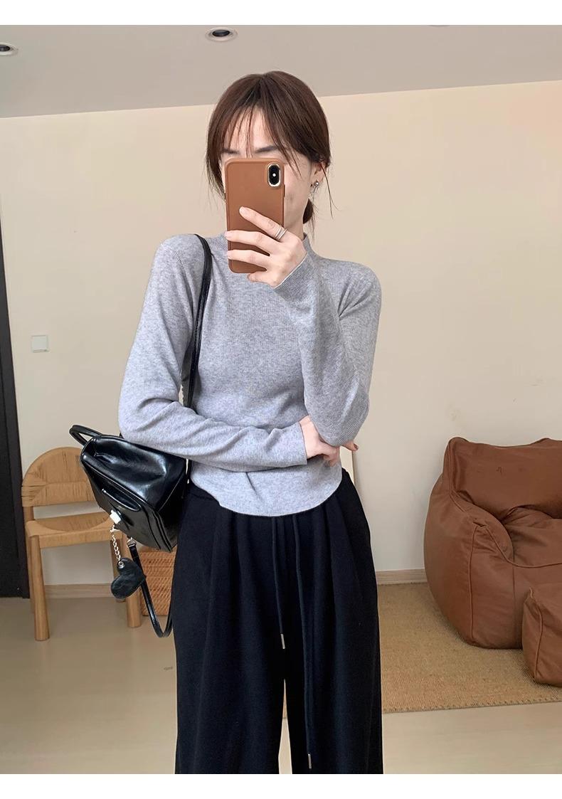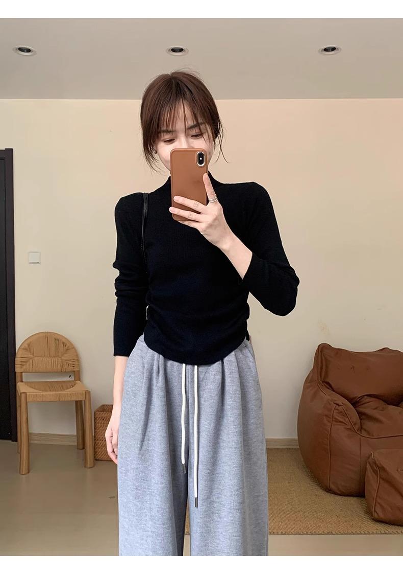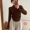 Suéter de Punto de Cuello Medio de Alta Calidad para Mujer Primavera 2025 Camisa Base Plisada Irregular Top de Manga Larga con Cuello Medio Alto