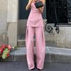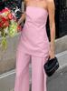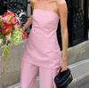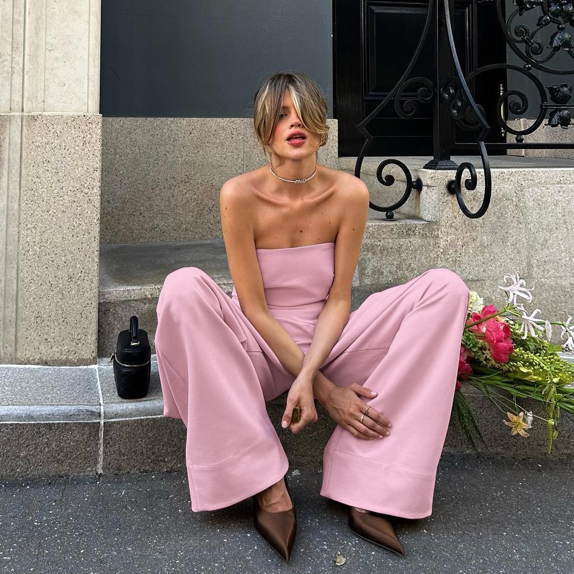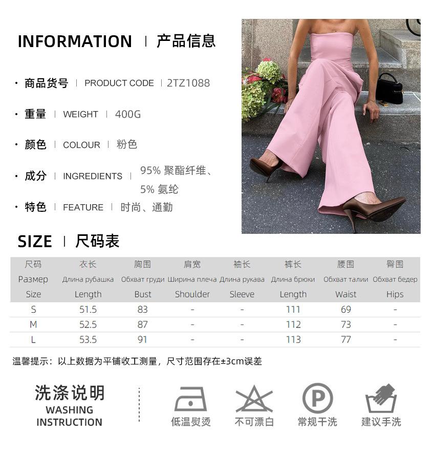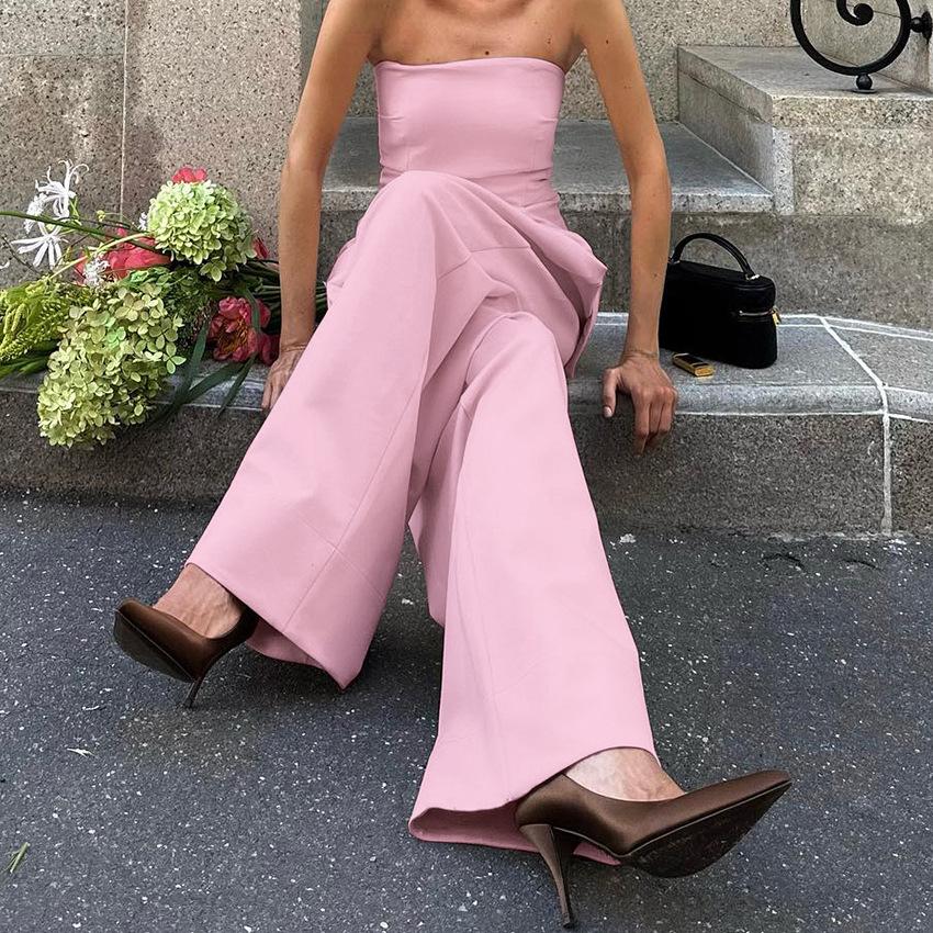 Verano 2025 Nuevo Temperamento Top Strapless Pantalones Pierna Ancha Diseño de Dos Piezas para Mujer Moda para Ir al Trabajo Europa y América Transfronterizo