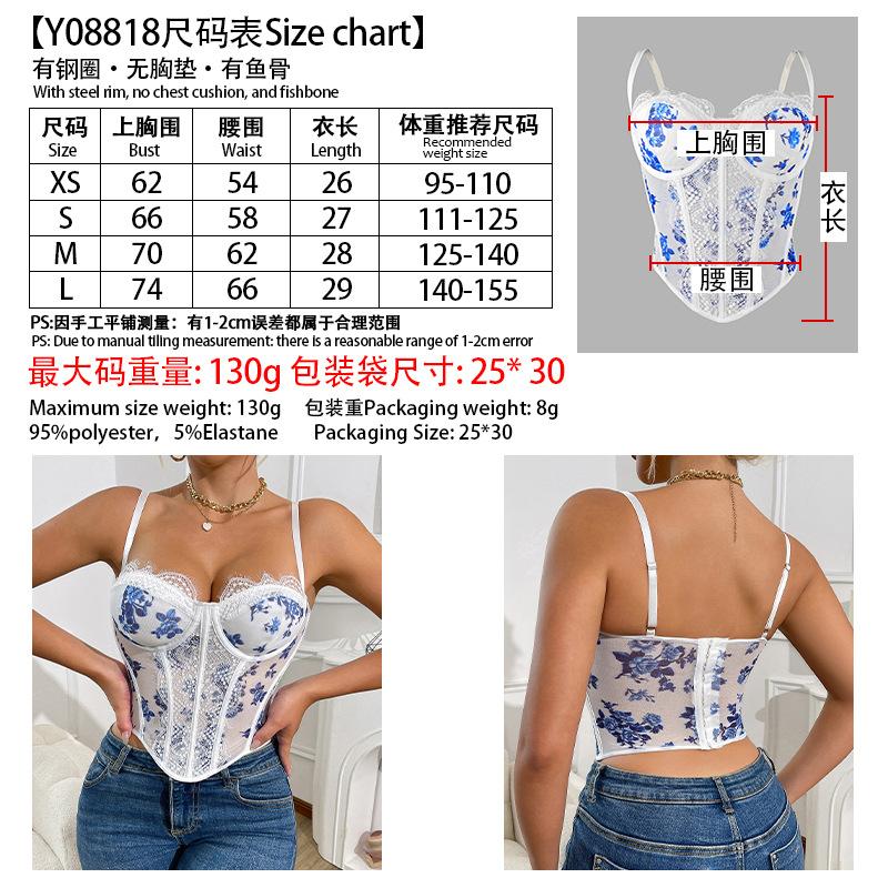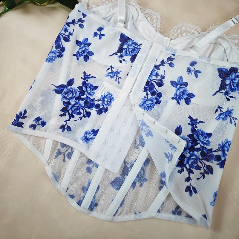 Corsé Sexy de Espina de Pescado Transfronterizo Europeo y Americano Francés Comercio Exterior Chica Caliente Sentido de Alta Gama Ropa Exterior Camisola Encaje Hilera Gancho Envoltura Pecho