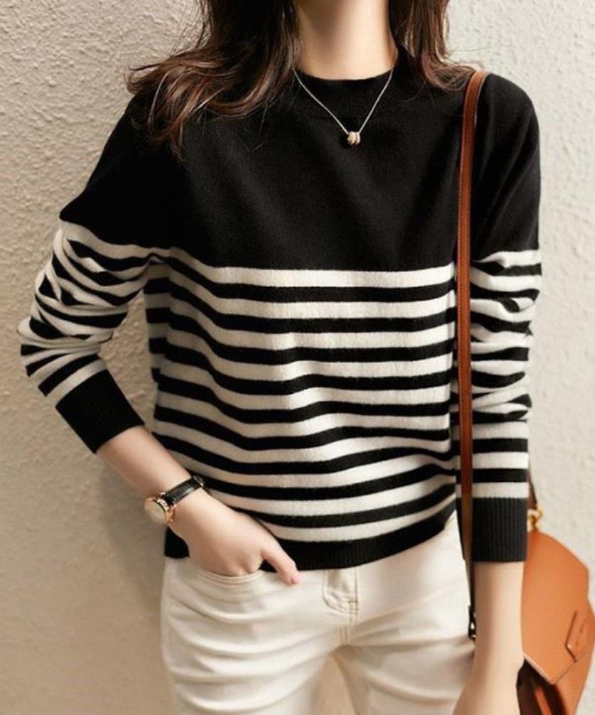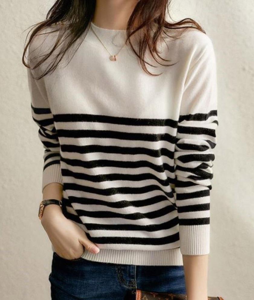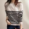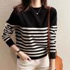 2025 Primavera y Otoño Nuevo Suéter Base de Punto de Cachemira con Bloque de Color a Rayas para Mujer, Adelgazante, Temperamento, Moda