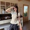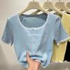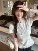 Playera de Manga Corta con Encaje Dulce y Fresco para Mujer en Verano, Top Versátil de Estilo Dulce con Aspecto Adelgazante