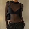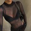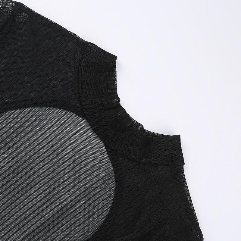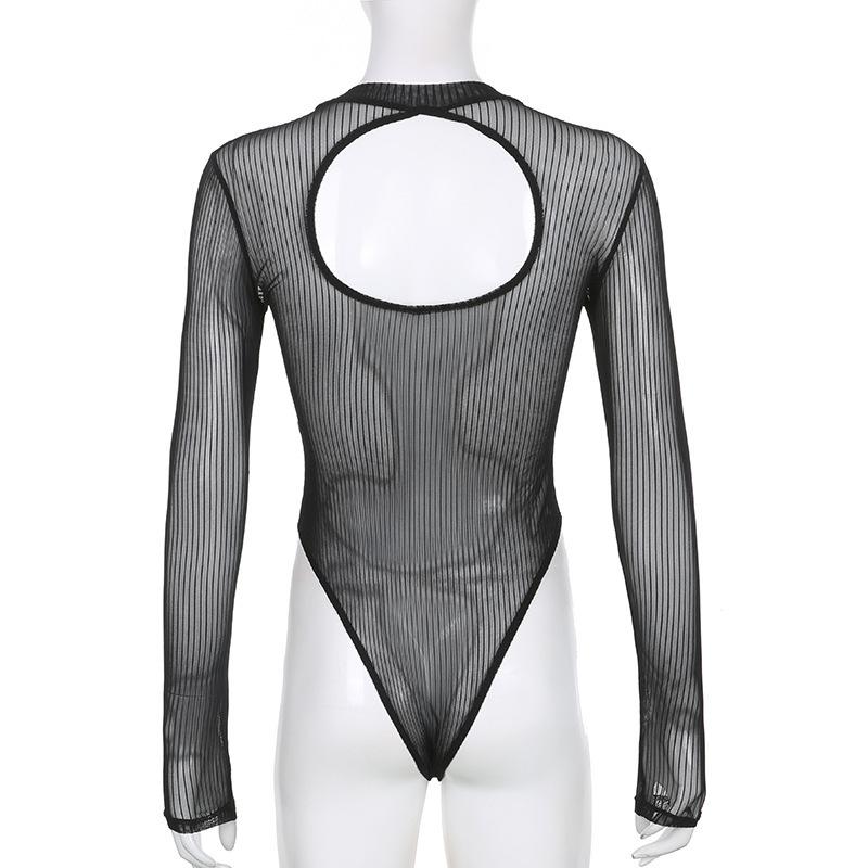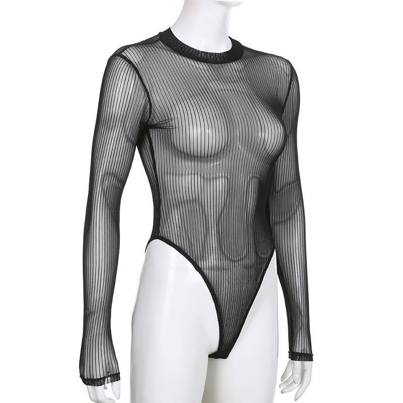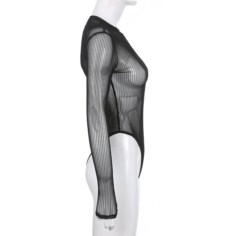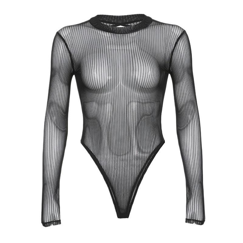 Body Sexy Transparente Europeo y Americano Verano Chica Caliente Malla Rayada Adelgazante Capa Base Comercio Exterior Ropa de Mujer Top Versátil