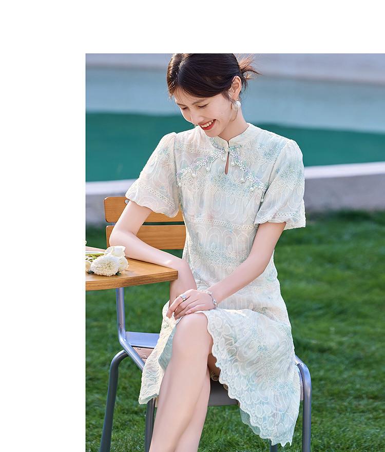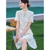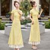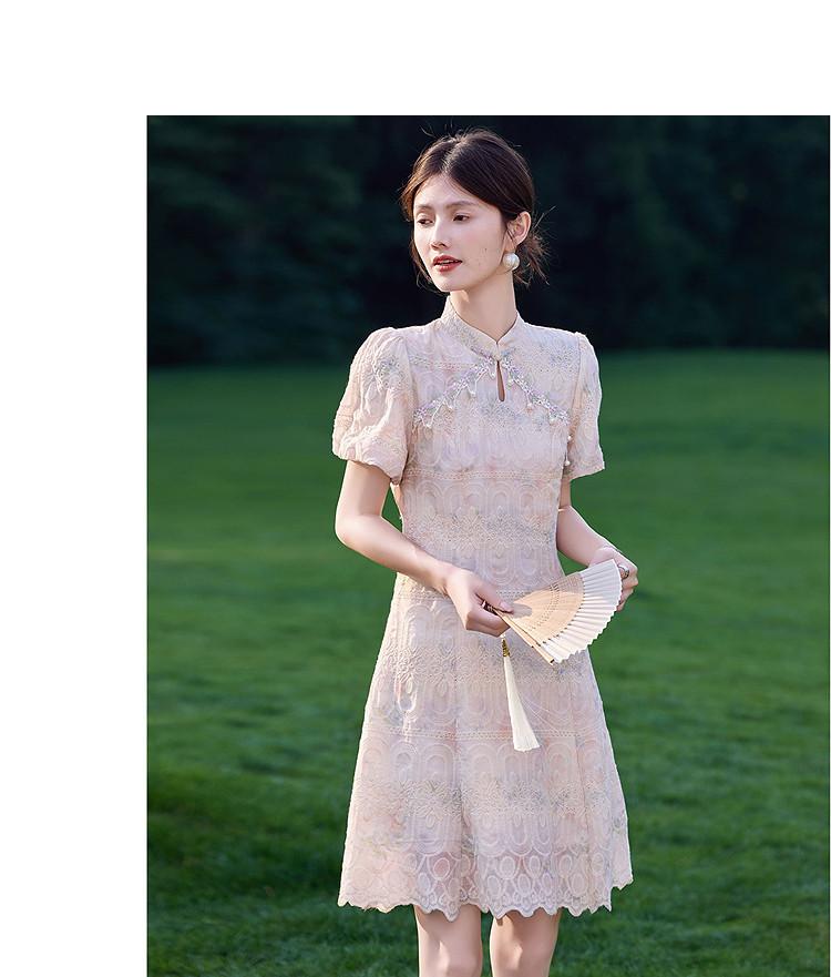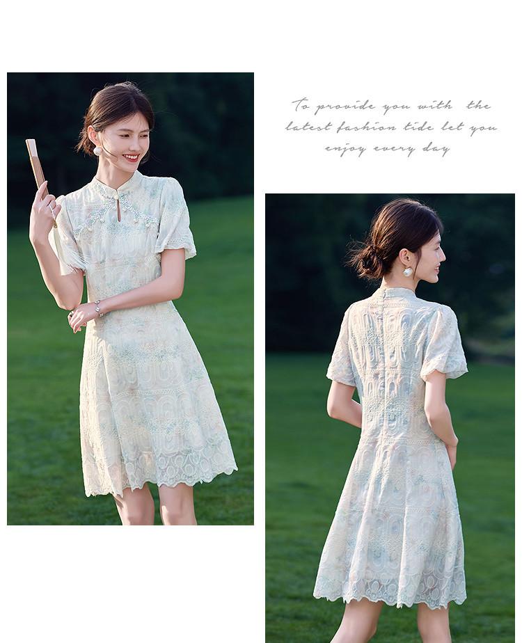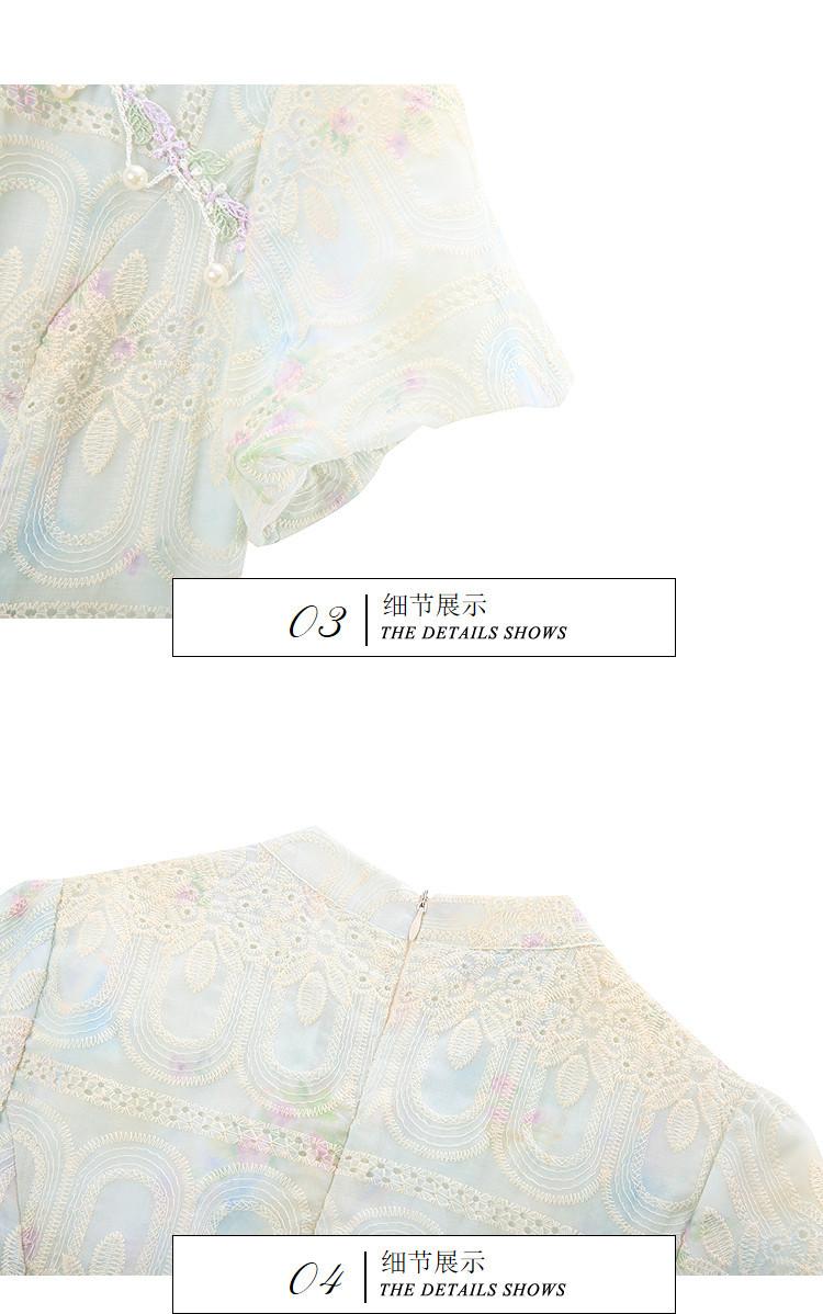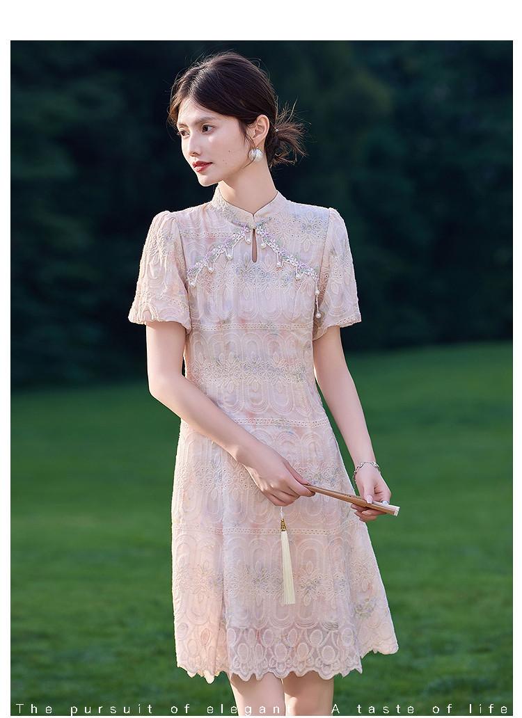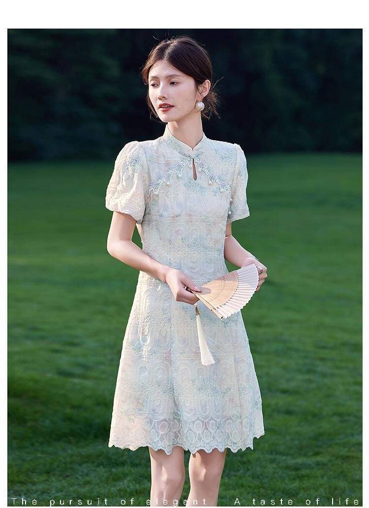 Moda Verano 2025 Nuevo Estilo Chino Retro Cuello Mao Vestido Largo Slim Bordado Vestido Línea A con Mangas Abullonadas