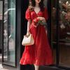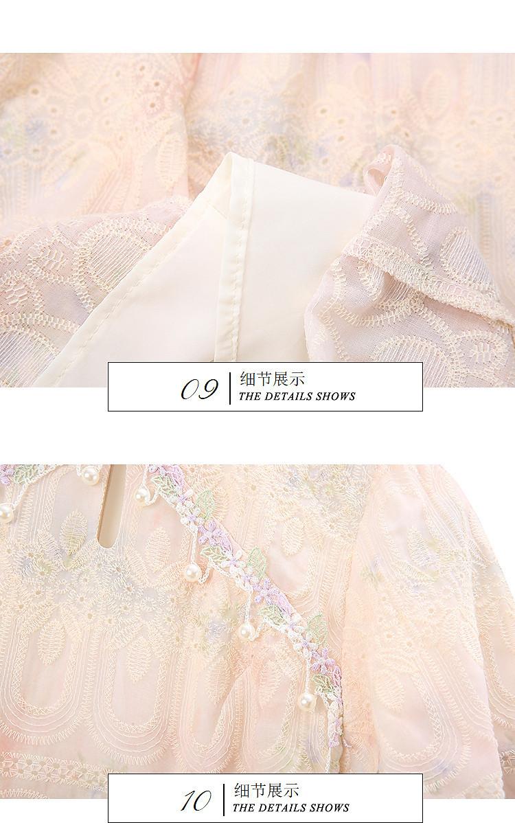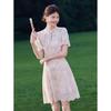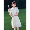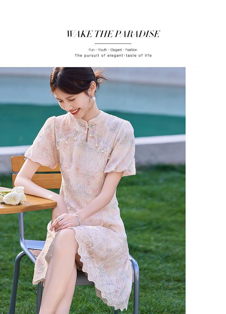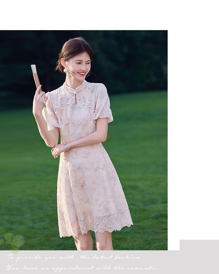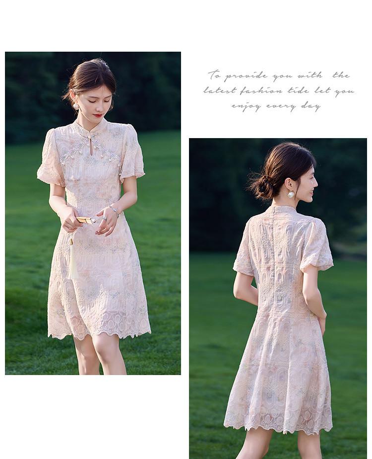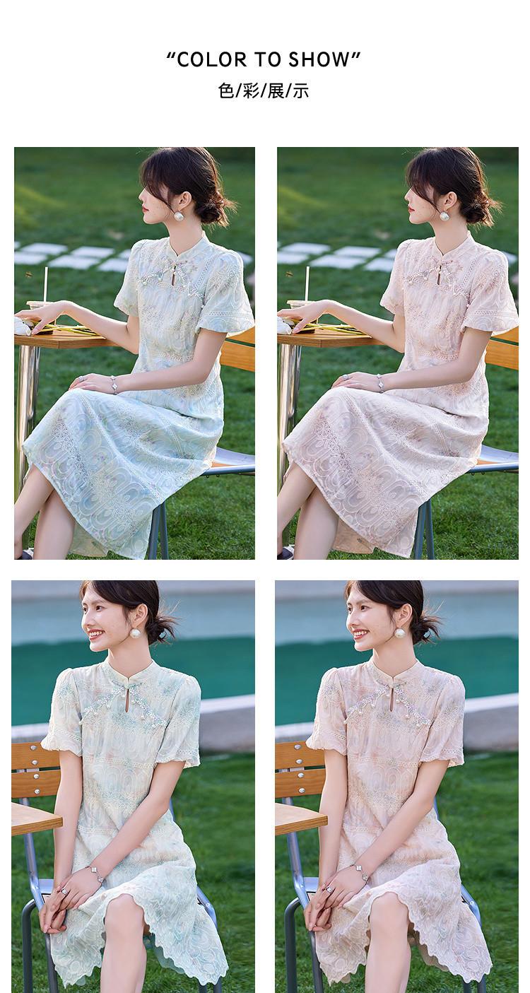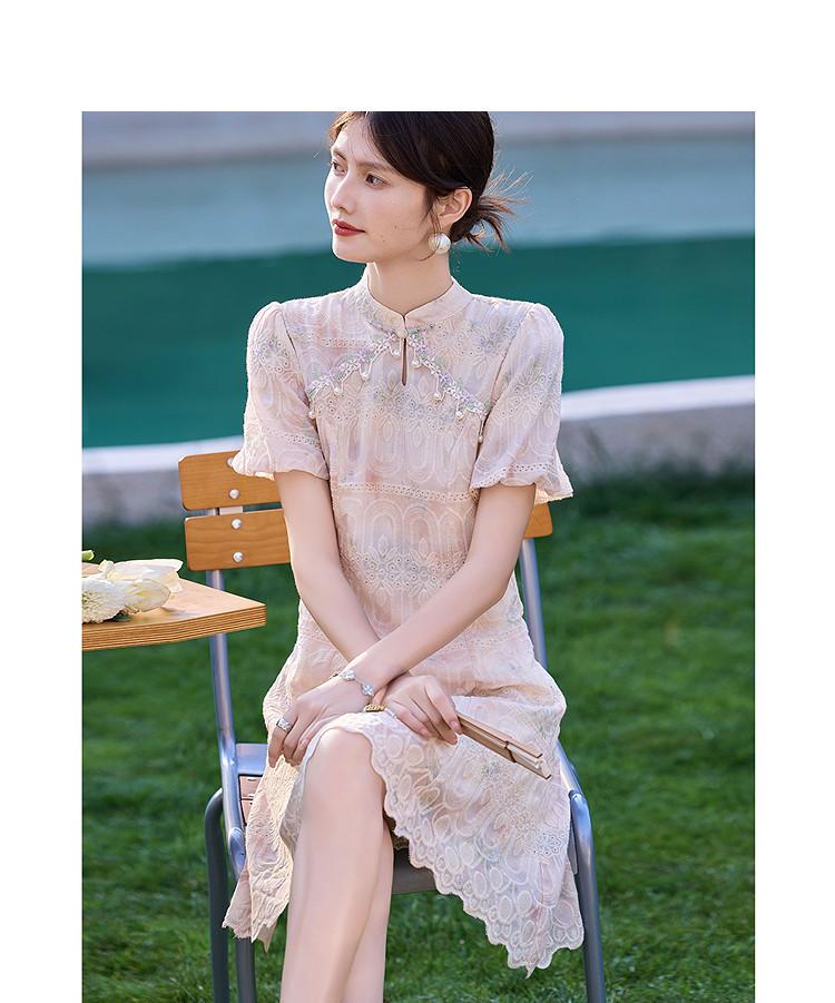 Moda Verano 2025 Nuevo Estilo Chino Retro Cuello Mao Vestido Largo Slim Bordado Vestido Línea A con Mangas Abullonadas