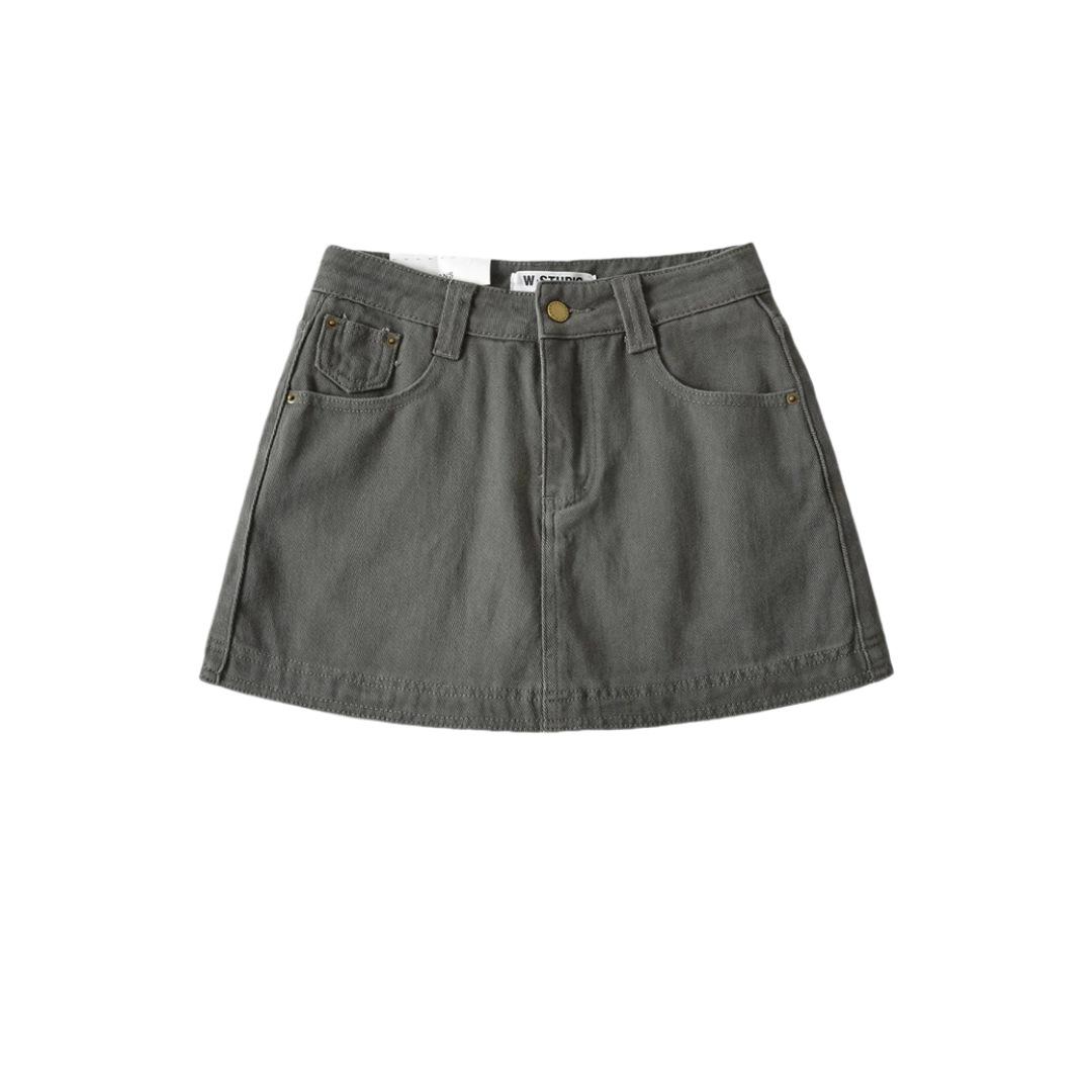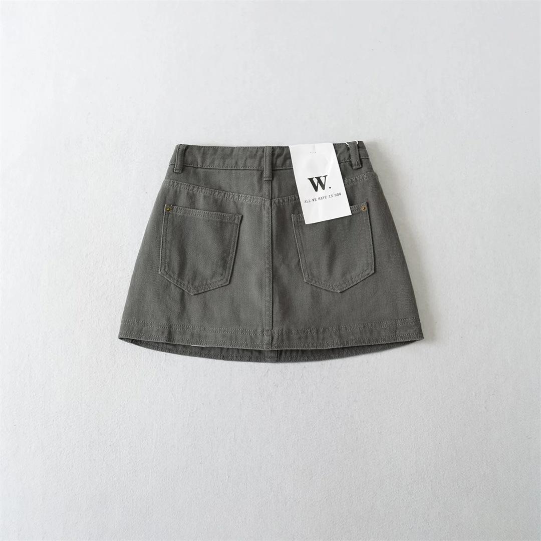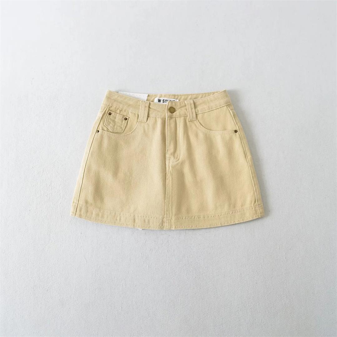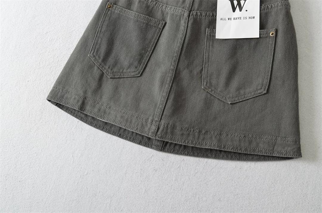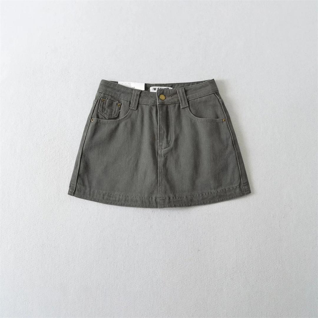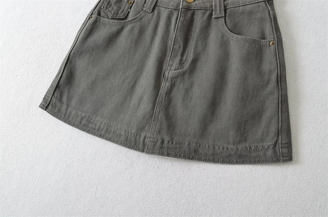 Falda de mezclilla retro de estilo europeo y americano para mujer, color sólido, doble bolsillo, falda corta línea A anti-exposición para chica hot, falda de mezclilla