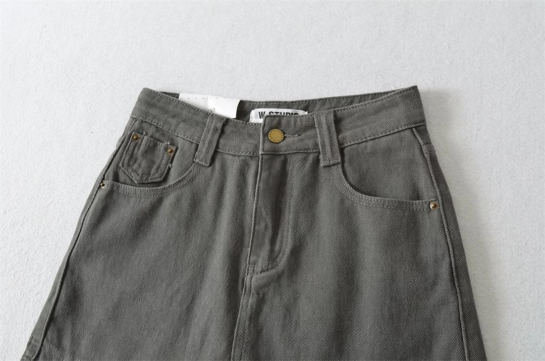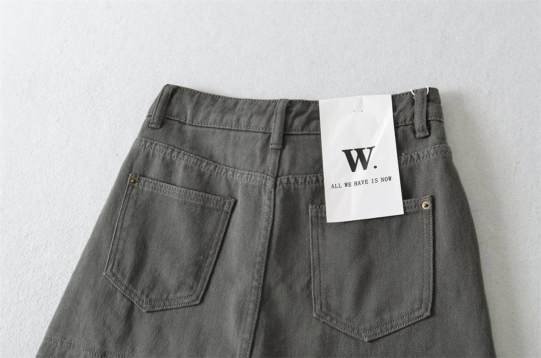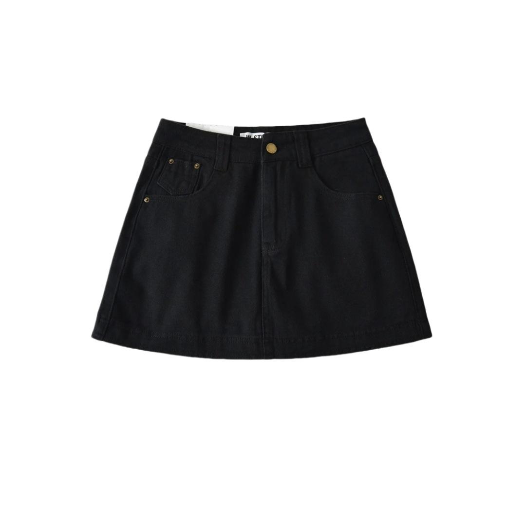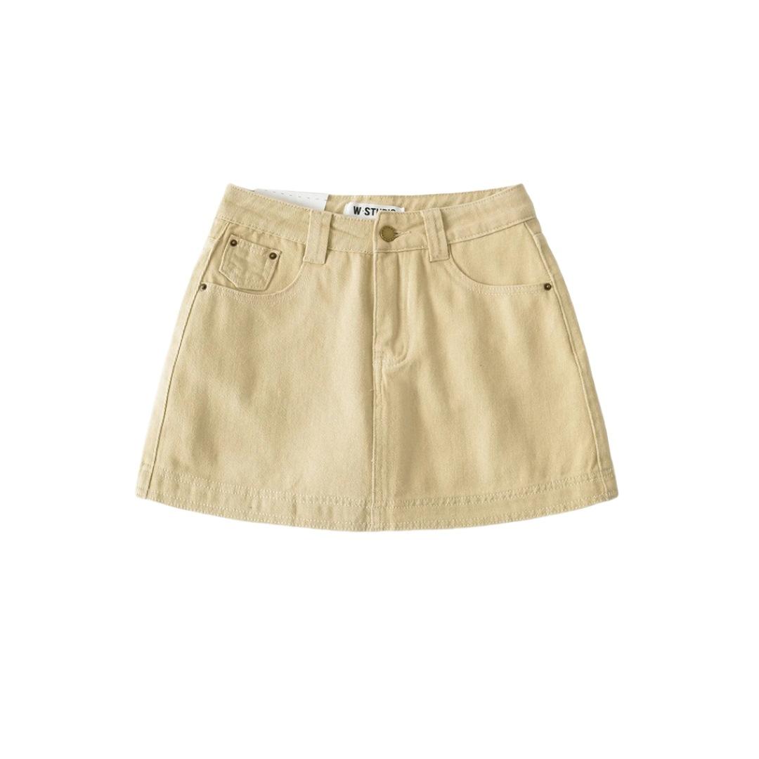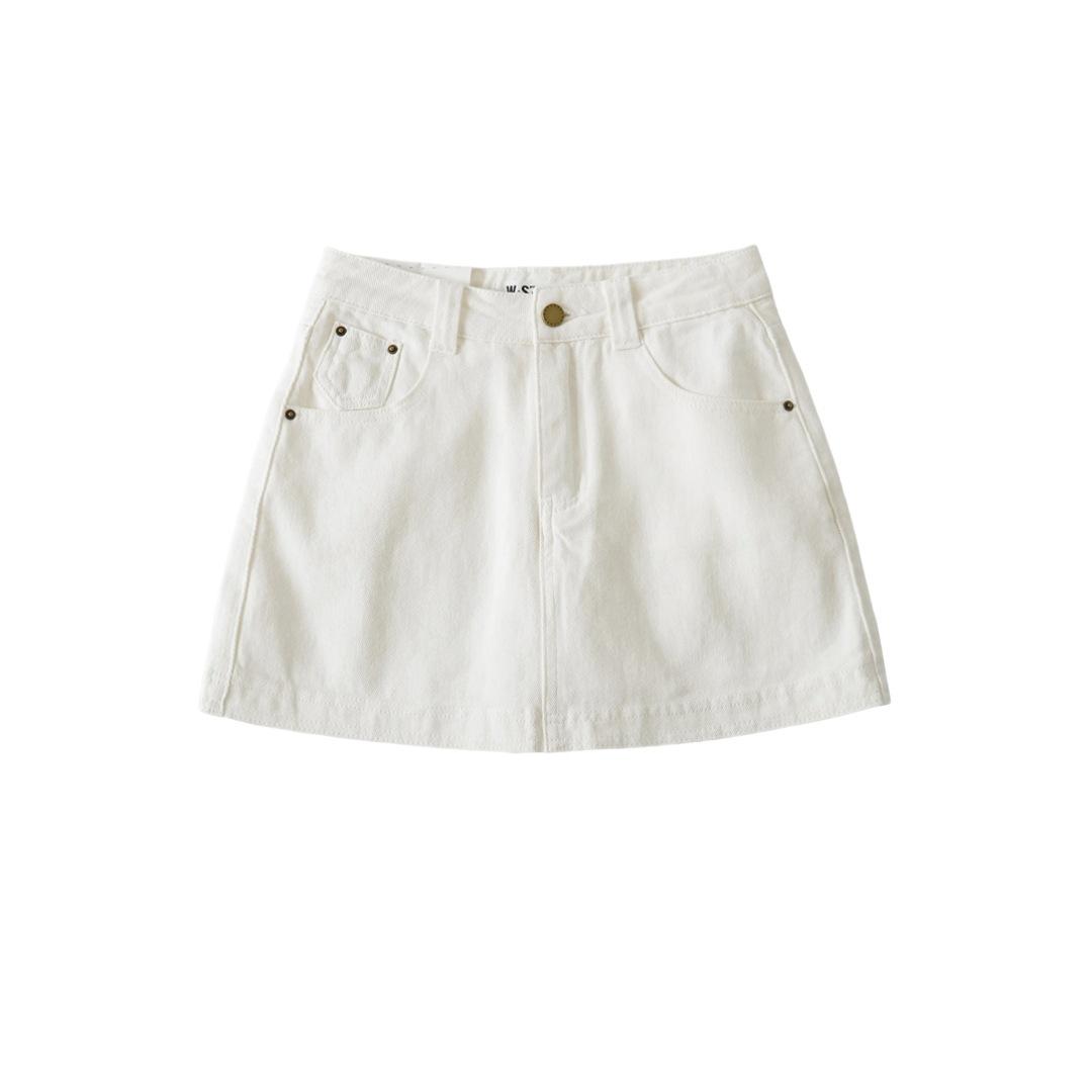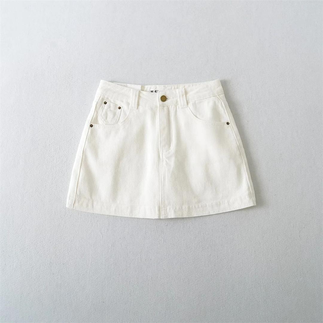 Falda de mezclilla retro de estilo europeo y americano para mujer, color sólido, doble bolsillo, falda corta línea A anti-exposición para chica hot, falda de mezclilla