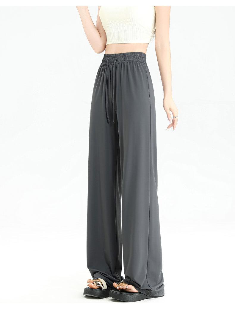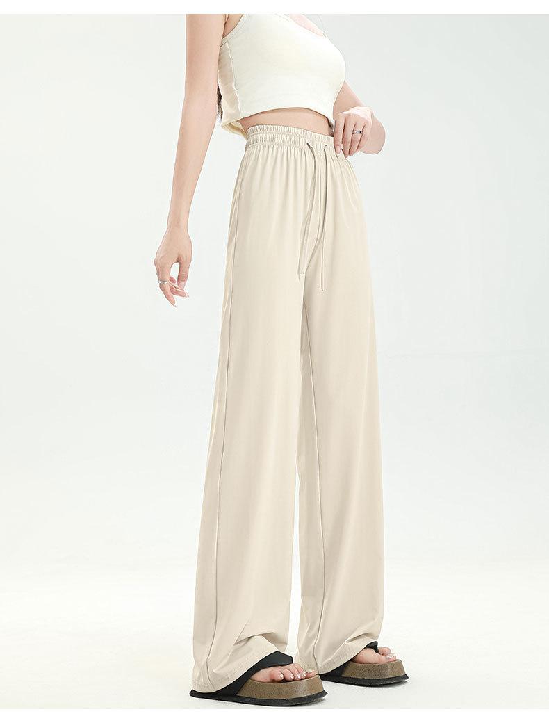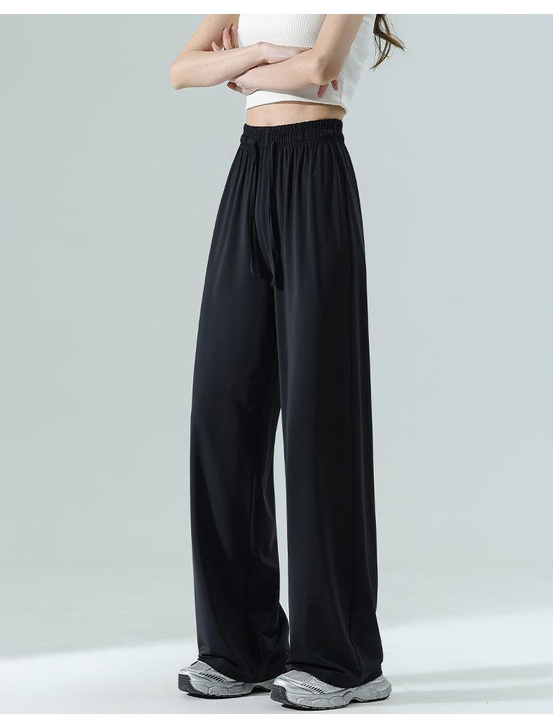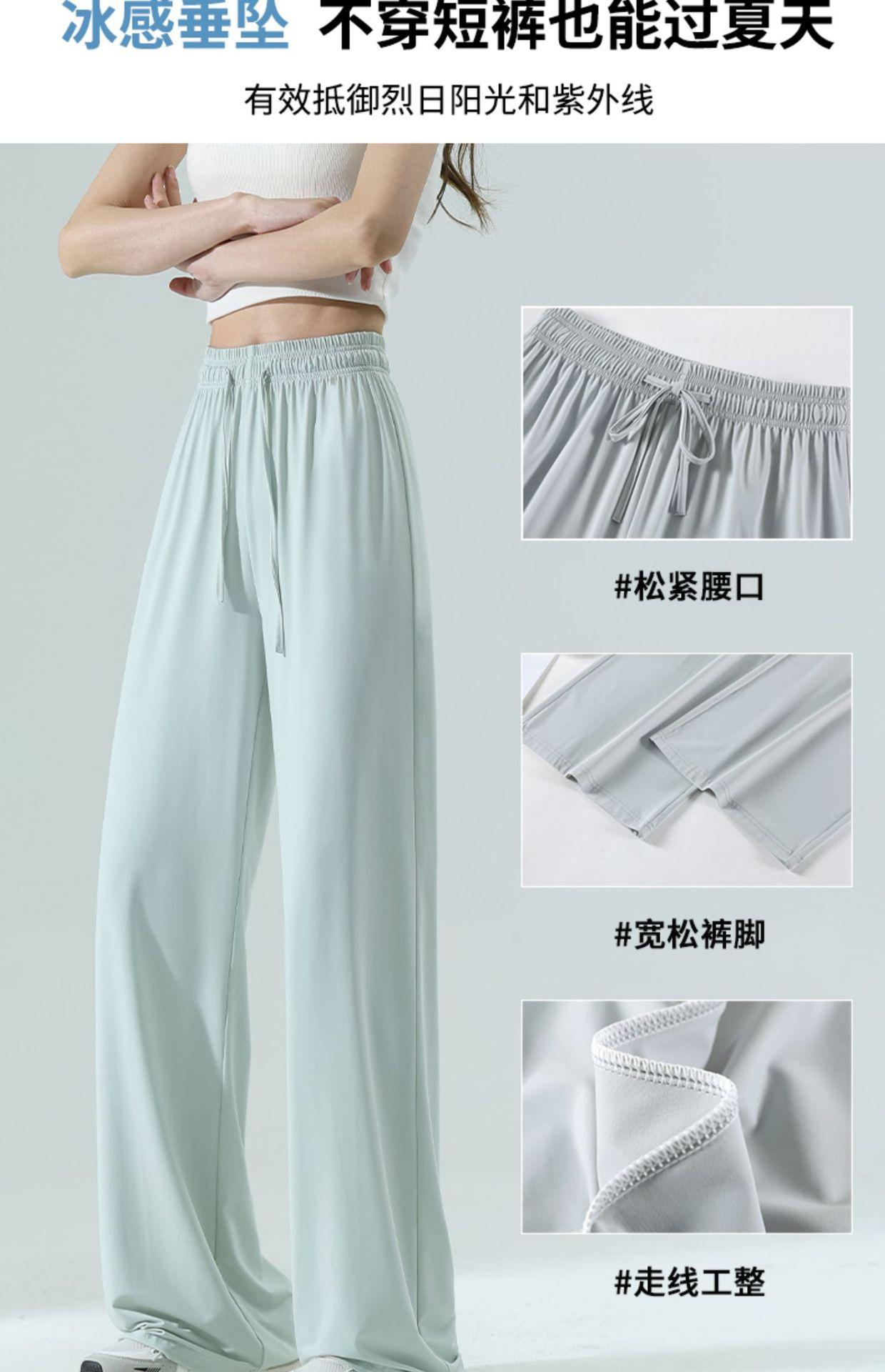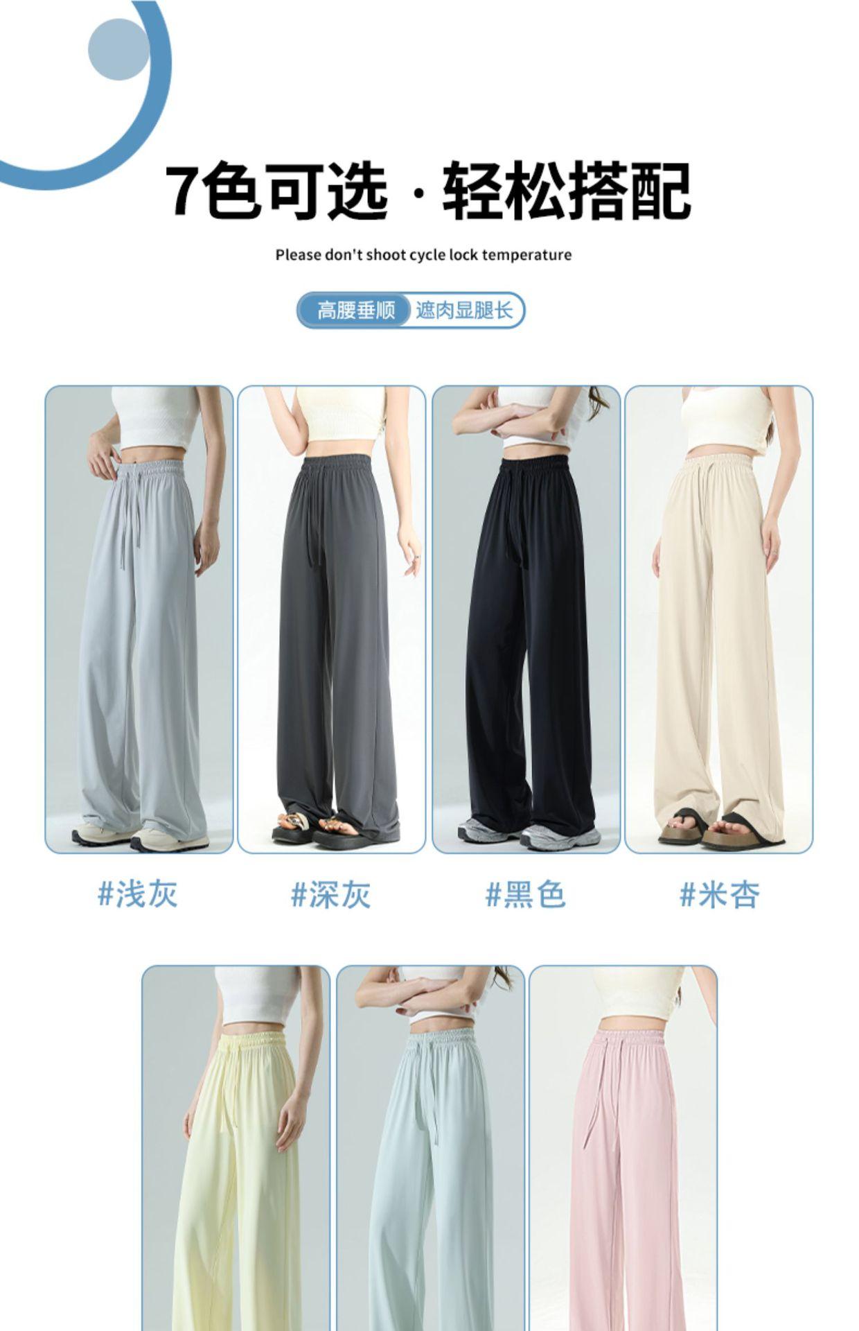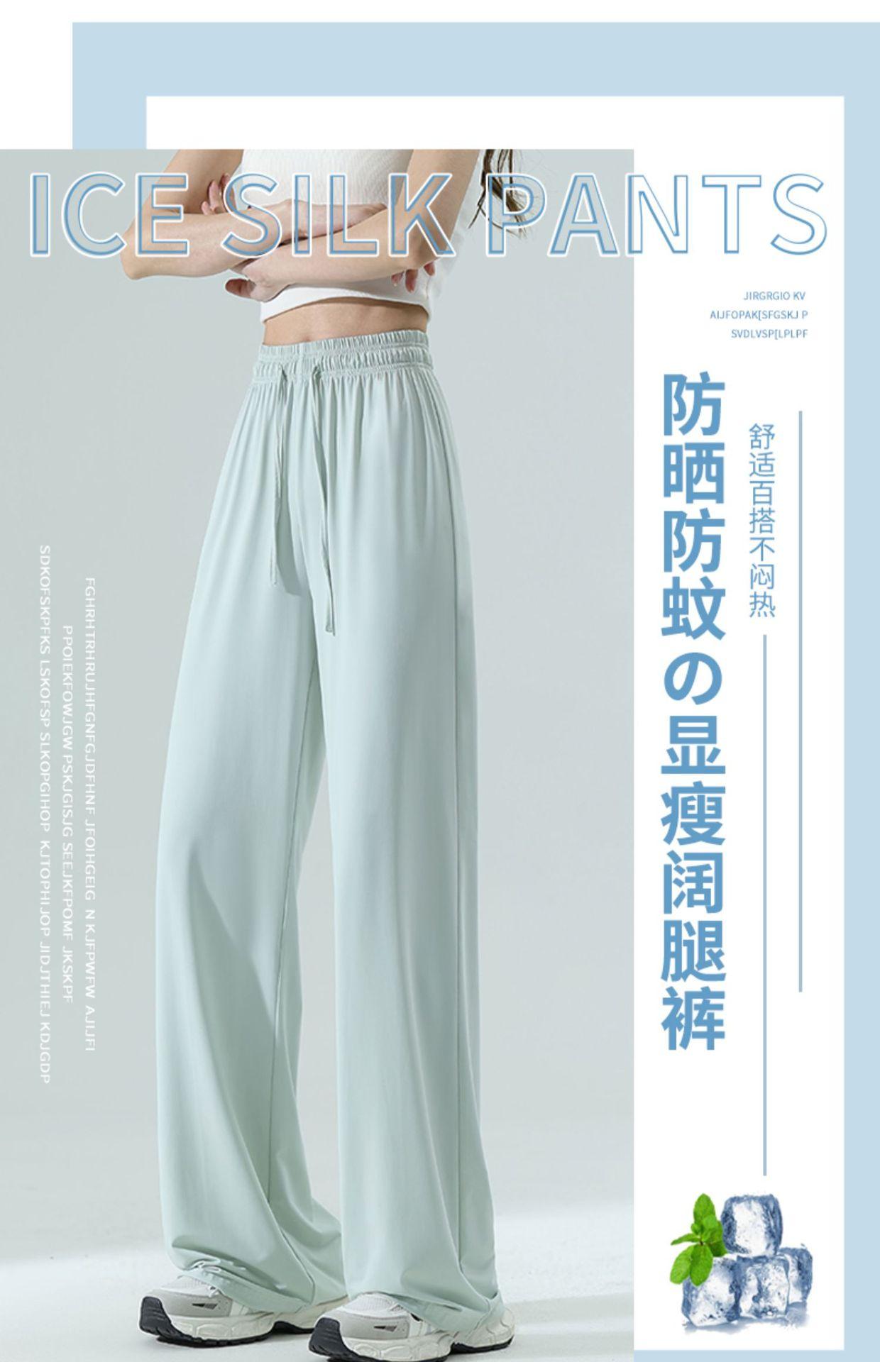 2025 Nuevo Pantalón Casual de Seda de Hielo de Pierna Ancha para Mujer Verano Delgado Cintura Alta Caída Secado Rápido Fresco Protector Solar Pantalón Recto
