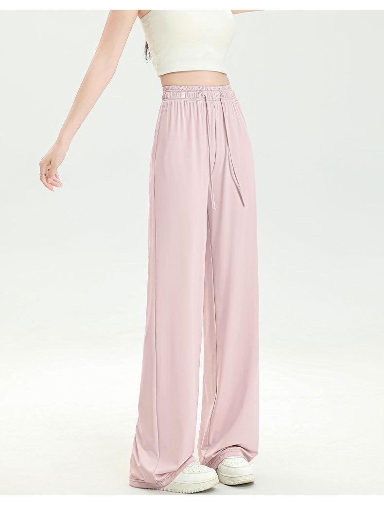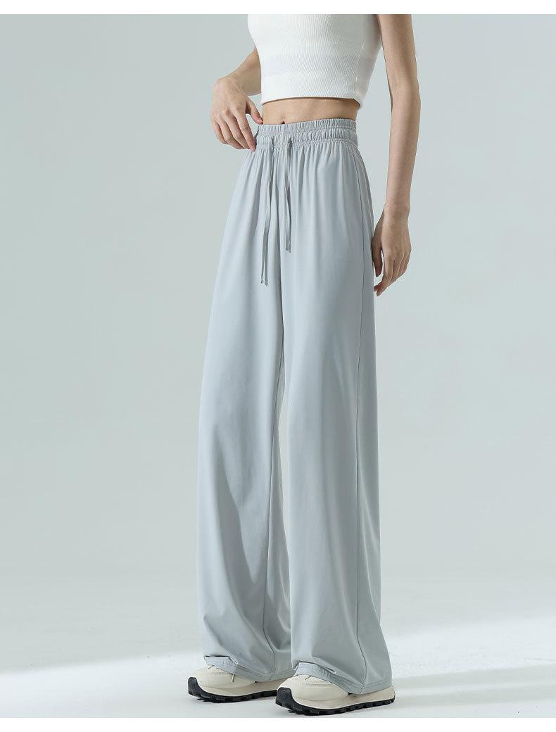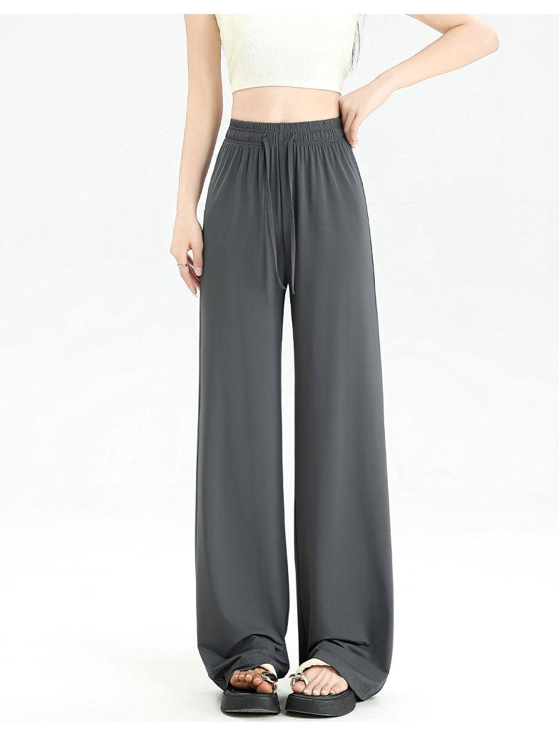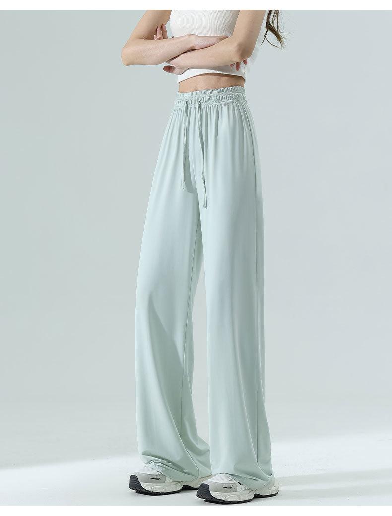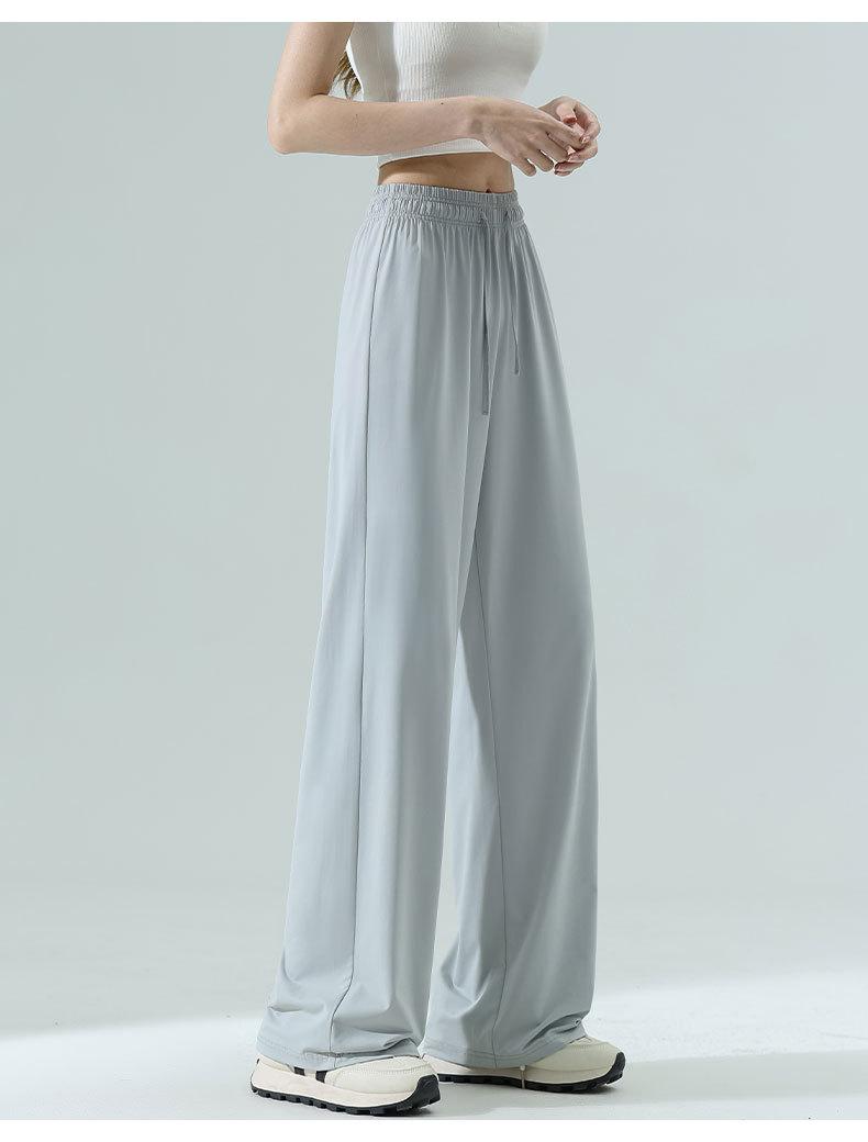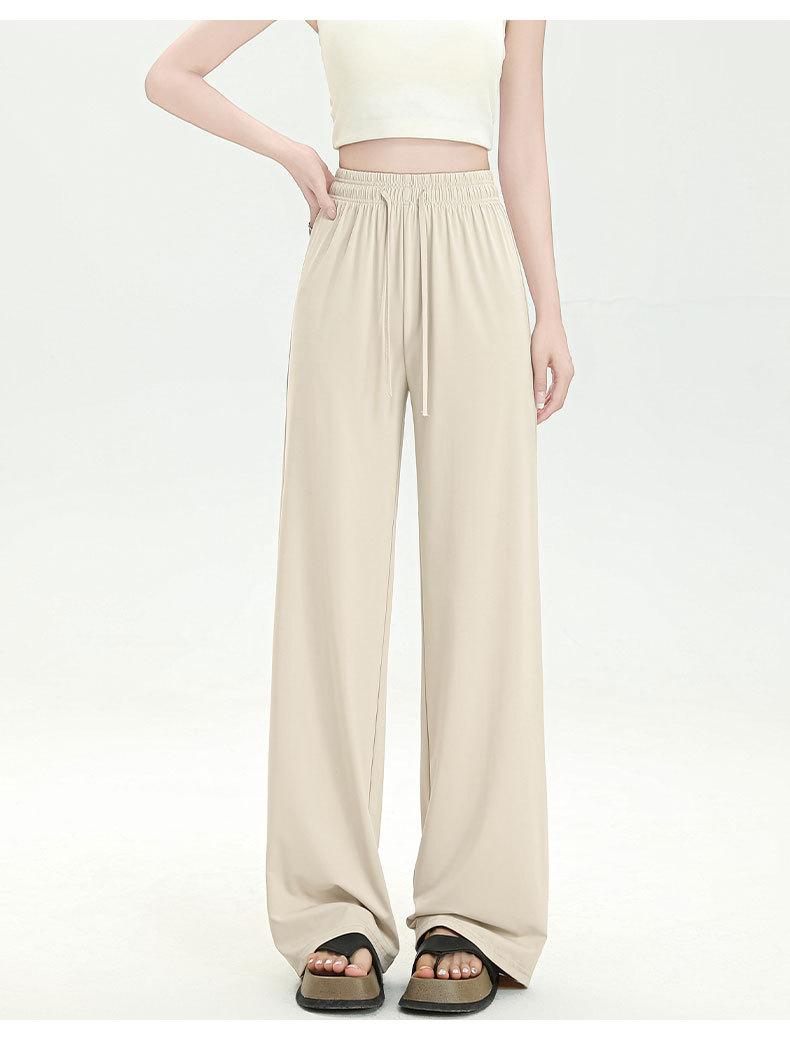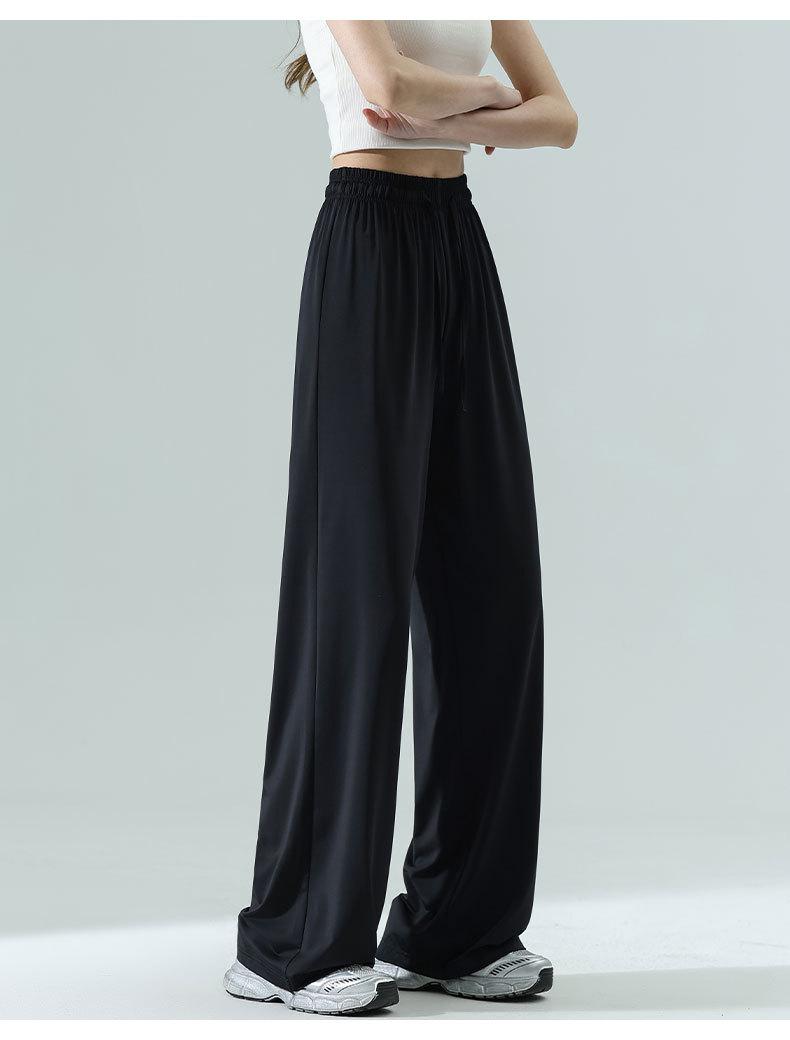 2025 Nuevo Pantalón Casual de Seda de Hielo de Pierna Ancha para Mujer Verano Delgado Cintura Alta Caída Secado Rápido Fresco Protector Solar Pantalón Recto