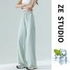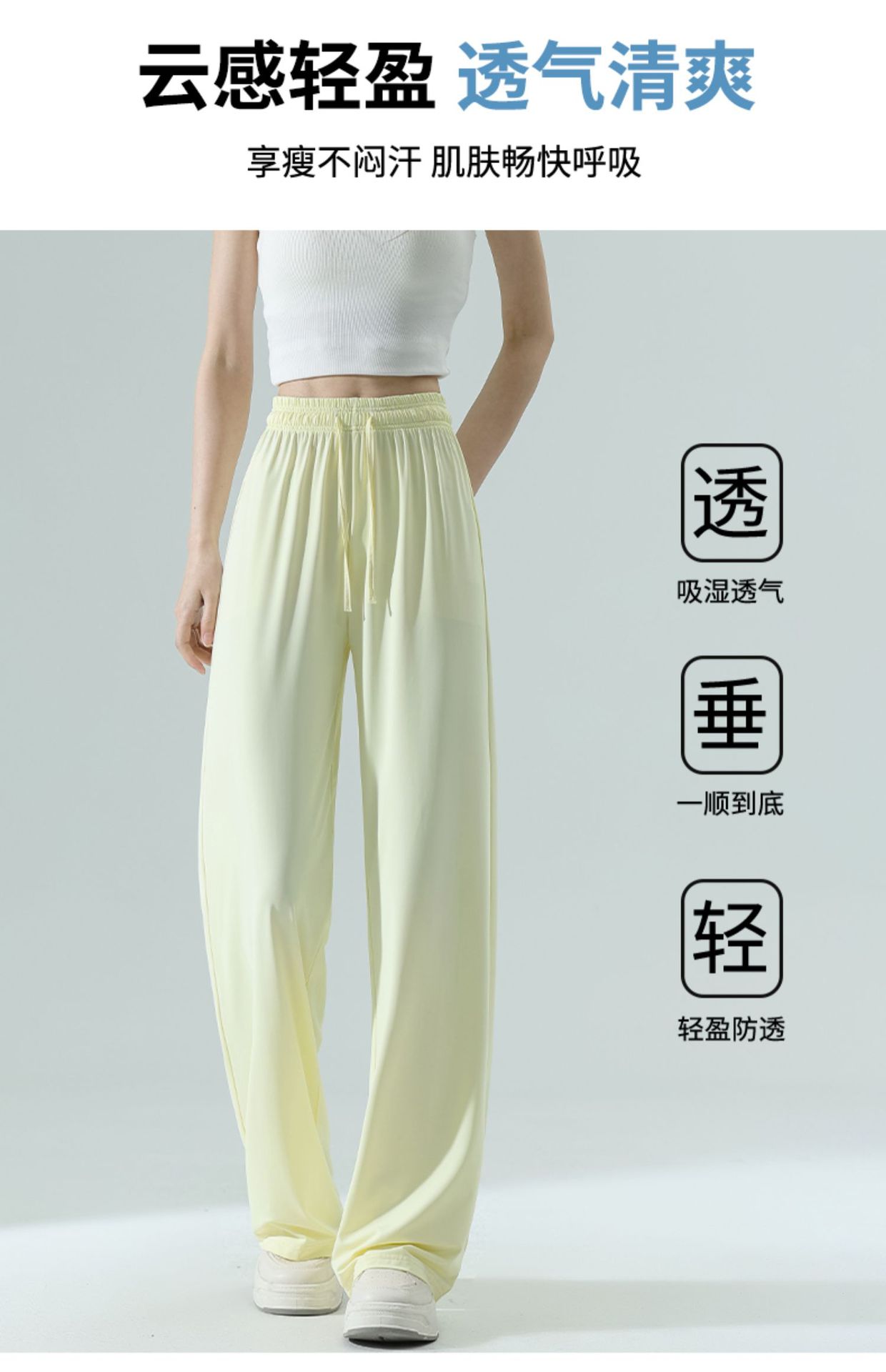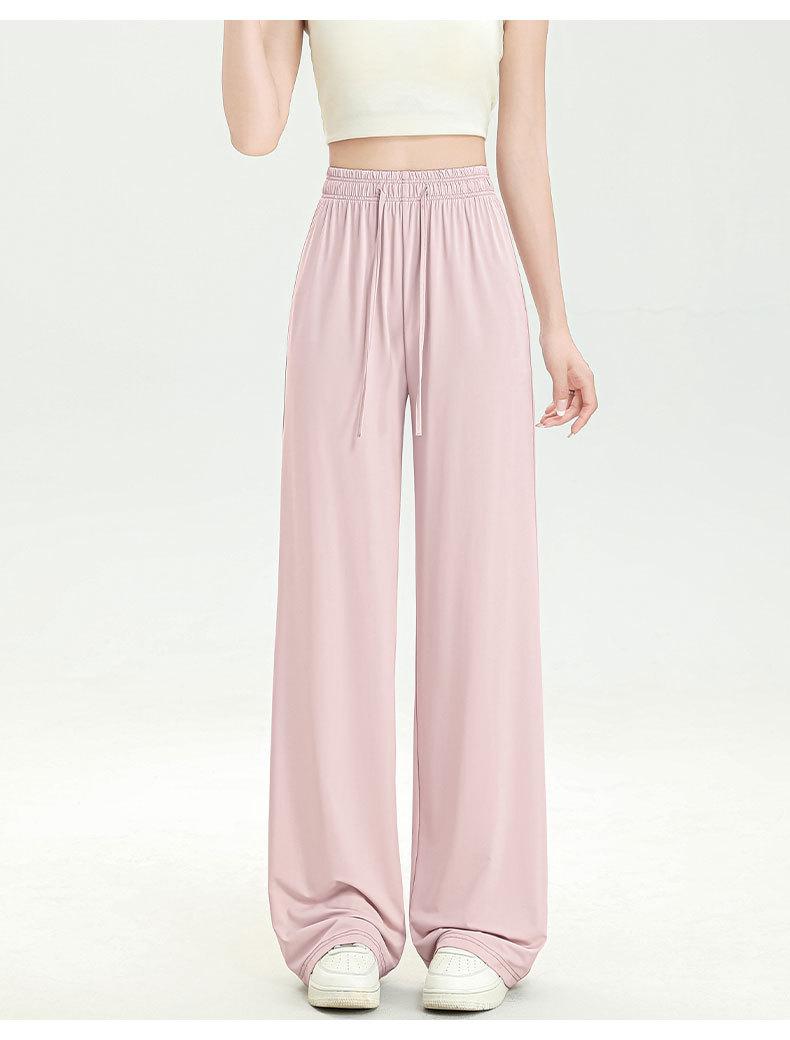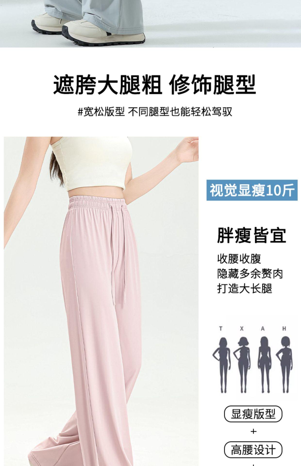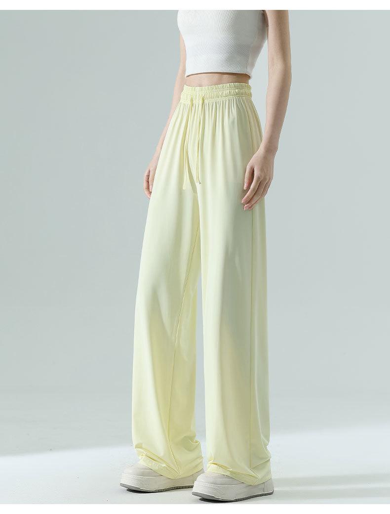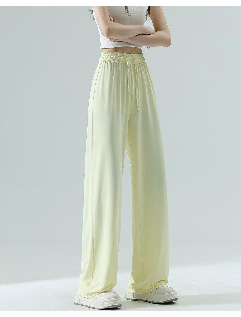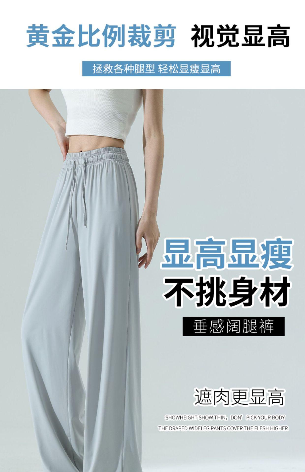 2025 Nuevo Pantalón Casual de Seda de Hielo de Pierna Ancha para Mujer Verano Delgado Cintura Alta Caída Secado Rápido Fresco Protector Solar Pantalón Recto