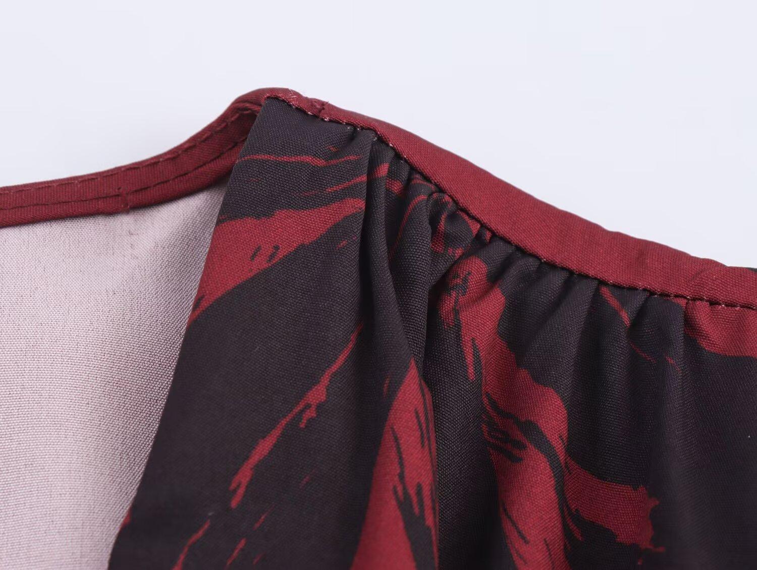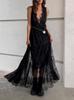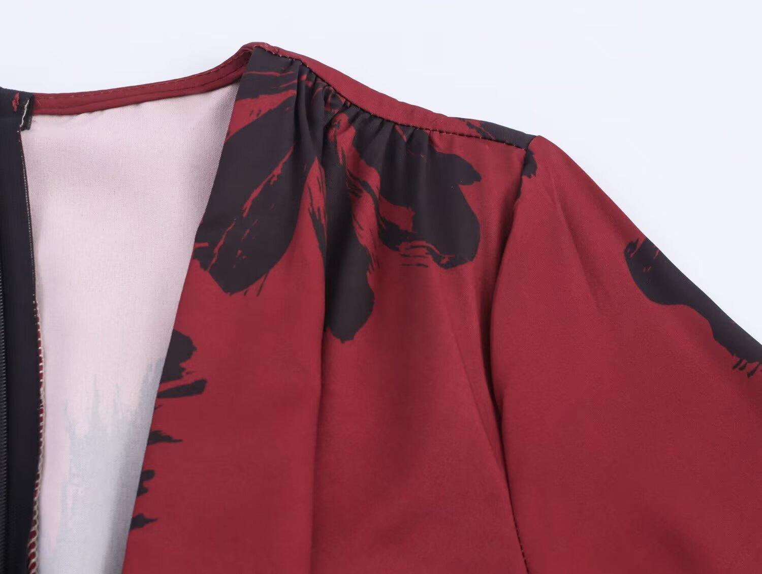 Otoño 2025 Nueva Ropa de Mujer Estilo Europeo y Americano Moda Simple Diseño con Sentido de Doble Uso Temperamento Estampado Vestido Largo con Escote en V Profundo
