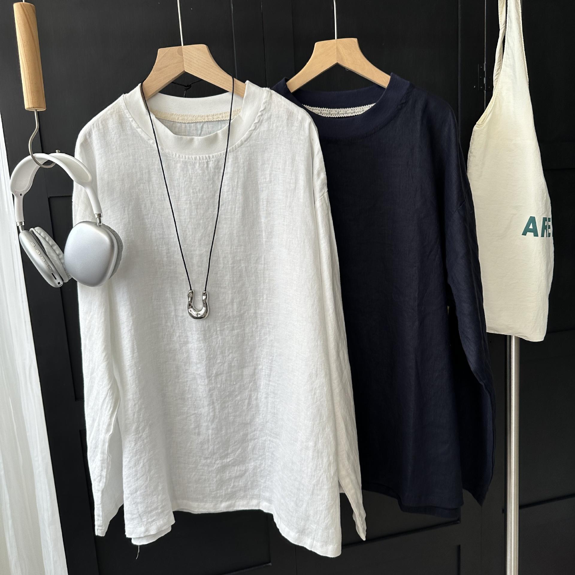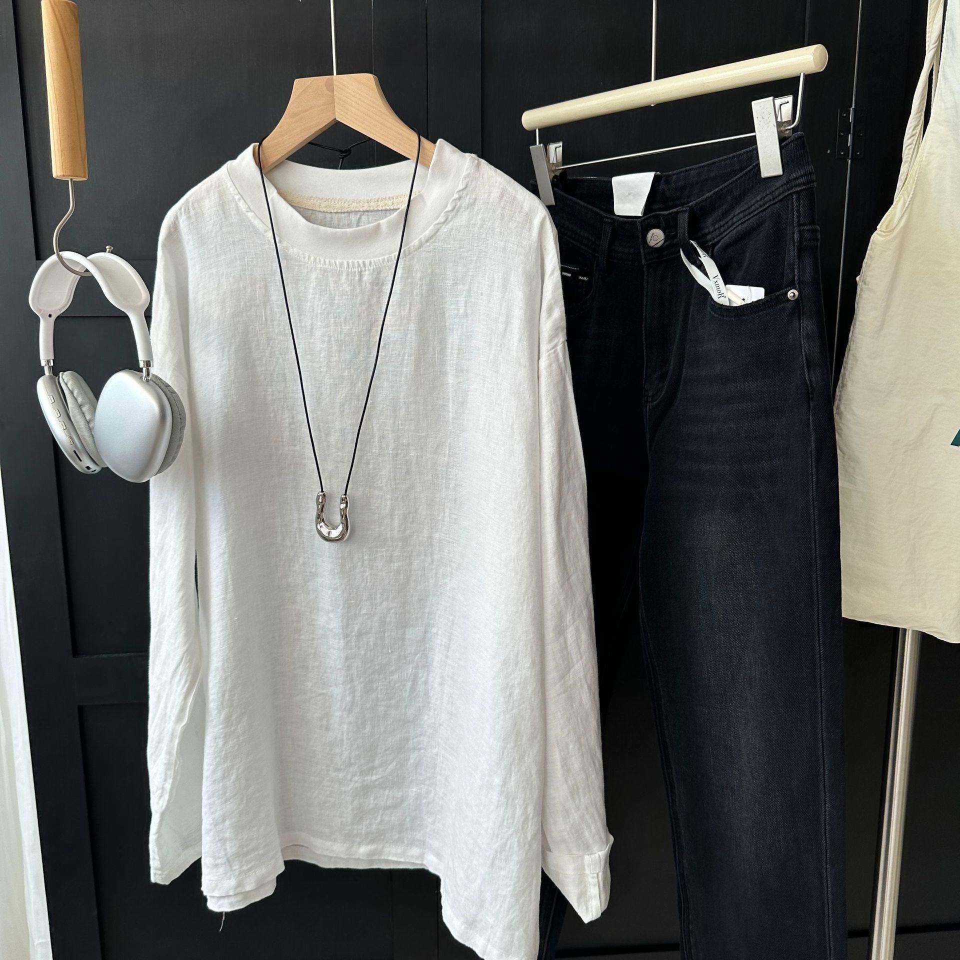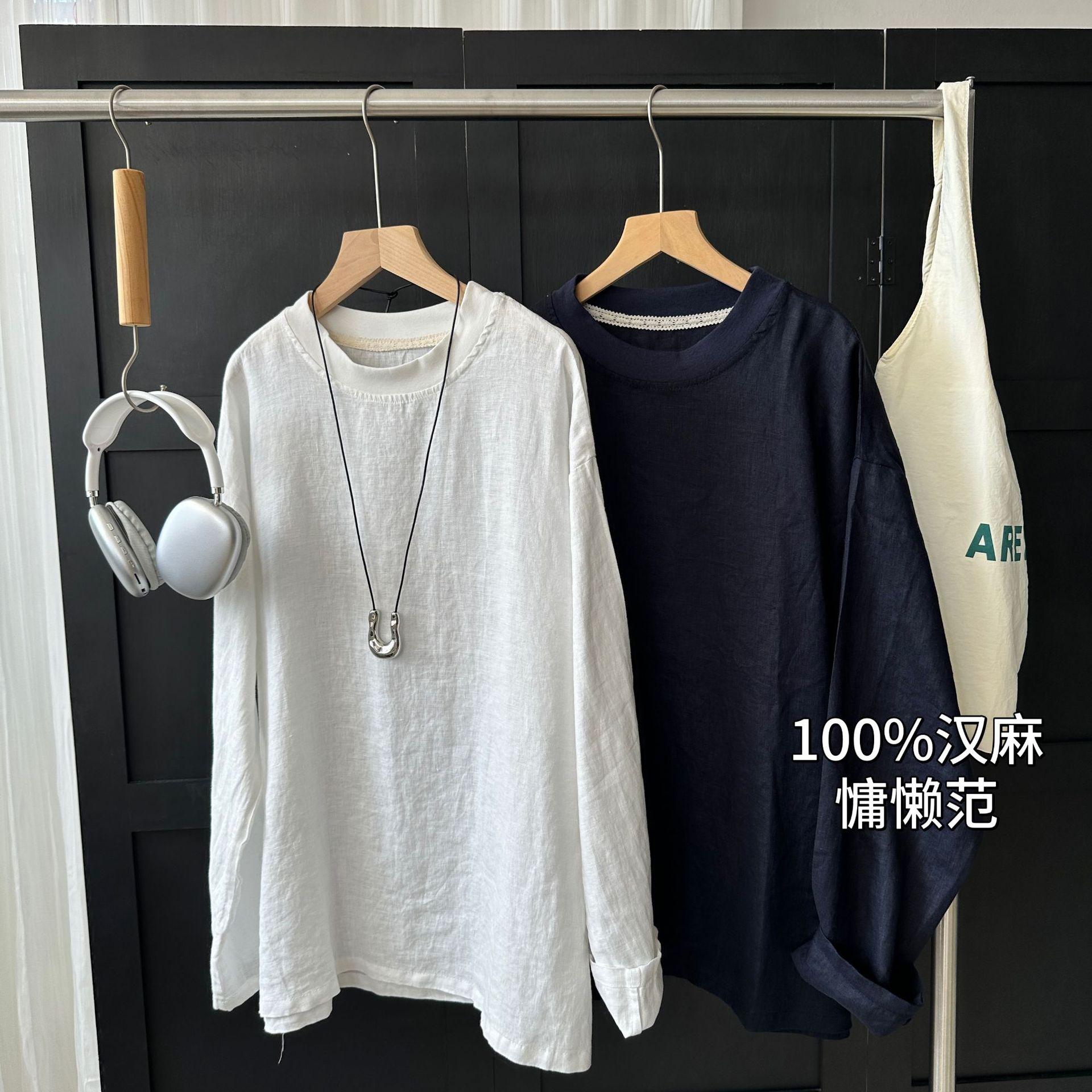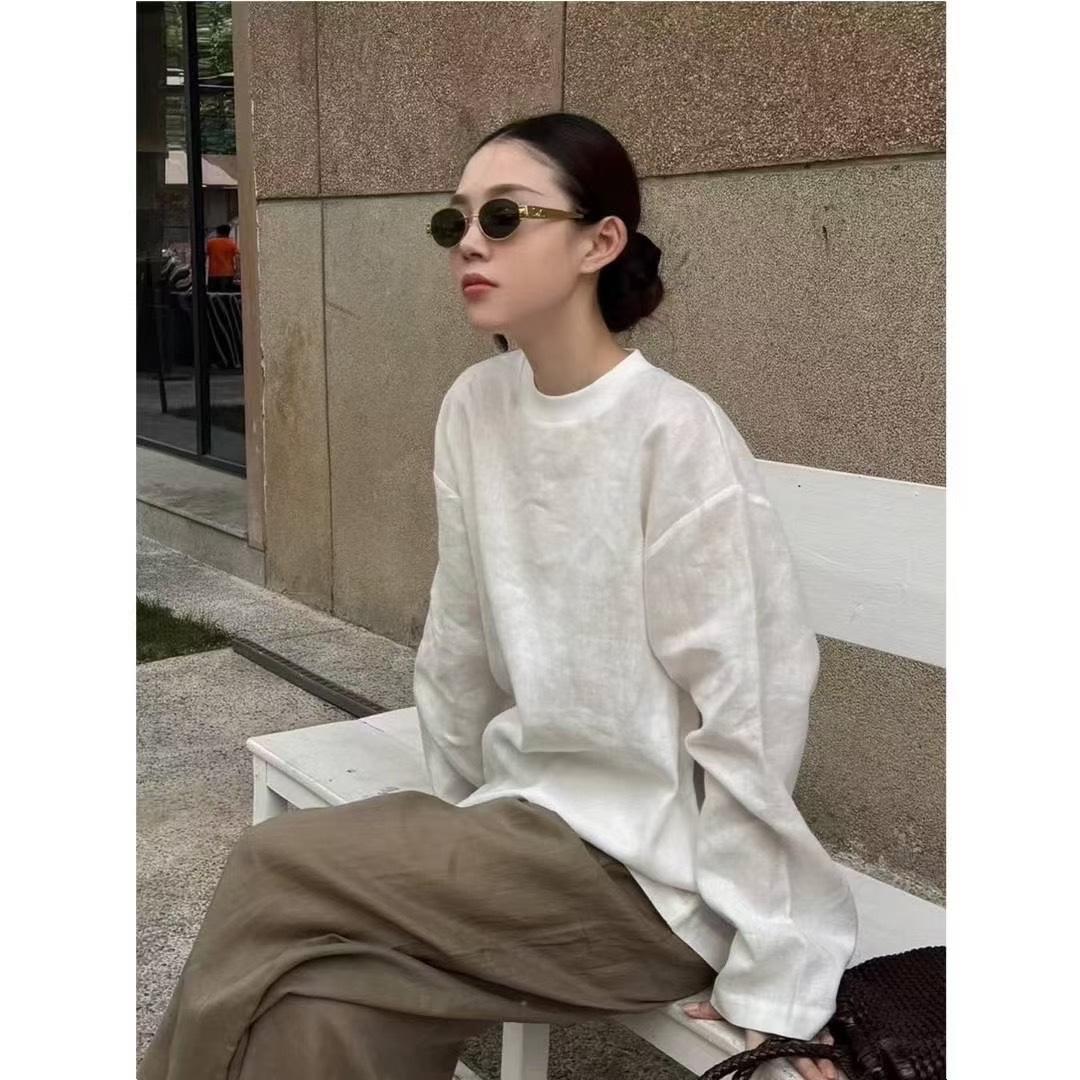 Sudadera Versátil de Color Sólido de Cáñamo para Principios de Otoño para Mujer Nueva Holgada Adelgazante de Color Sólido Jersey Camiseta de Manga Larga Camisa Top de Mujer
