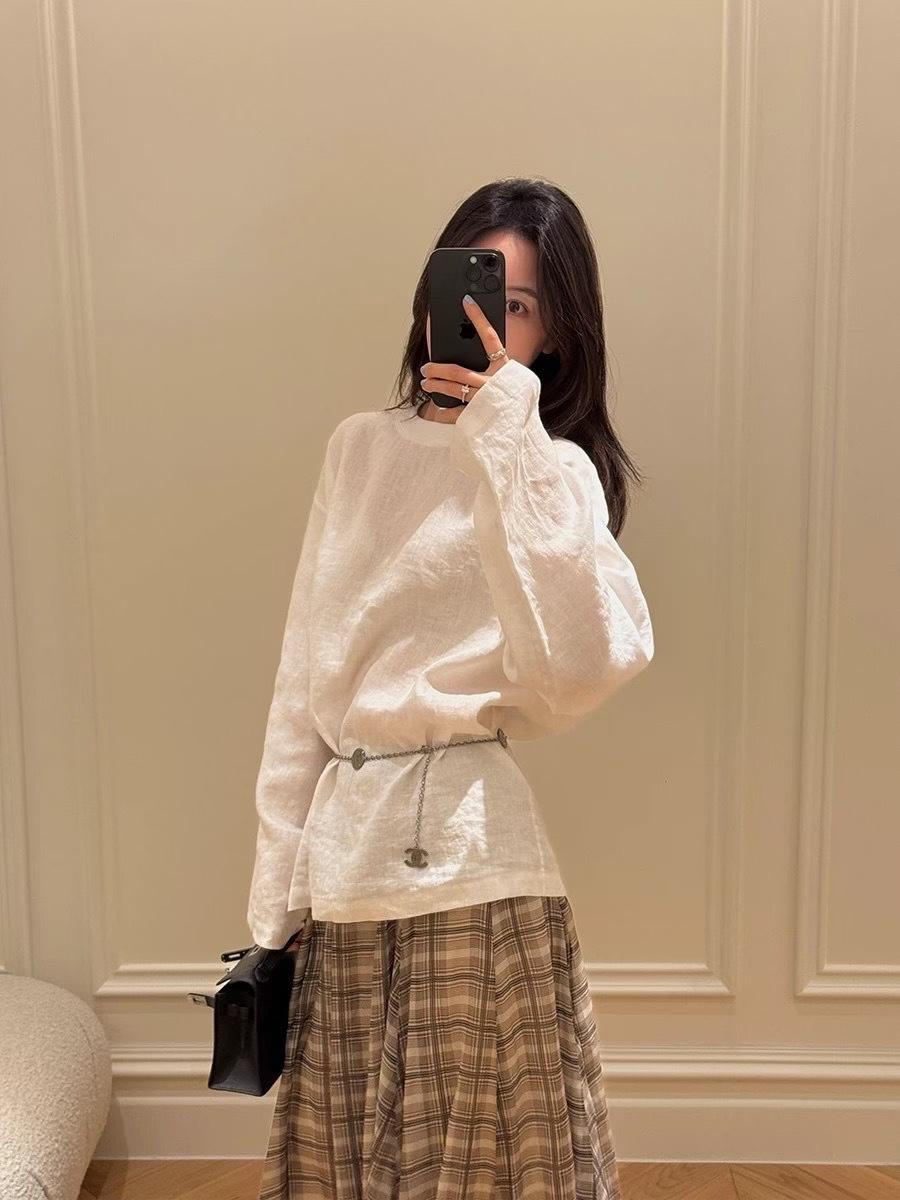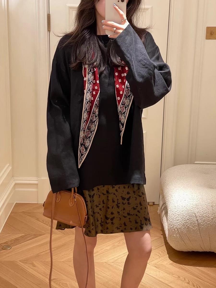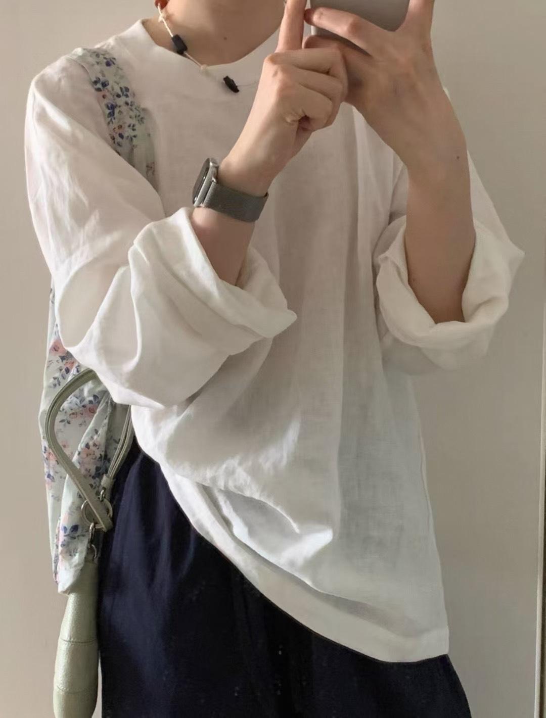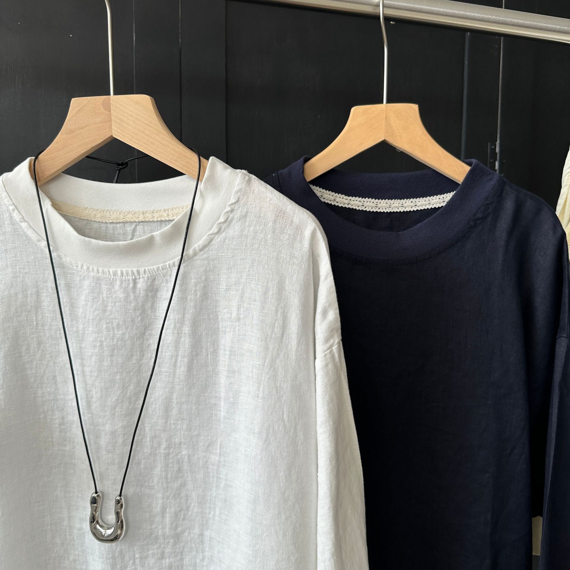 Sudadera Versátil de Color Sólido de Cáñamo para Principios de Otoño para Mujer Nueva Holgada Adelgazante de Color Sólido Jersey Camiseta de Manga Larga Camisa Top de Mujer