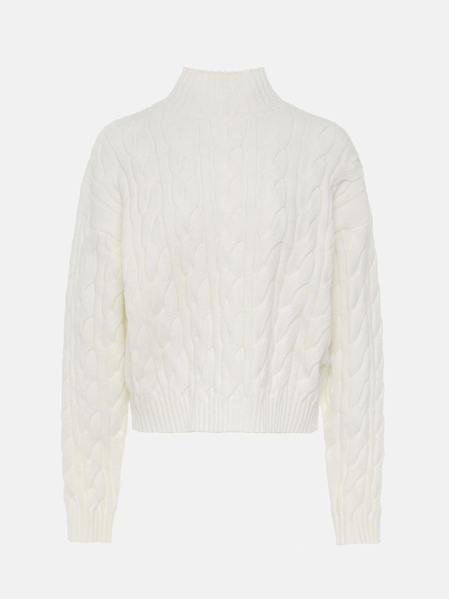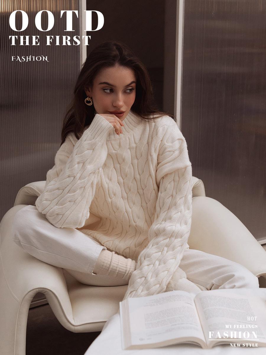 Suéter transfronterizo de cuello semi-alto europeo y americano 2025 otoño e invierno nuevo estilo perezoso tejido de cable suéter holgado de punto para mujer