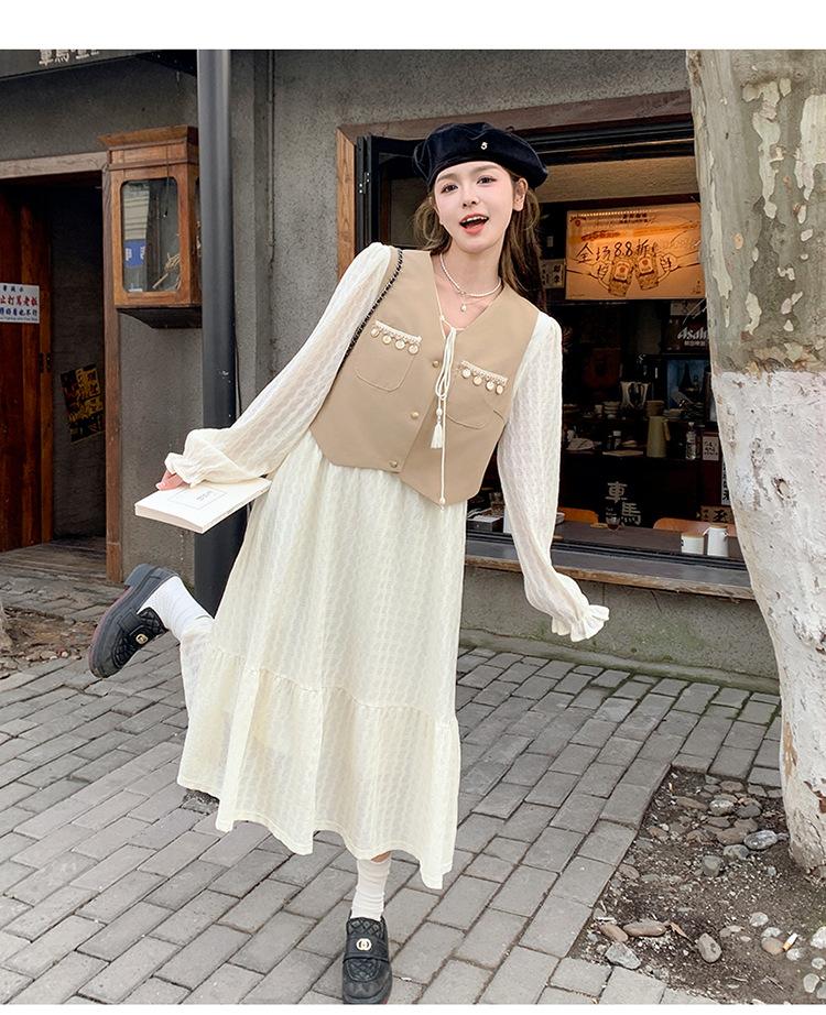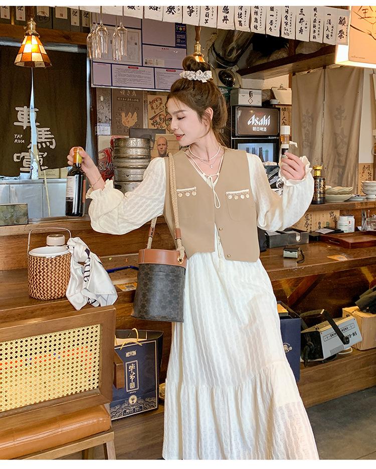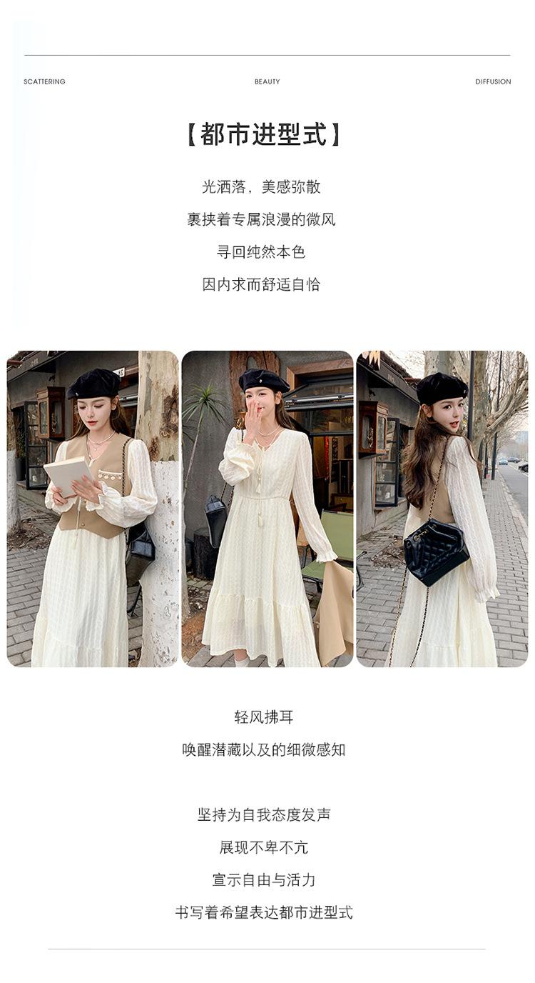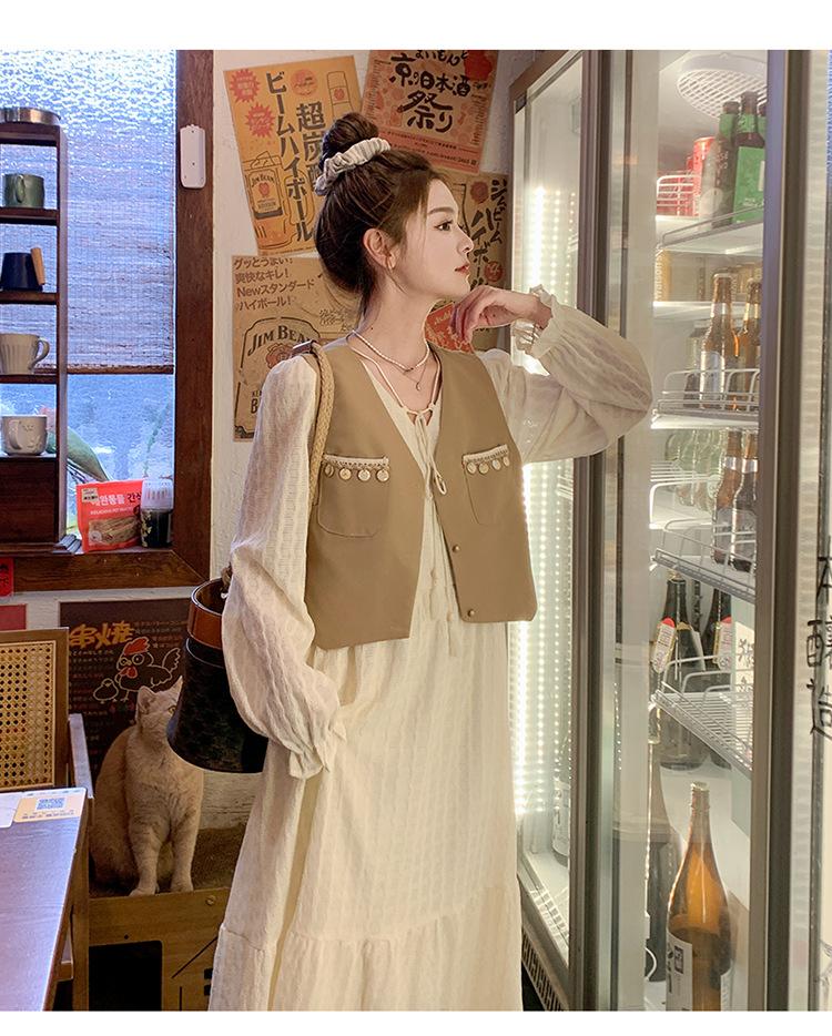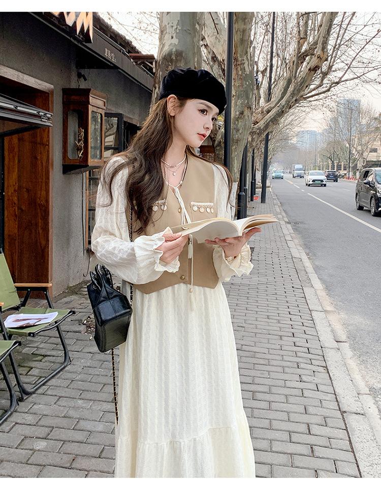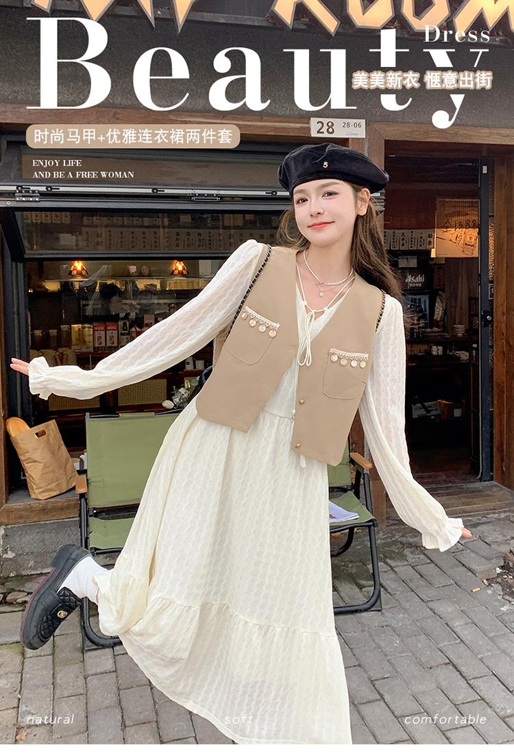 Conjunto para Mujer Casual 2025 Primavera y Otoño Nuevo Estilo Reductor de Edad Versátil Cómodo Chaleco Pequeño Vestido de Dos Piezas Marea