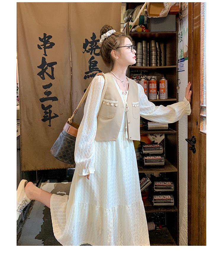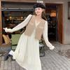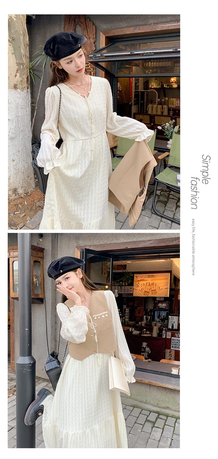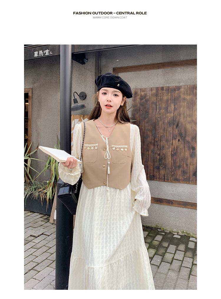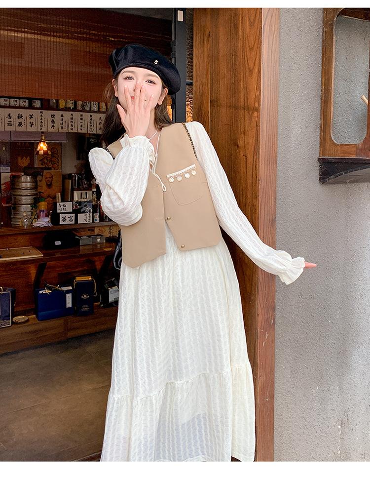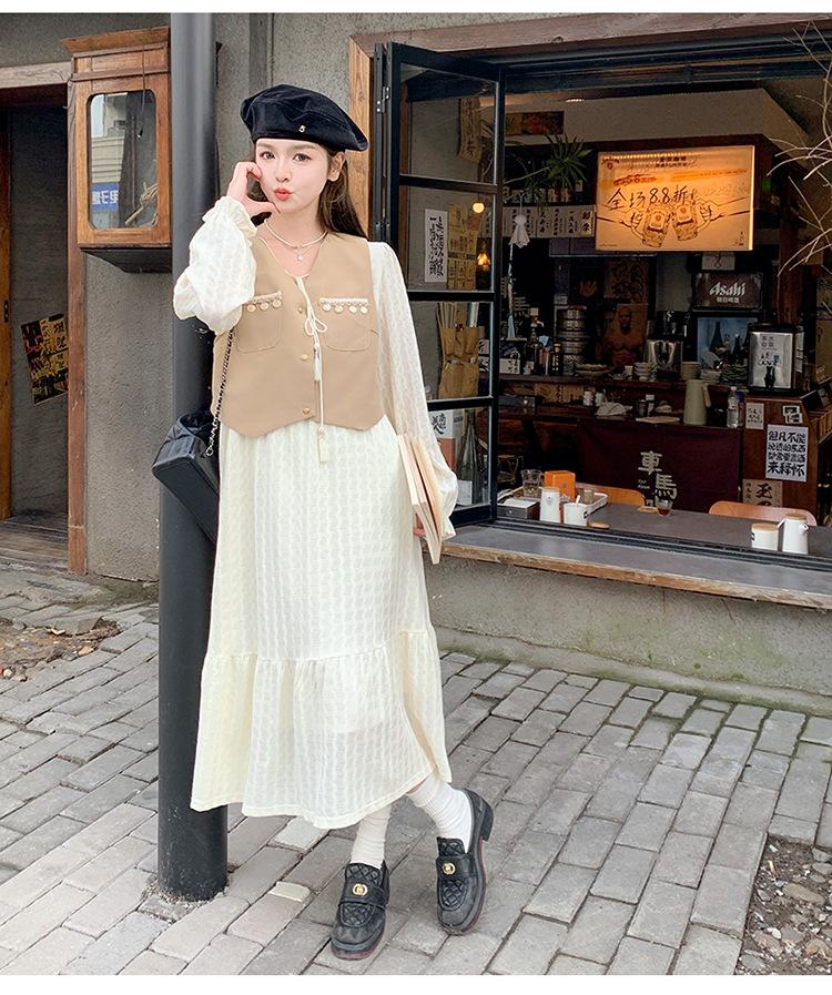 Conjunto para Mujer Casual 2025 Primavera y Otoño Nuevo Estilo Reductor de Edad Versátil Cómodo Chaleco Pequeño Vestido de Dos Piezas Marea