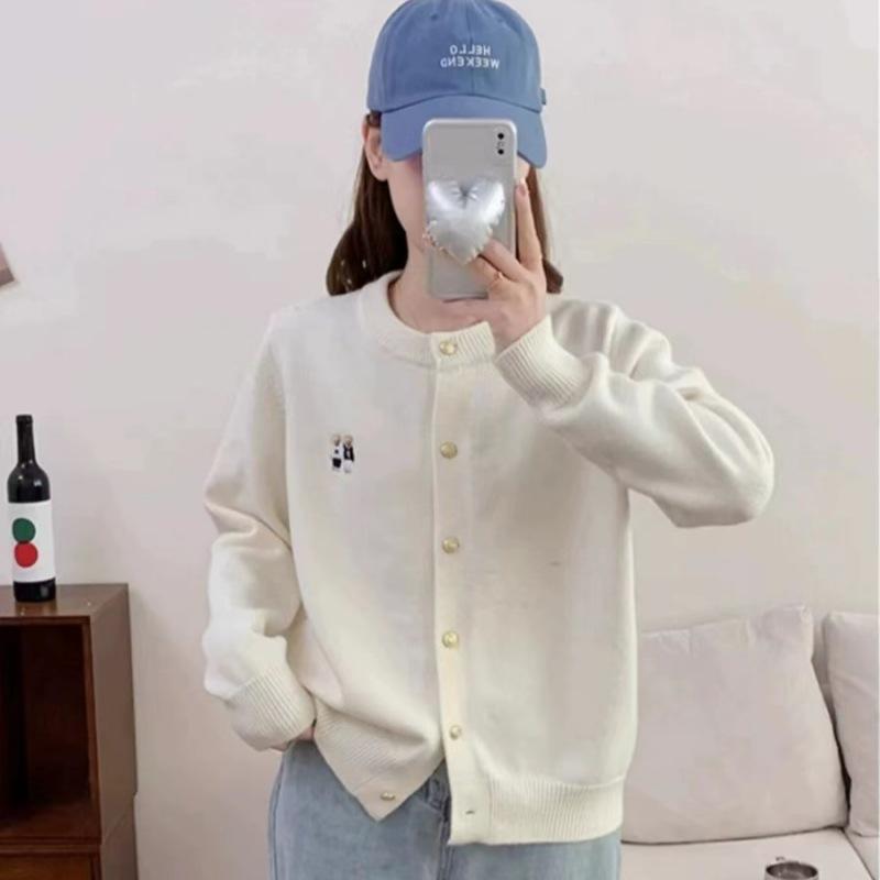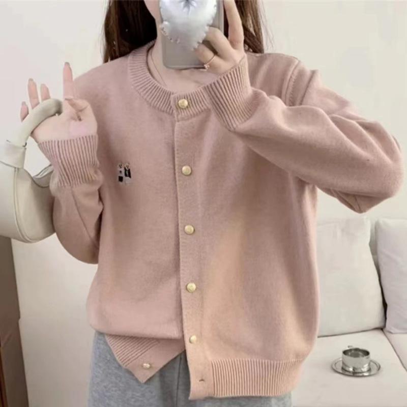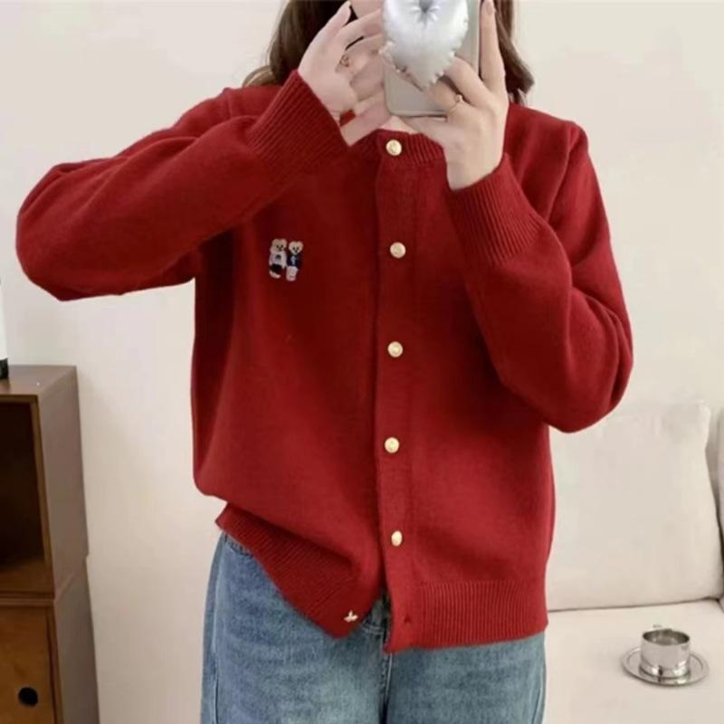 Otoño 2024 Nuevo Suéter Rojo Bordado para Mujer Cárdigan de Punto Abrigo para Mujer Primavera y Otoño Ropa Exterior Top