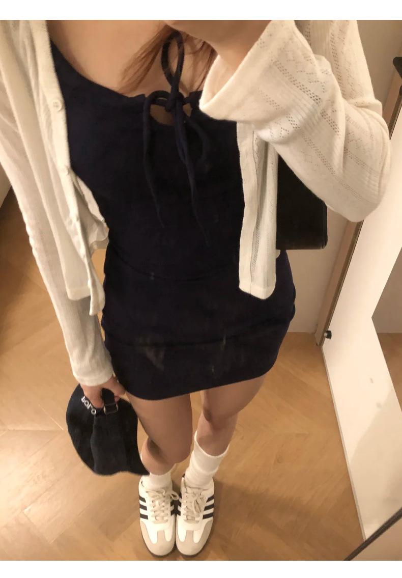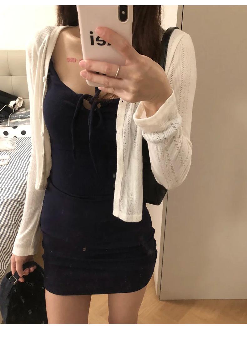 Conjunto de dos piezas de vestido bodycon con tirantes y cárdigan para mujer, impresionante vestidito de verano para mamá, vestido corto de estilo sexy y puro deseo