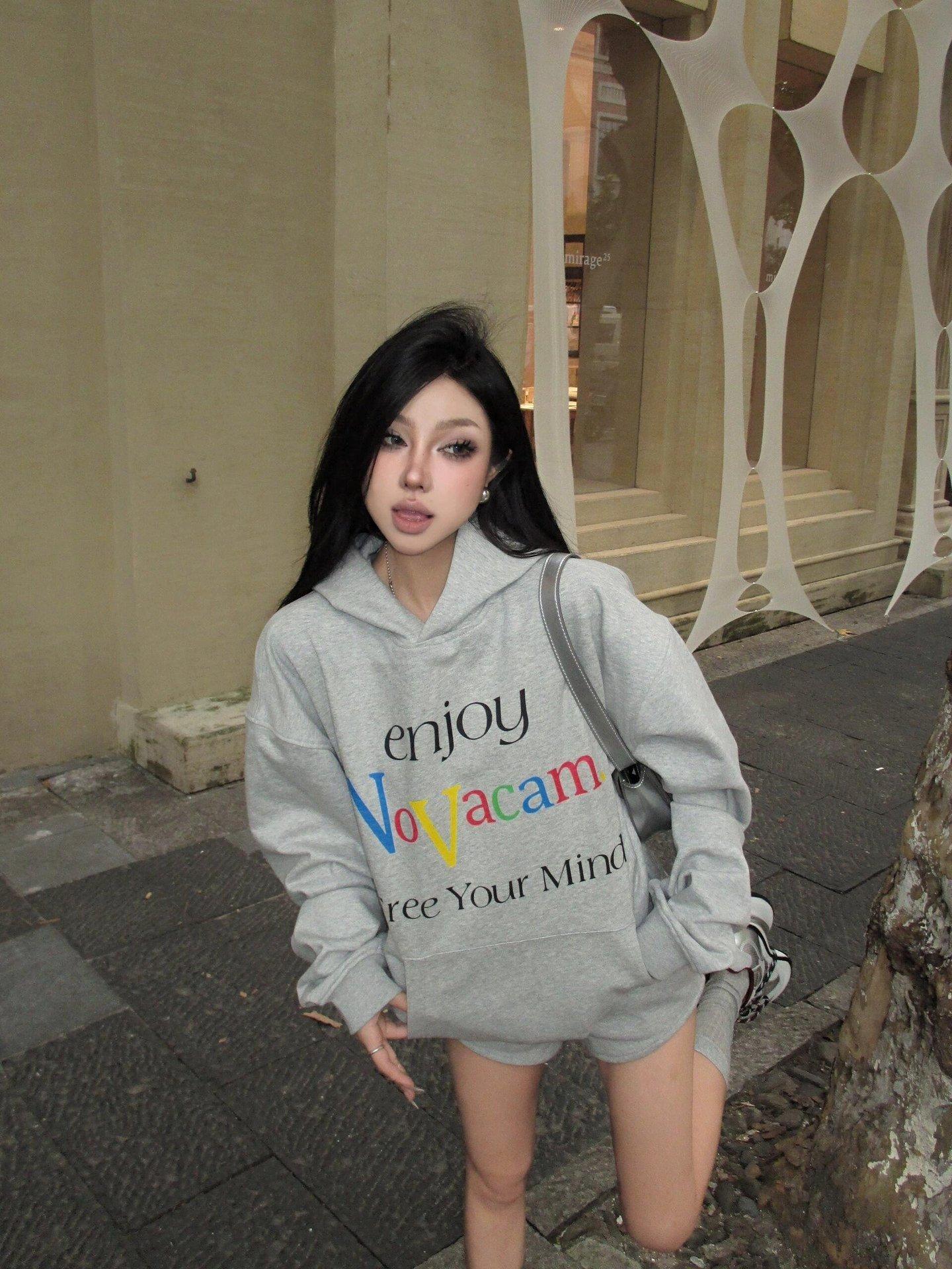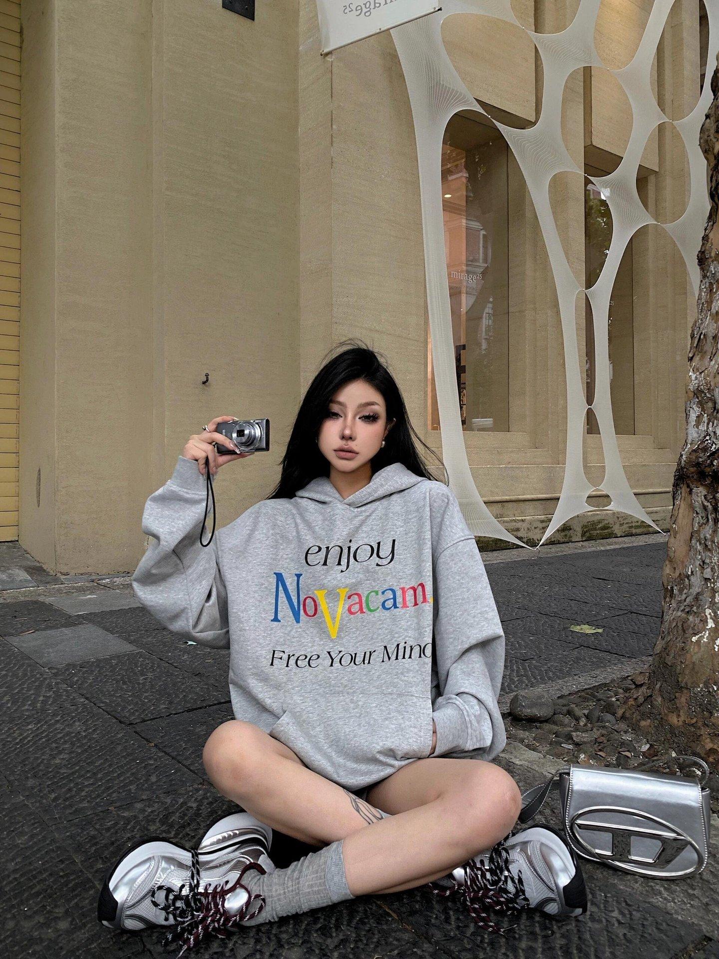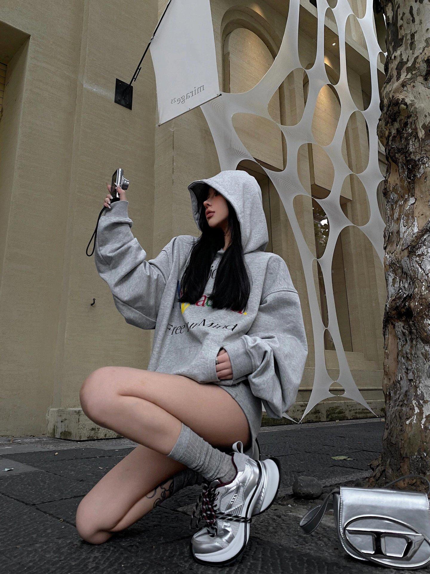 Suéter con Capucha para Mujer Estampado Original Talla Grande Suelto Personalidad Calle Ropa con Capucha Sudadera Rock Cool Explosiones