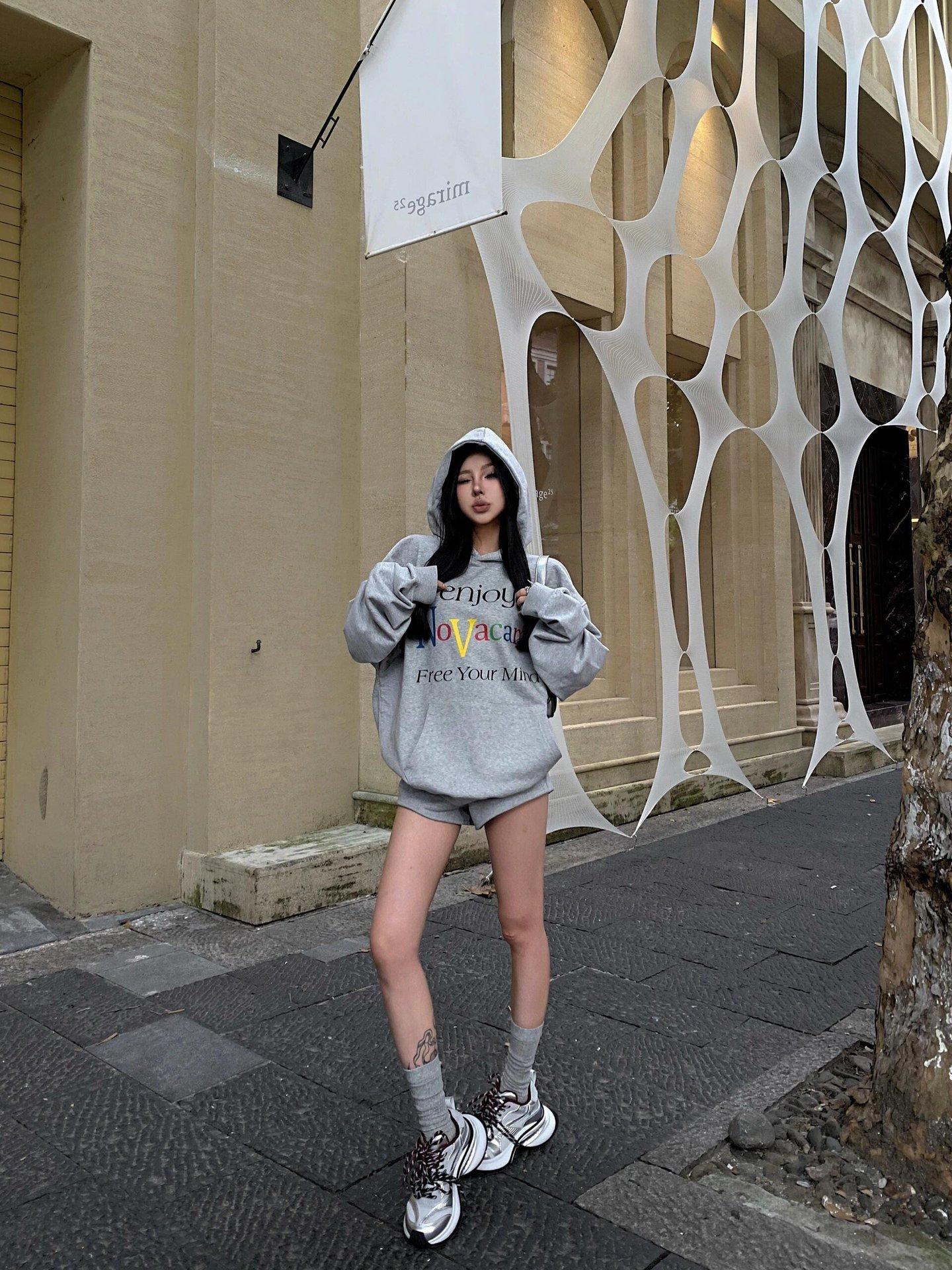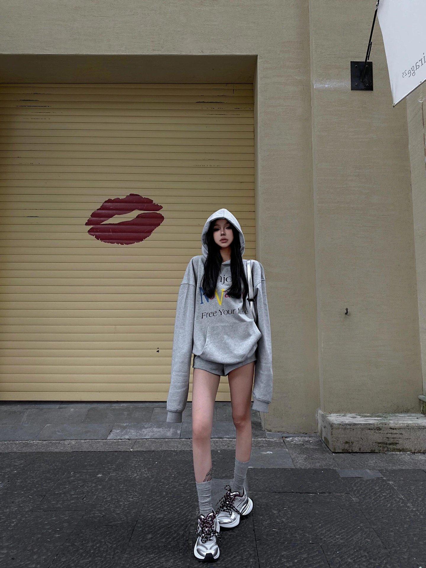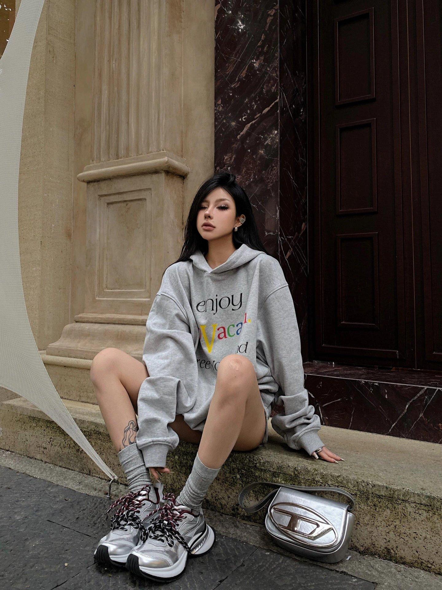 Suéter con Capucha para Mujer Estampado Original Talla Grande Suelto Personalidad Calle Ropa con Capucha Sudadera Rock Cool Explosiones