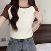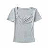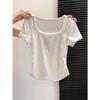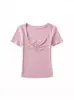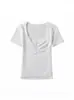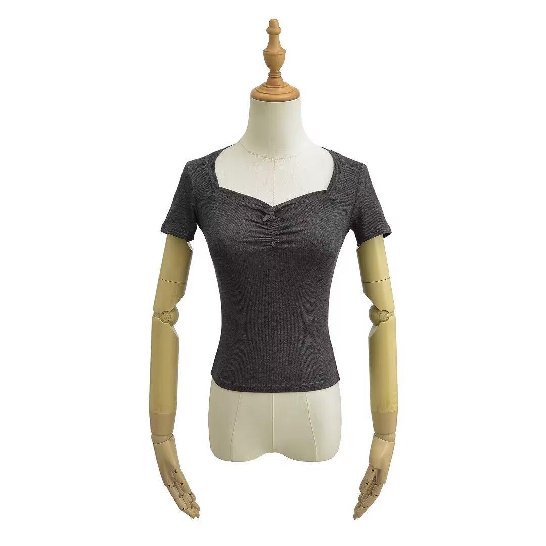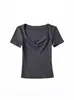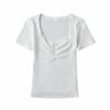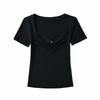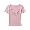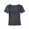 Top Sencillo de Manga Corta con Diseño de Pecho Plisado Nicho Verano Elegante Combinable Ajustado Adelgazante Camiseta para Mujer Spice Girl