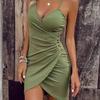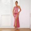 Vestido Sling con Aberturas Divididas Europeo y Americano Transfronterizo Color Sólido Sexy Ajustado Ojos Strapless Cintura Alta Vestido de Noche