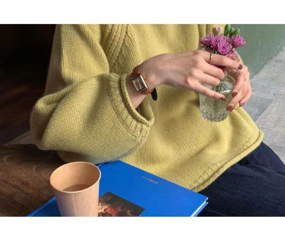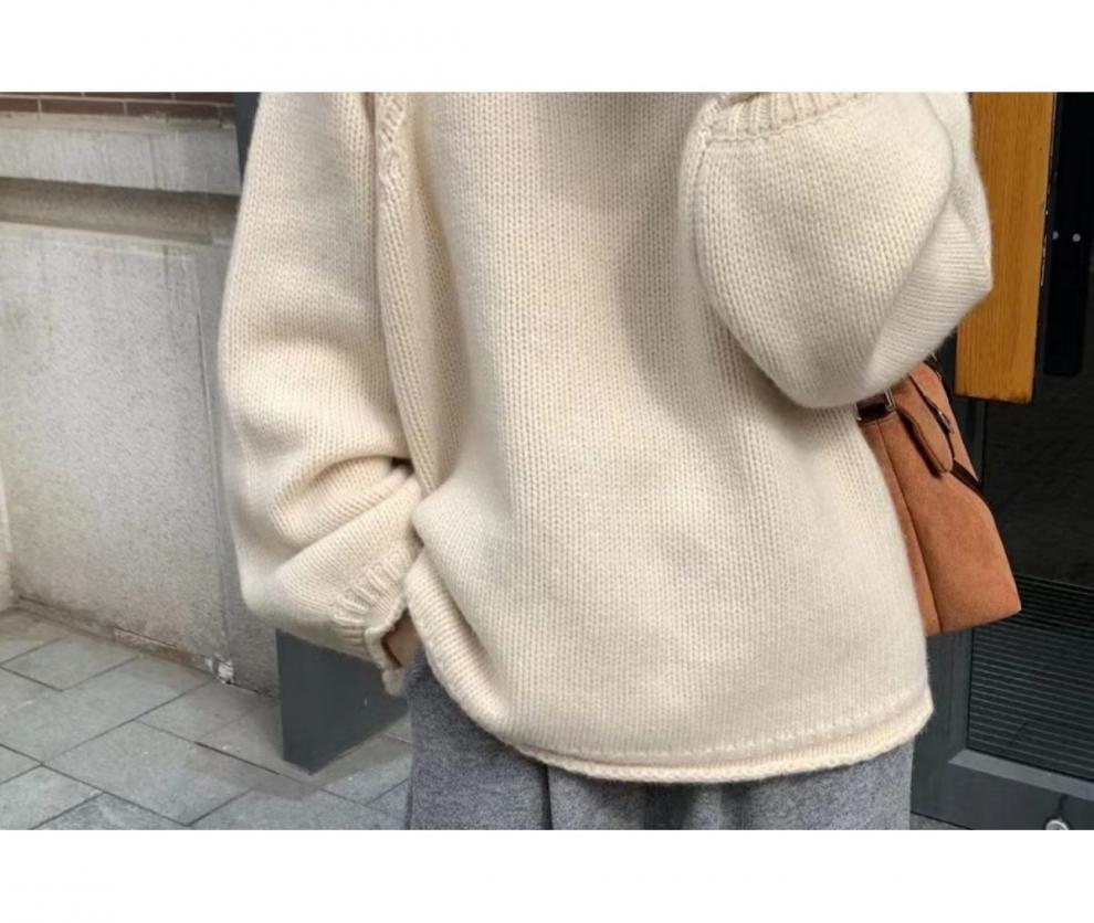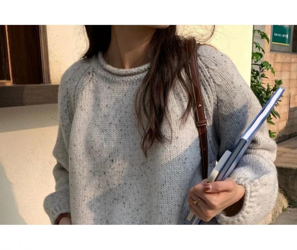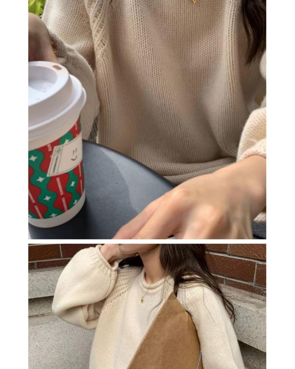 Suéter de Punto Grueso Suave Encerado con Rizo Estilo Coreano para Mujer Primavera y Otoño Estilo Holgado Perezoso Combinable Suéter Jersey Diseño de Nicho