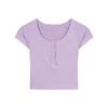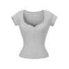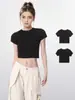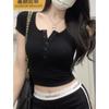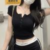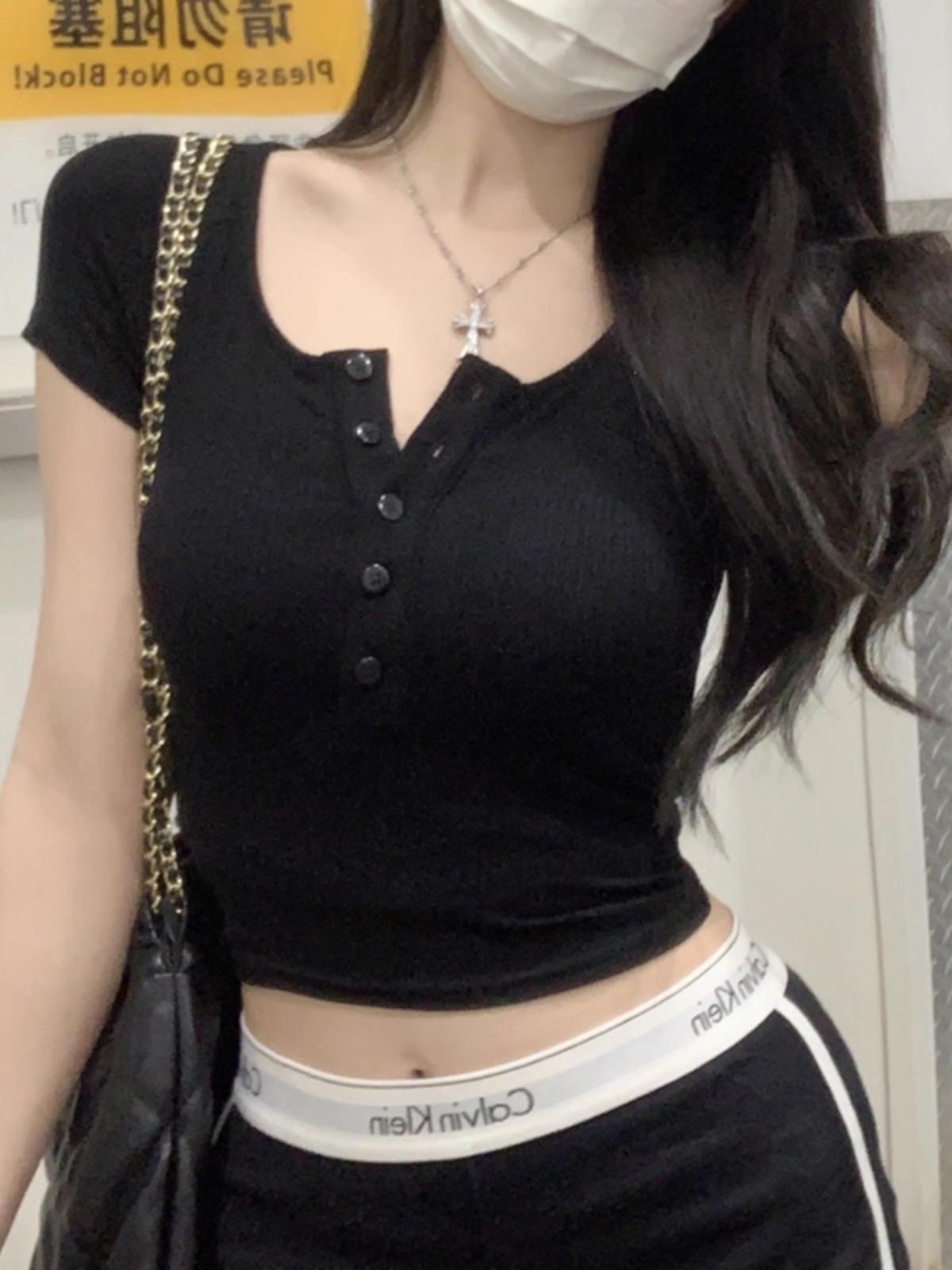 Camiseta de Hombro con Botones Estilo Americano para Chica Caliente para Mujer Primavera y Verano Corta con Ombligo Descubierto Chic Ajustada Adelgazante Top Interior de Manga Corta