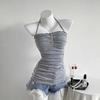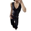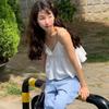 Top Corto de Tirantes con Cuello en V Estilo Nicho Estilo Coreano Empalme Colorido Lazo Cinta Chaleco para Mujer
