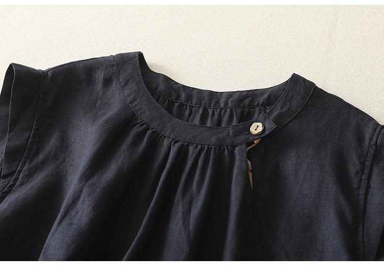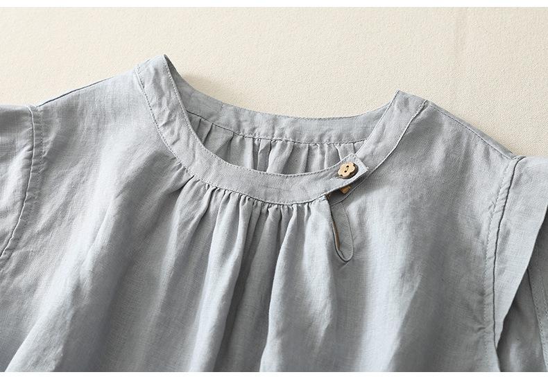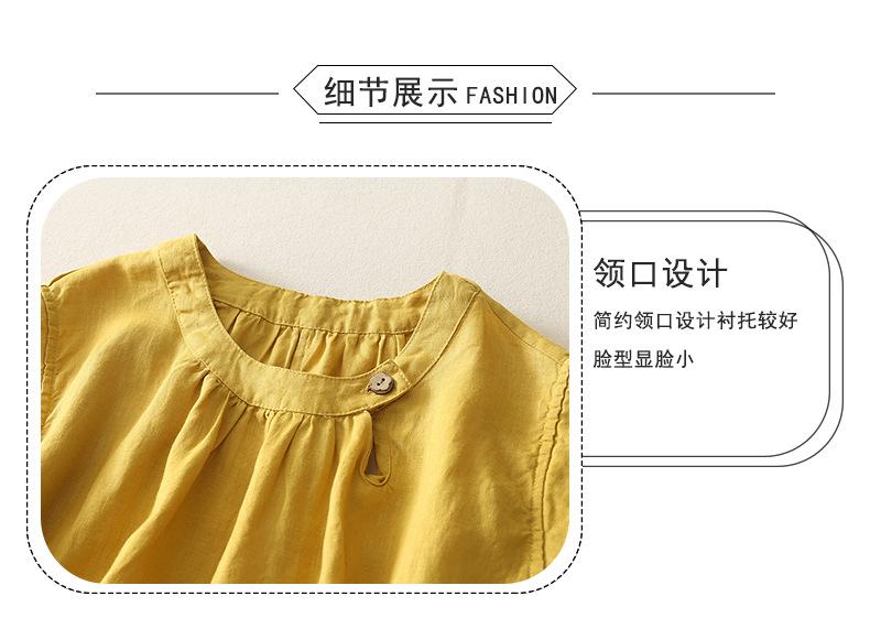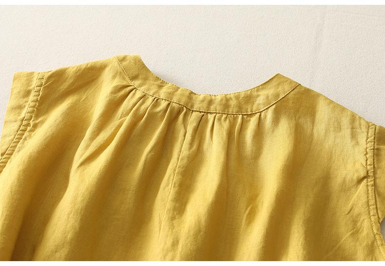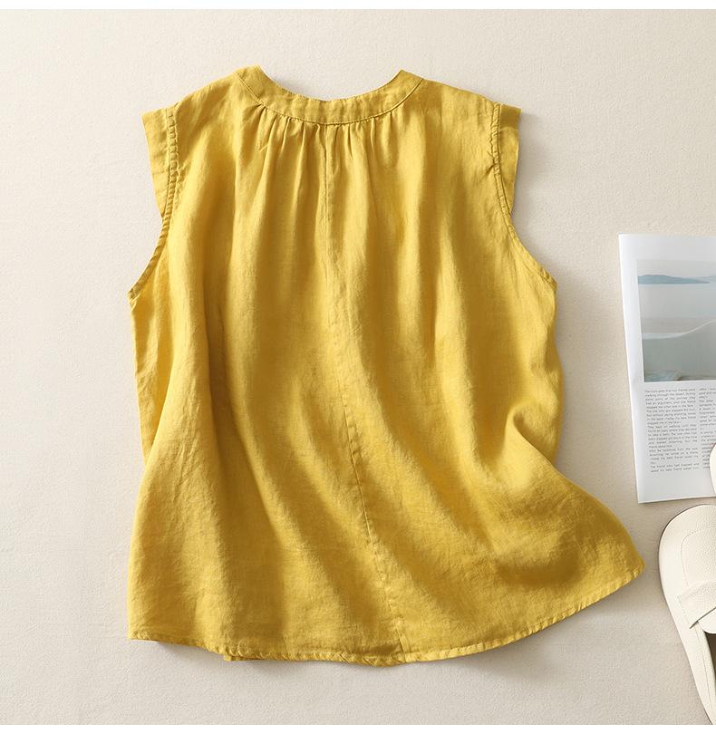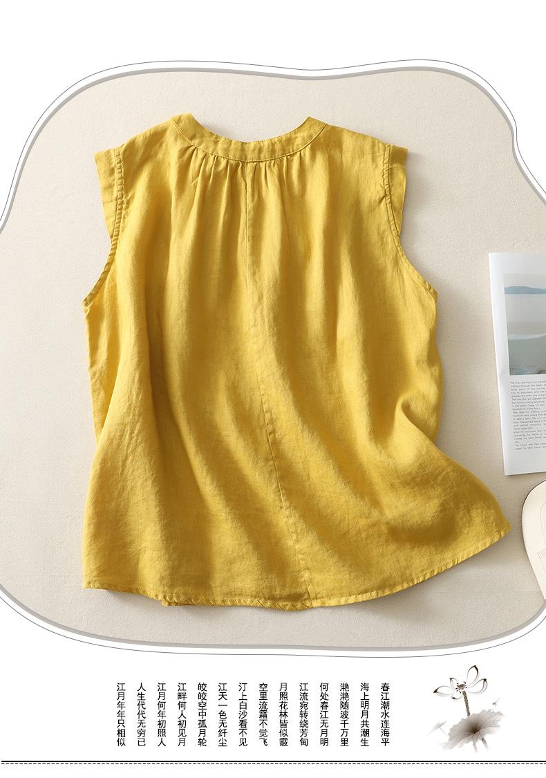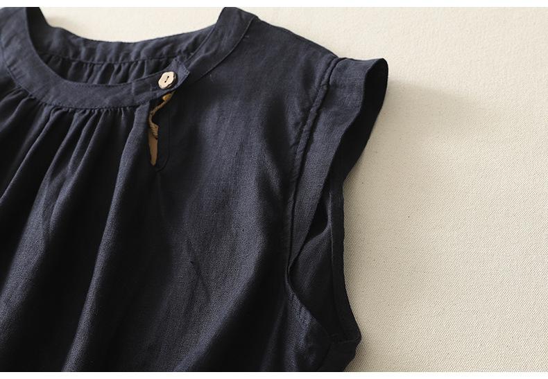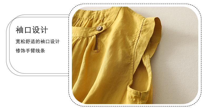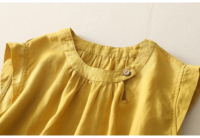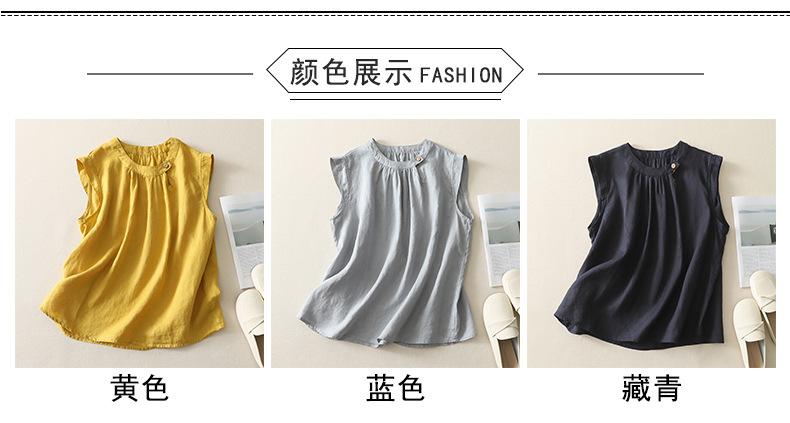 Foto real en stock verano 2025 nuevo diseño sentido cuello redondo algodón y lino camisa sin mangas mujer versátil top de manga abullonada pequeña mujer