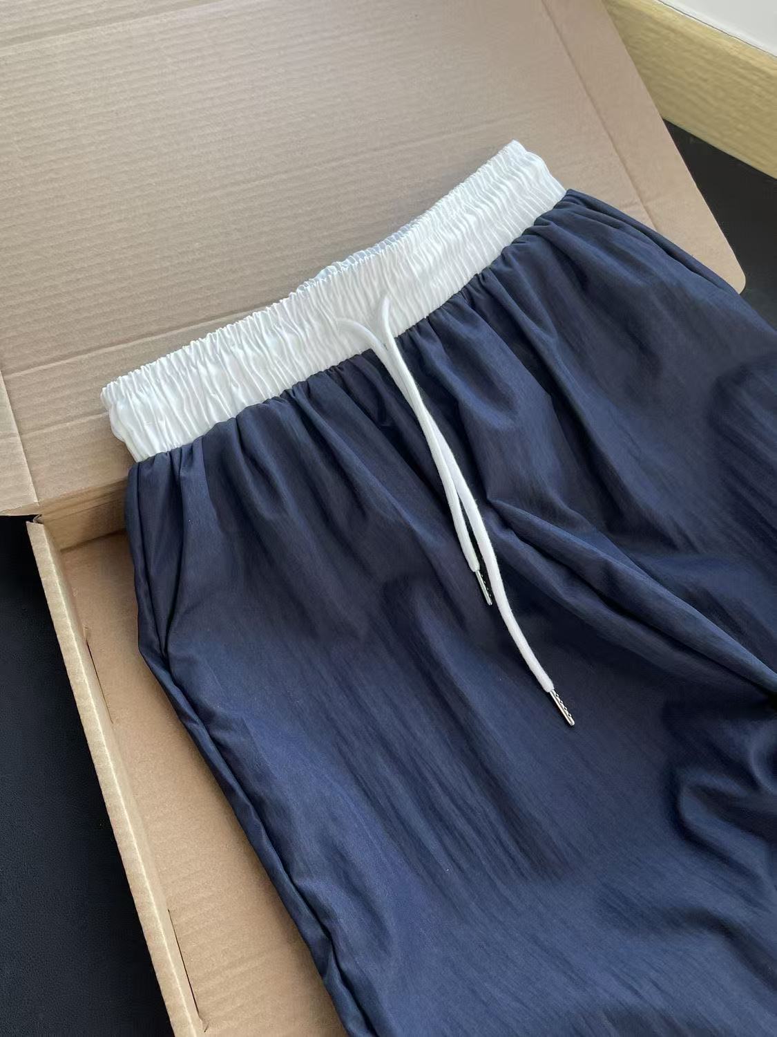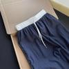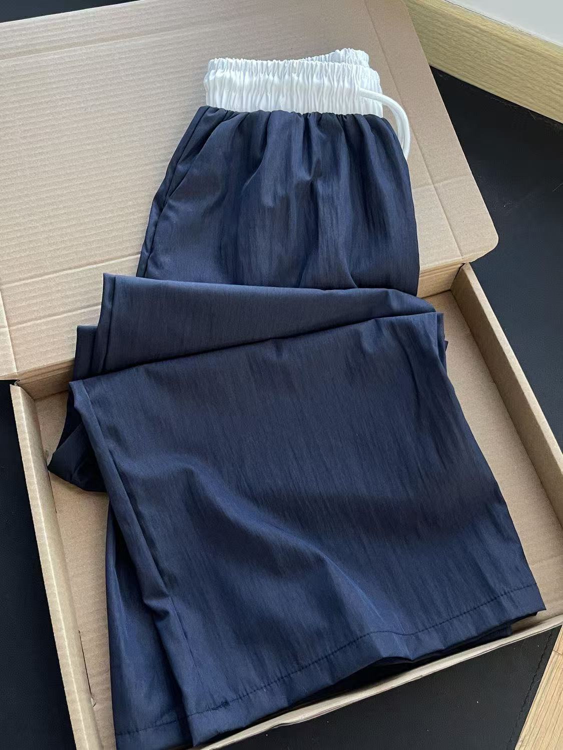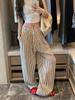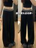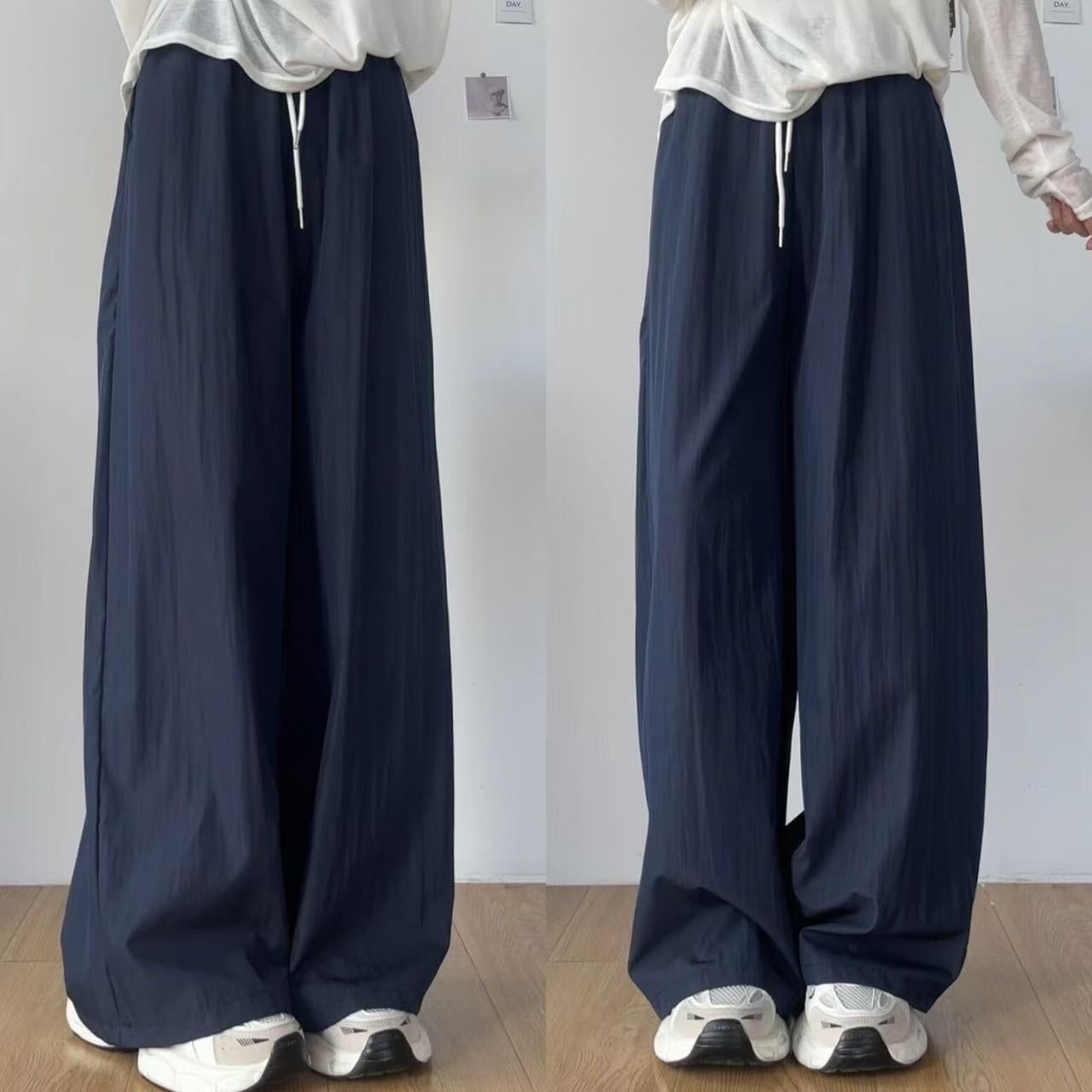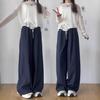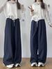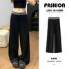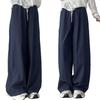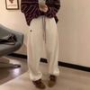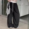 Pantalones deportivos de cintura alta con cordón de ajuste y color contrastante estilo americano para mujer 2025 Nuevo Ropa de trabajo versátil Pantalones casuales rectos holgados de pierna ancha